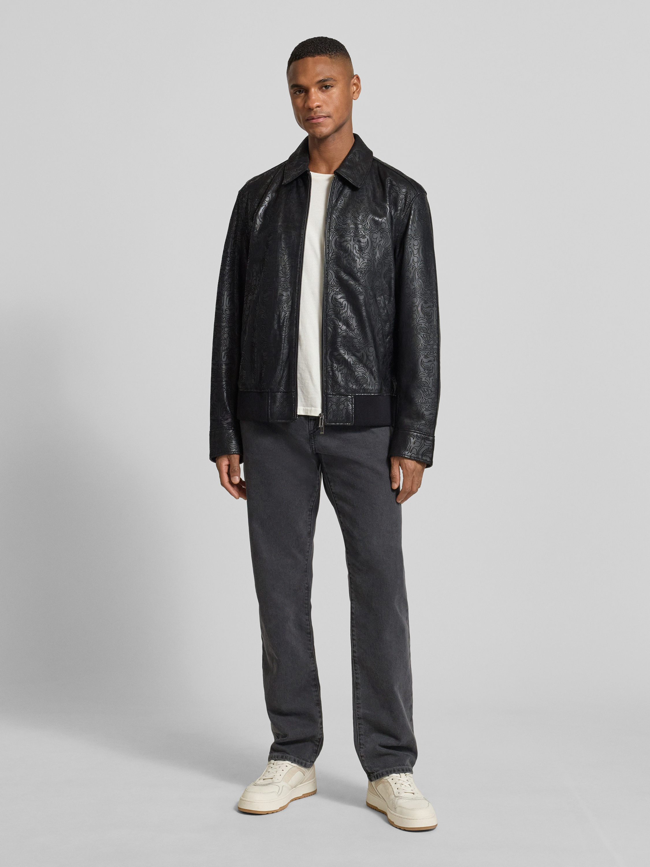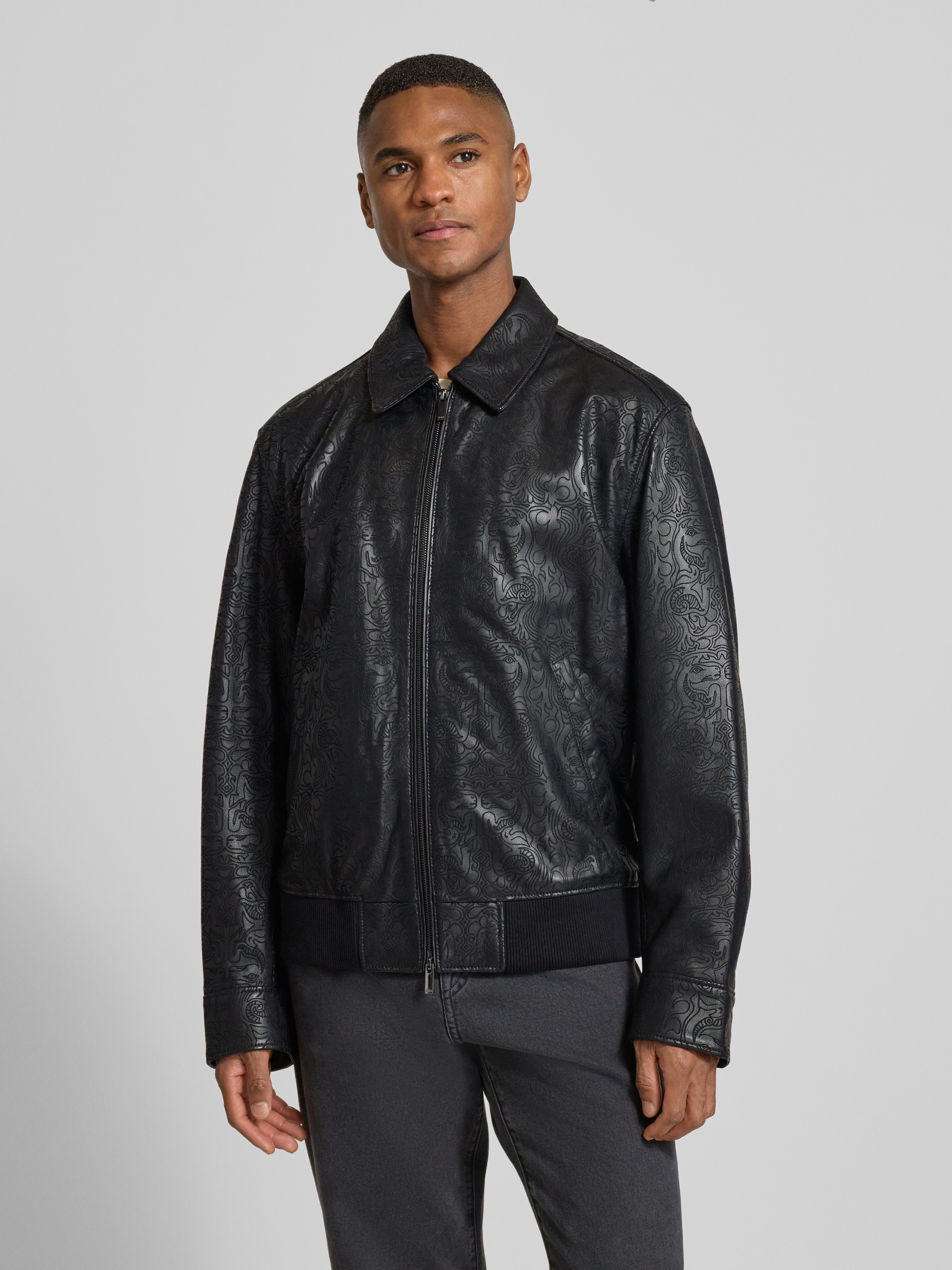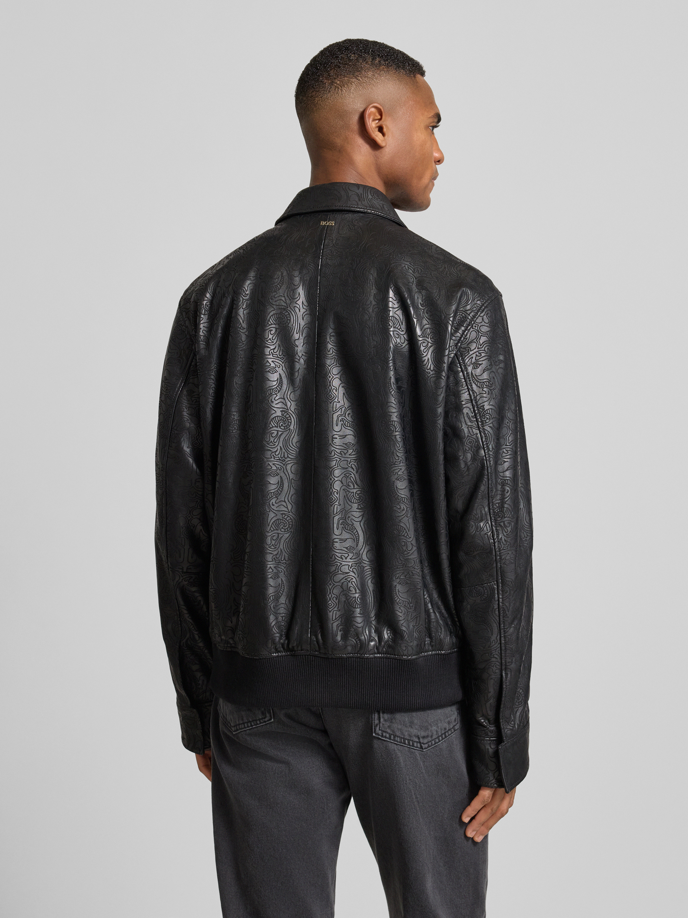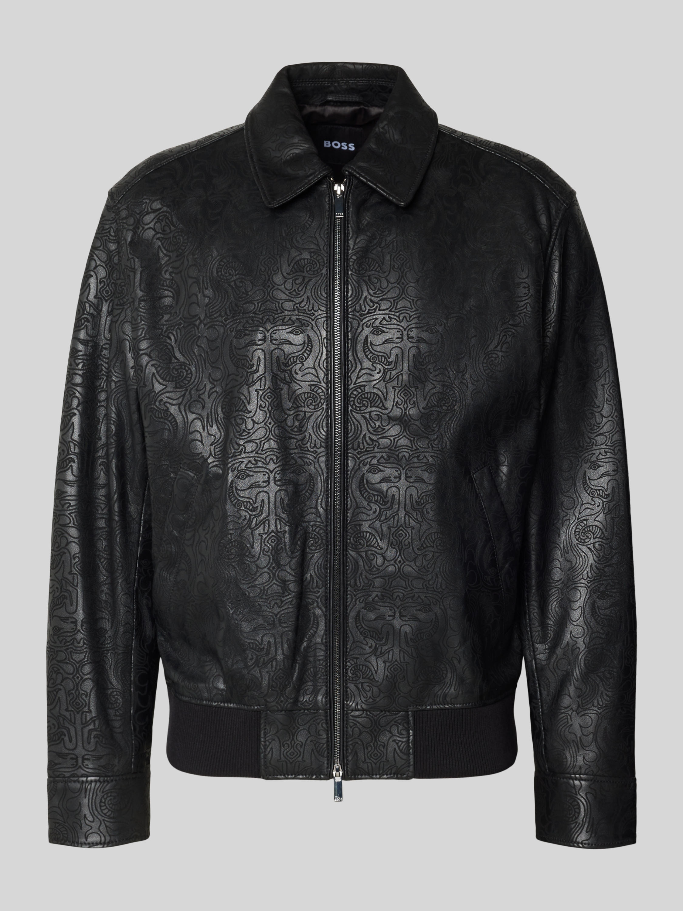 BOSSRegular Fit Lederjacke mit Allover-Muster Modell 'JUZE_CNY' in black