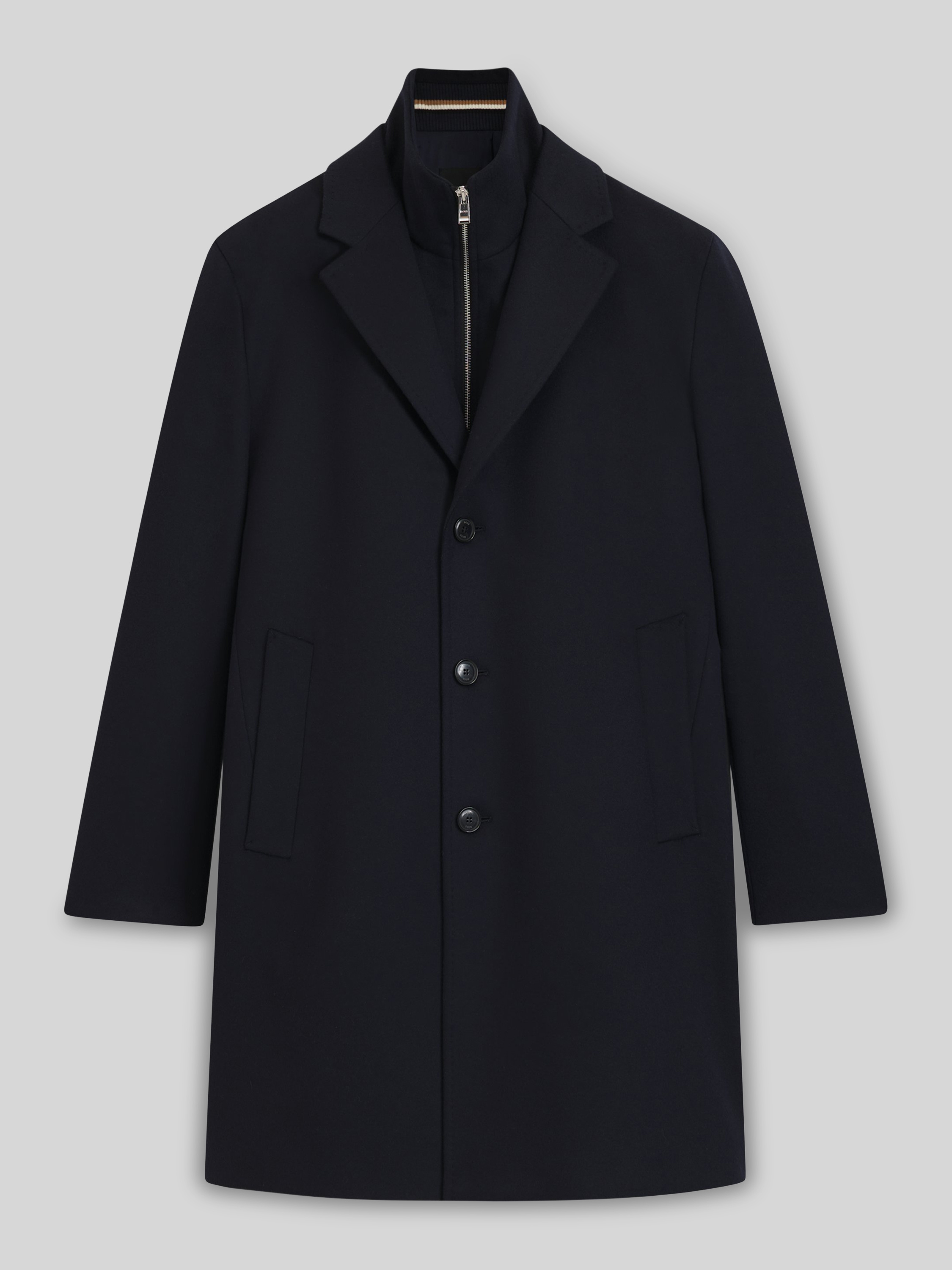 Der Herr Regular Fit Mantel von BOSS kombiniert eine klassische, unifarbene Optik mit praktischer Vielseitigkeit dank herausnehmbarer Weste. Der gerade Schnitt und der Reverskragen verleihen dem Modell eine zeitlose Note, während der Woll-Mix angenehm wärmt und sich weich anfühlt. Leistentaschen sorgen für dezente Funktionalität.
