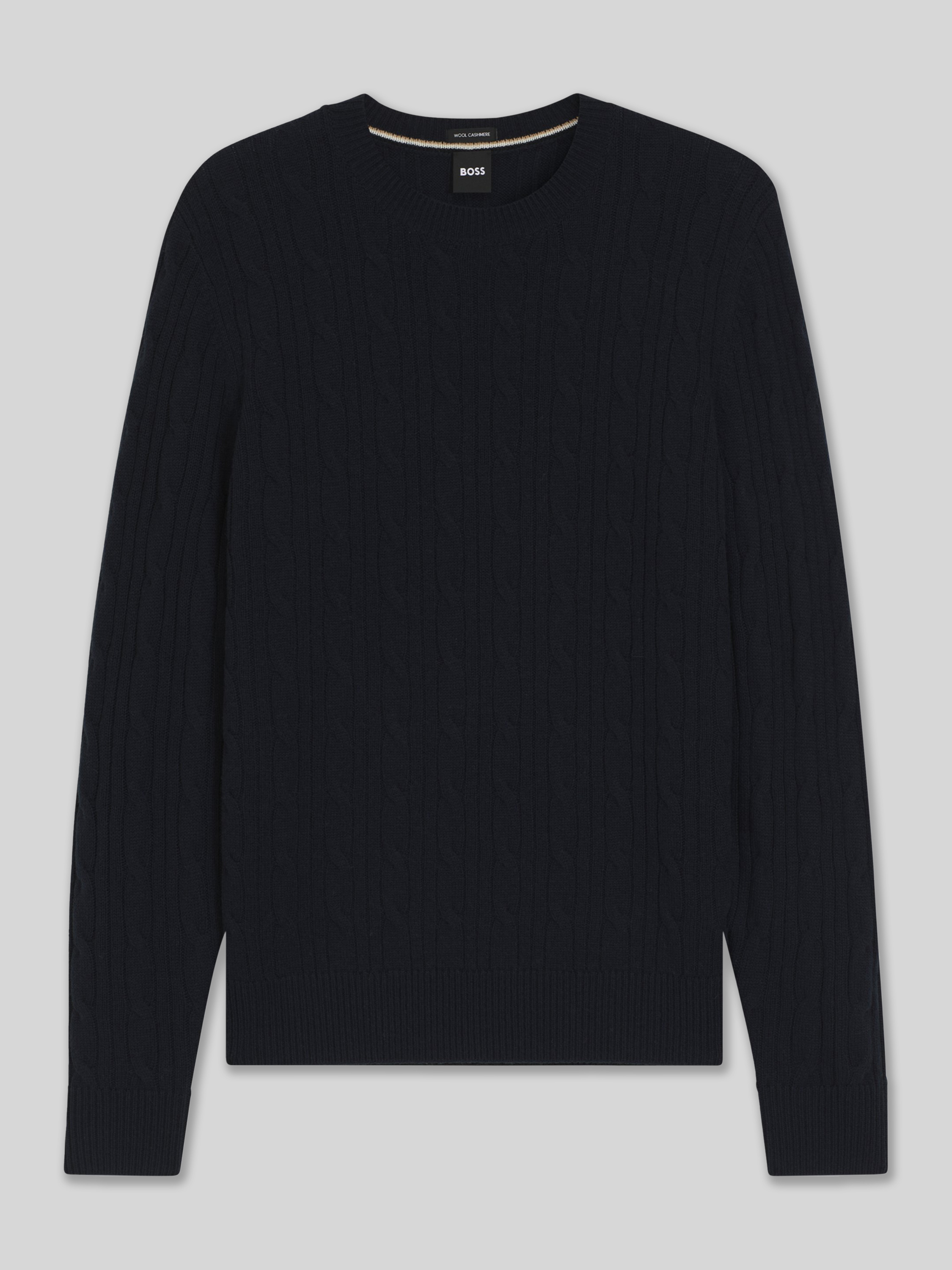 BOSSRegular Fit Strickpullover aus Schurwoll-Kaschmir-Mix Modell 'HETICO' in marine