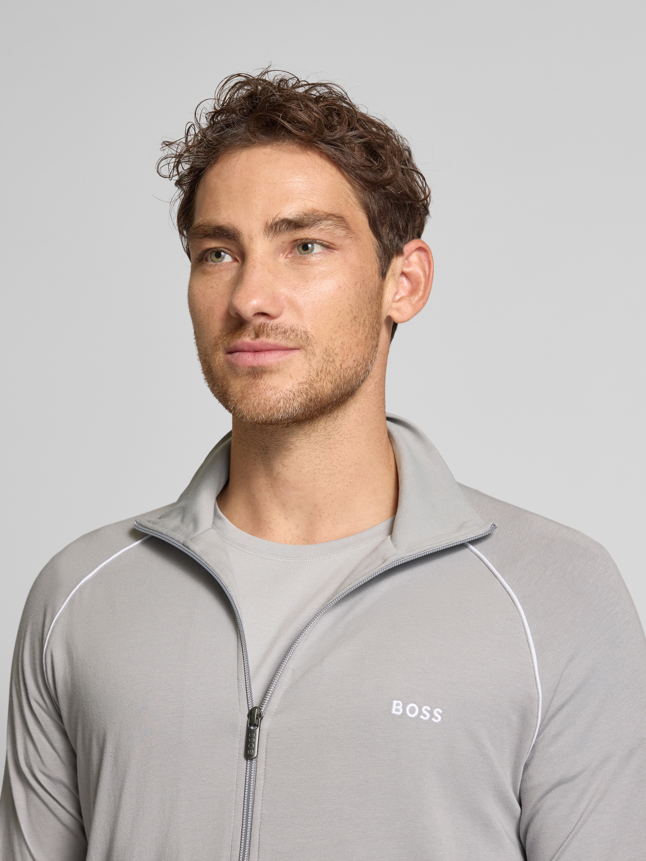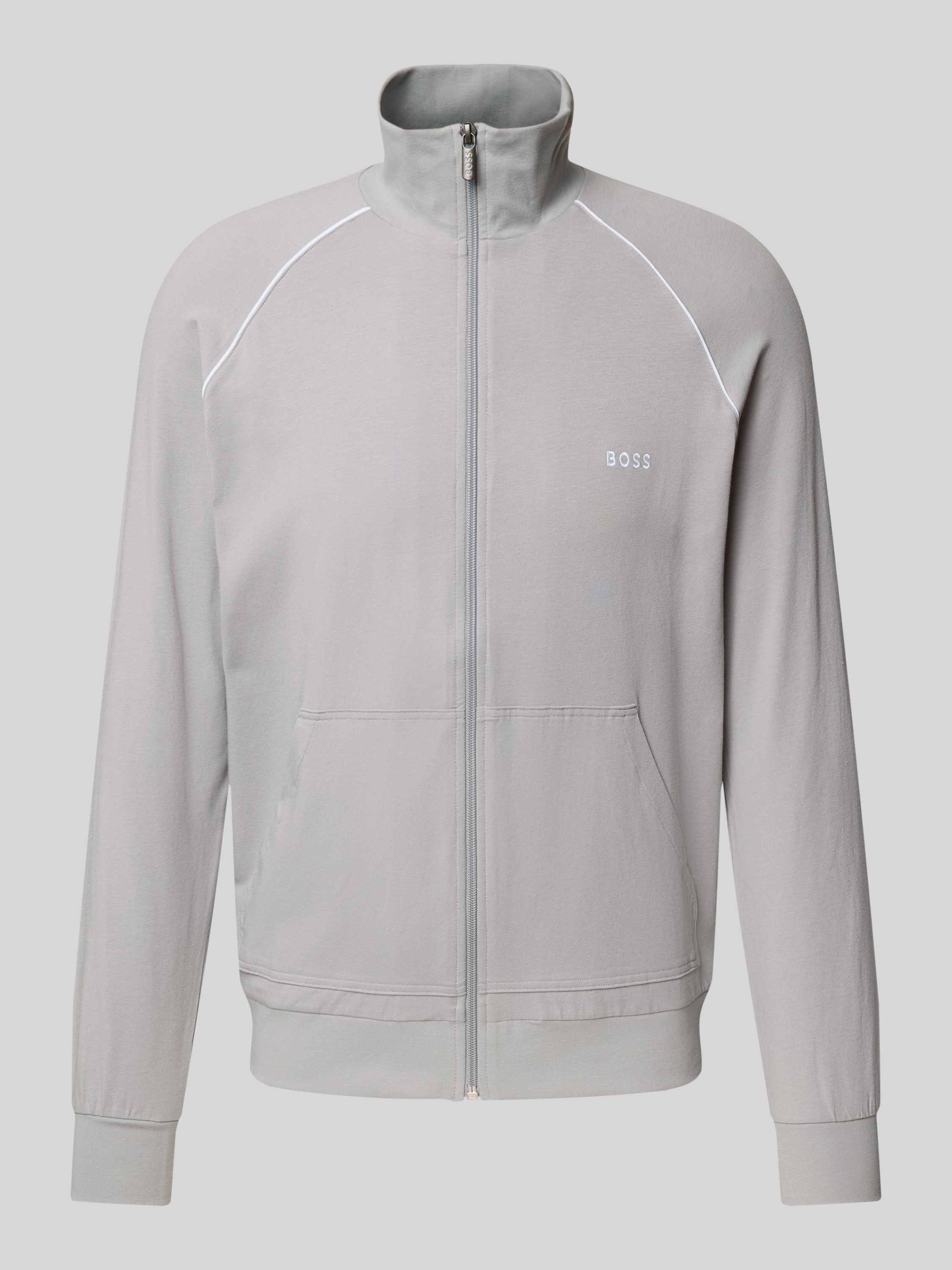 Die Herren Sweatjacke von BOSS im Regular Fit zeigt sich in klassisch unifarbener Optik und punktet mit Teilungsnähten sowie Raglanärmeln. Dank des Baumwoll-Mix-Materials fühlt sich das Modell angenehm weich an. Seitliche Eingrifftaschen und ein Stehkragen runden das Design funktional ab.