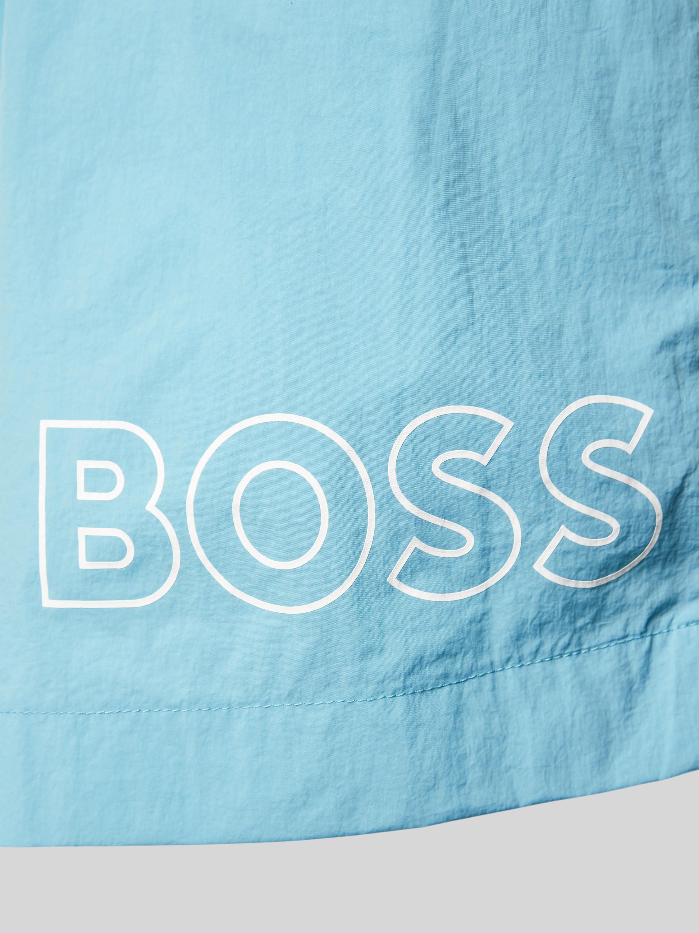 BOSSRelaxed Fit Badeshorts mit Label-Print Modell 'Mooneye' in hellblau