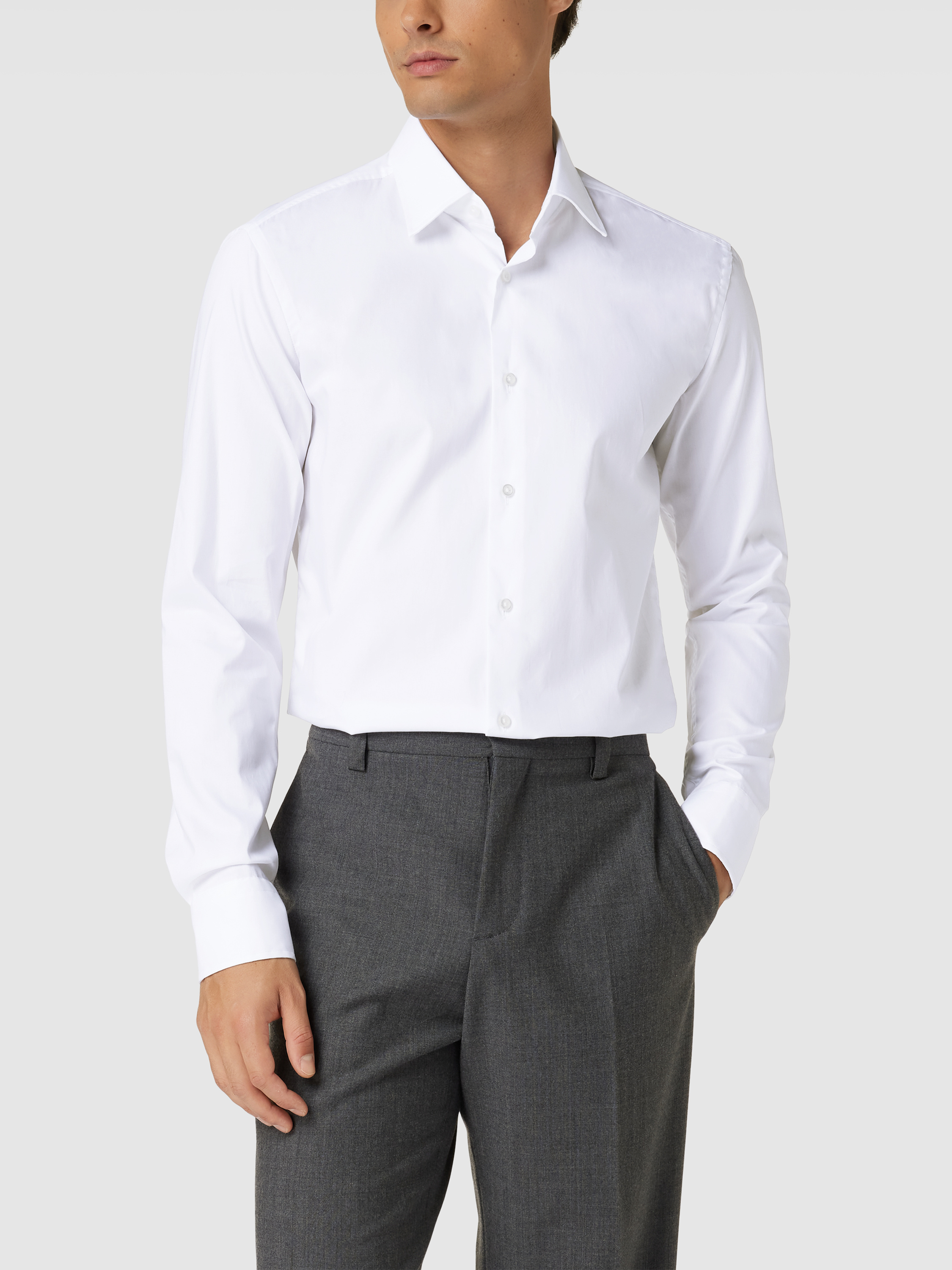 BOSSSlim Fit Business-Hemd mit Kentkragen Modell 'Hank Kent' in weiss