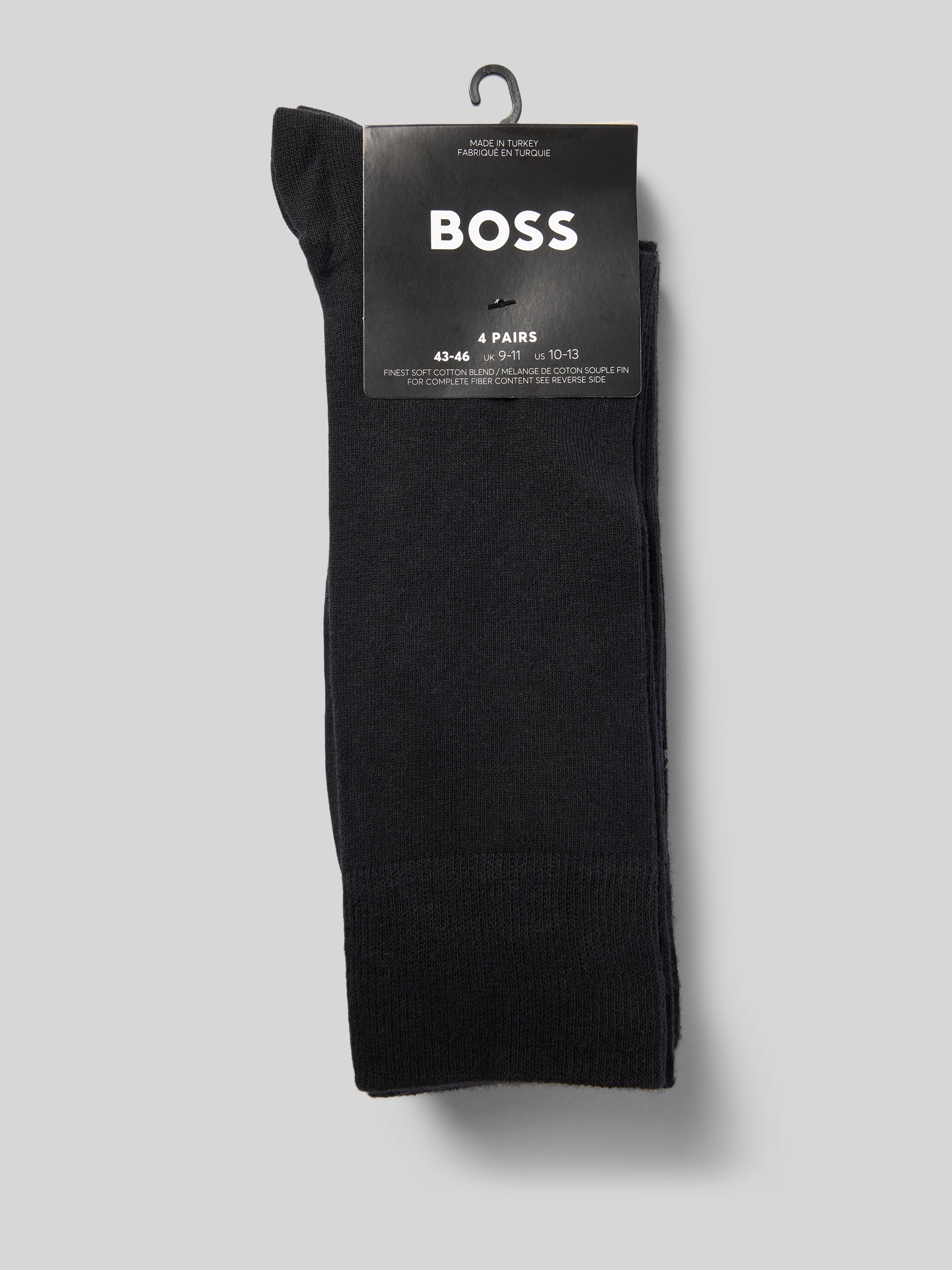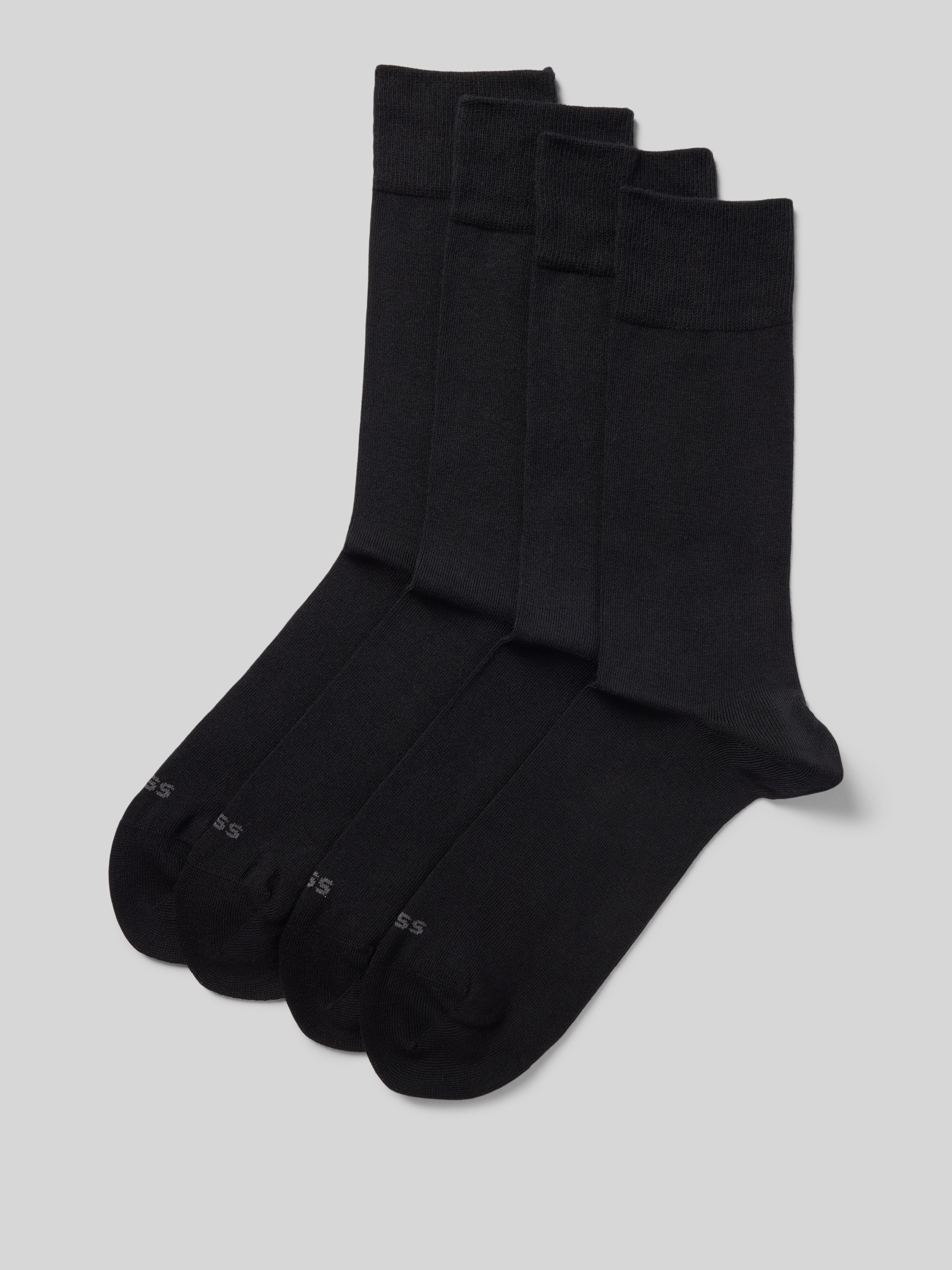 Die Herren Socken von BOSS im 4er-Pack zeichnen sich durch ihre dezente, unifarbene Optik und den charakteristischen Label-Schriftzug aus. Durch den Baumwoll-Mix fühlt sich das Material angenehm auf der Haut an, sodass man sich den ganzen Tag über wohlfühlen kann. Dank des bequemen Bundabschlusses bleiben die Socken zuverlässig an Ort und Stelle, ohne einzuschnüren.