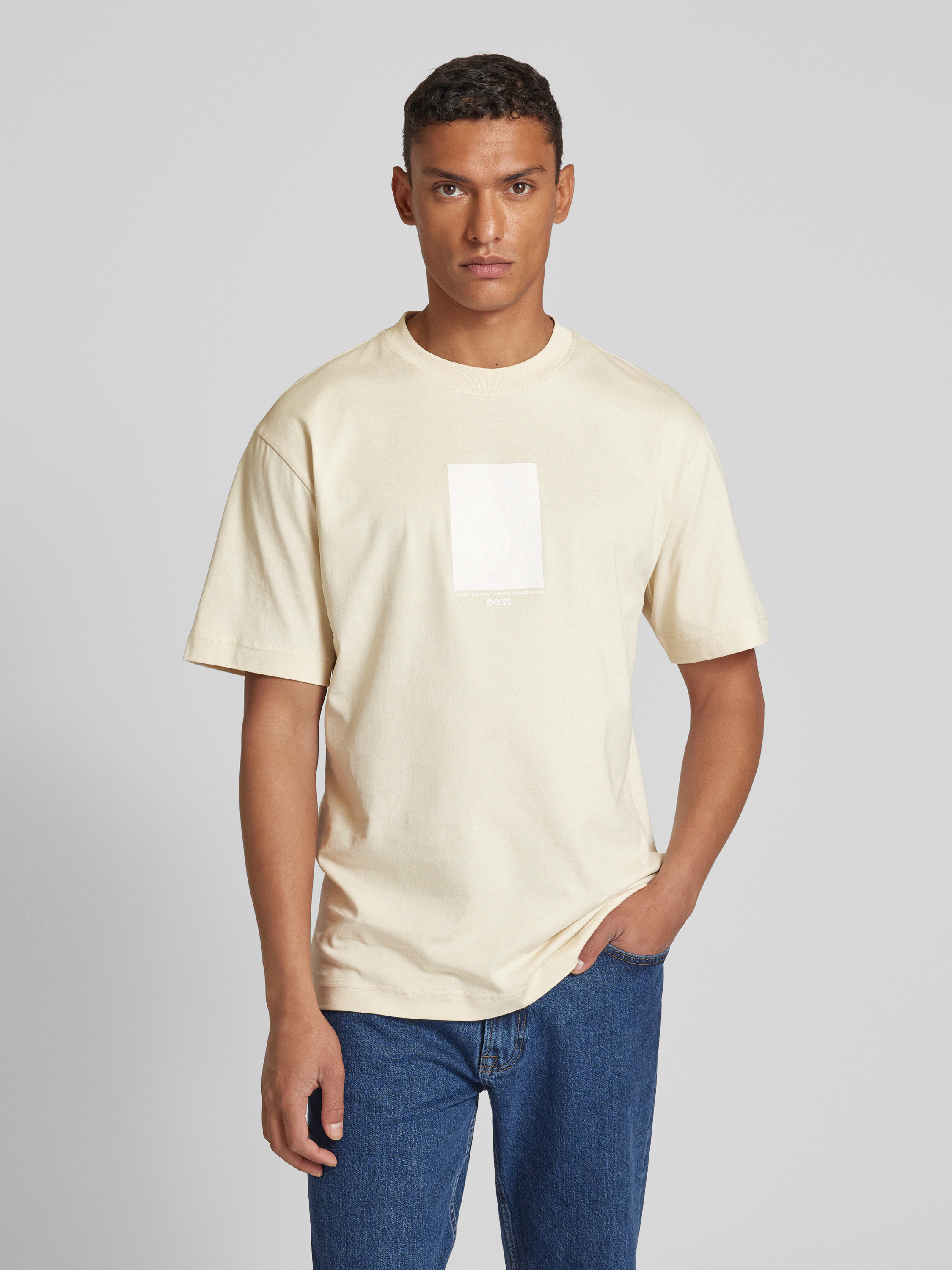 BOSST-Shirt mit Statement- und Label-Print Modell 'Tessin' in offwhite