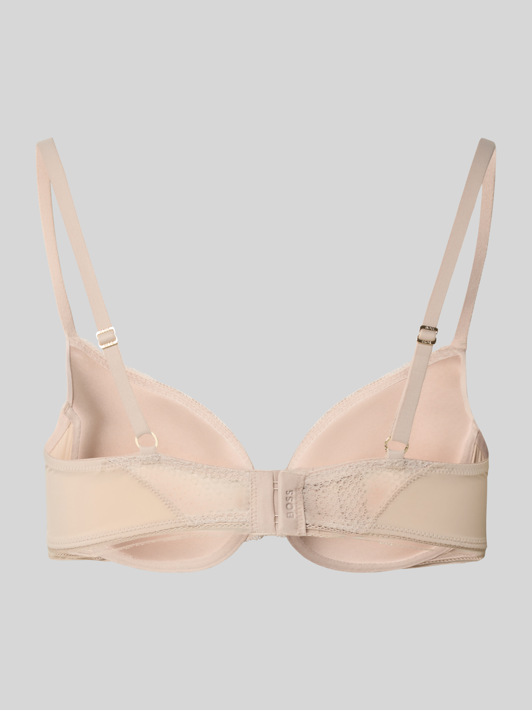 Der Damen BH von BOSS, Modell 'DEMI_B.PURE', präsentiert sich in schlichter Optik: unifarben, ergänzt durch feinen Spitzenbesatz. Vorgeformte Cups und ein integrierter Bügel sorgen für eine angenehme Passform, während verstellbare Spaghettiträger individuelle Anpassung ermöglichen. So lässt sich dezenter Komfort mit stilvollem Detail kombinieren.