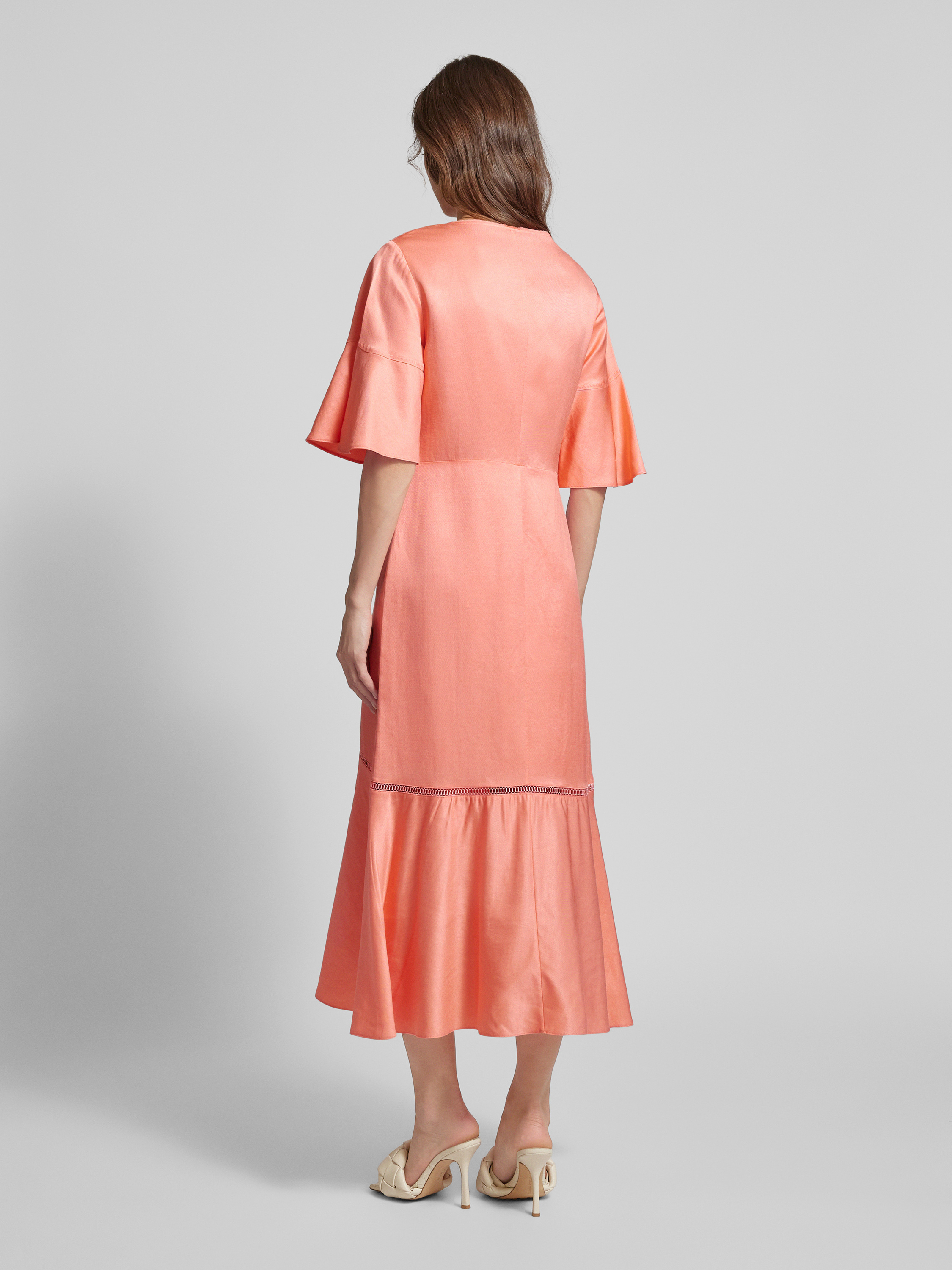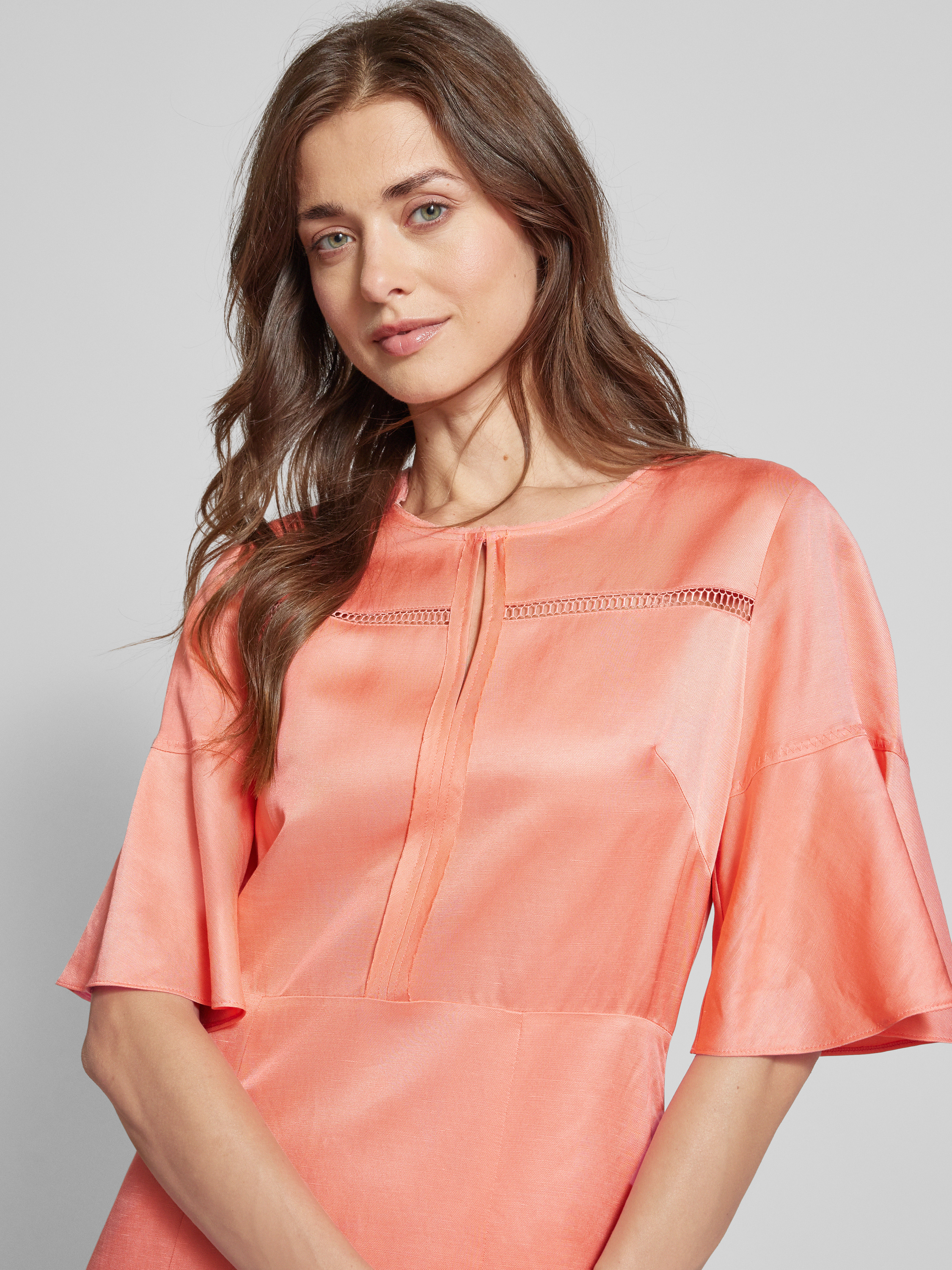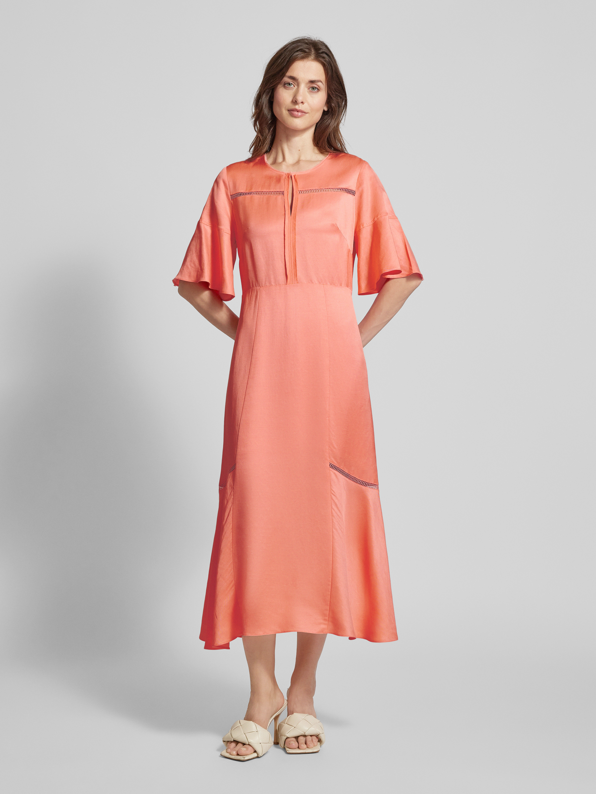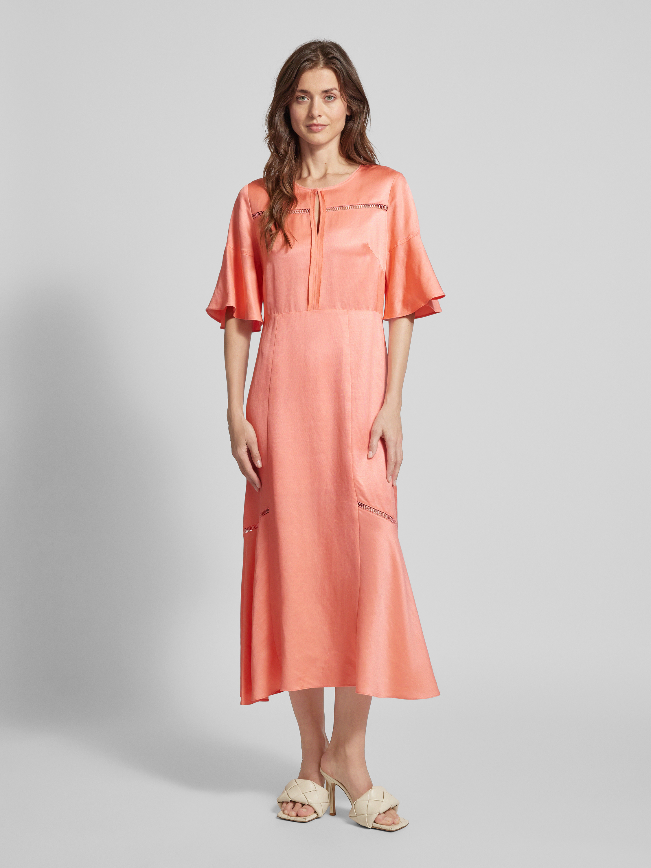 BOSSMidikleid aus Viskose-Leinen-Mix mit Schlüsselloch-Ausschnitt in koralle