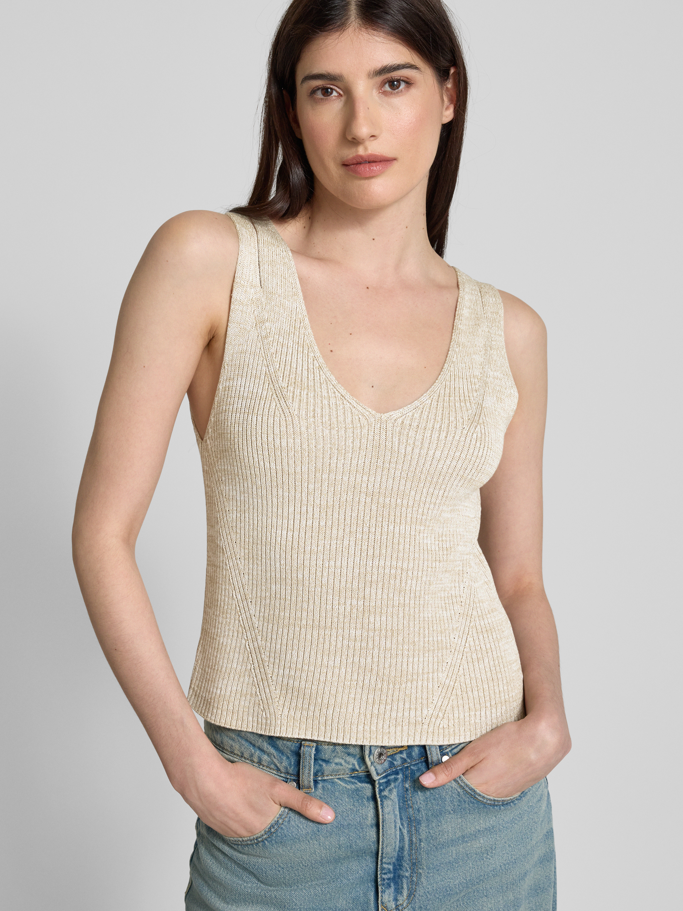 BOSSStricktop mit Cut Outs Modell 'Flani' in beige