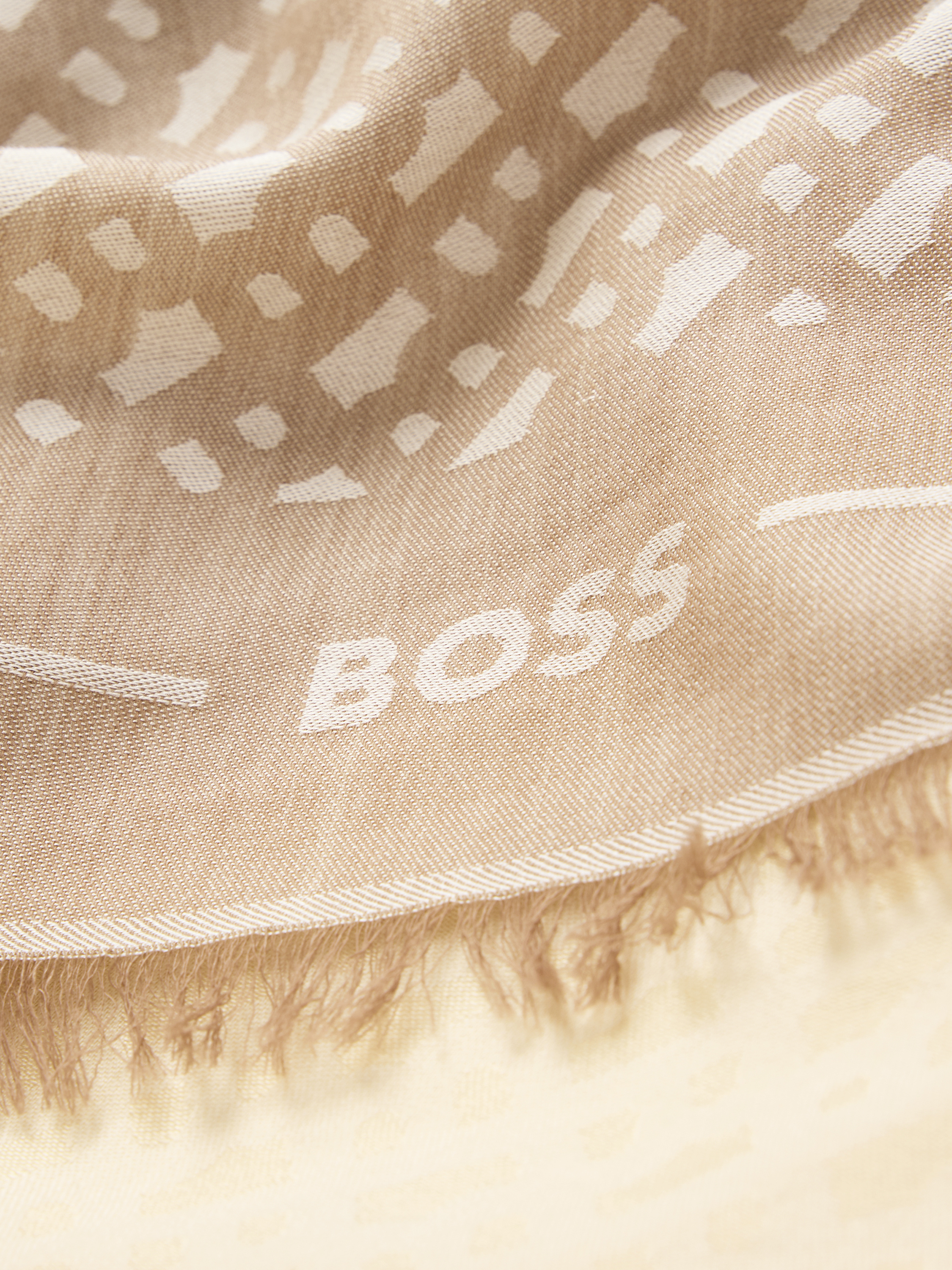Das Tuch von BOSS, gefertigt aus einem Modal-Woll-Mix, überzeugt durch seine feine Webstruktur, die angenehm auf der Haut liegt. Das Allover-Muster mit dezenten Fransen verleiht jedem Outfit eine stilvolle Note. Der subtile Label Print rundet das Design elegant ab.