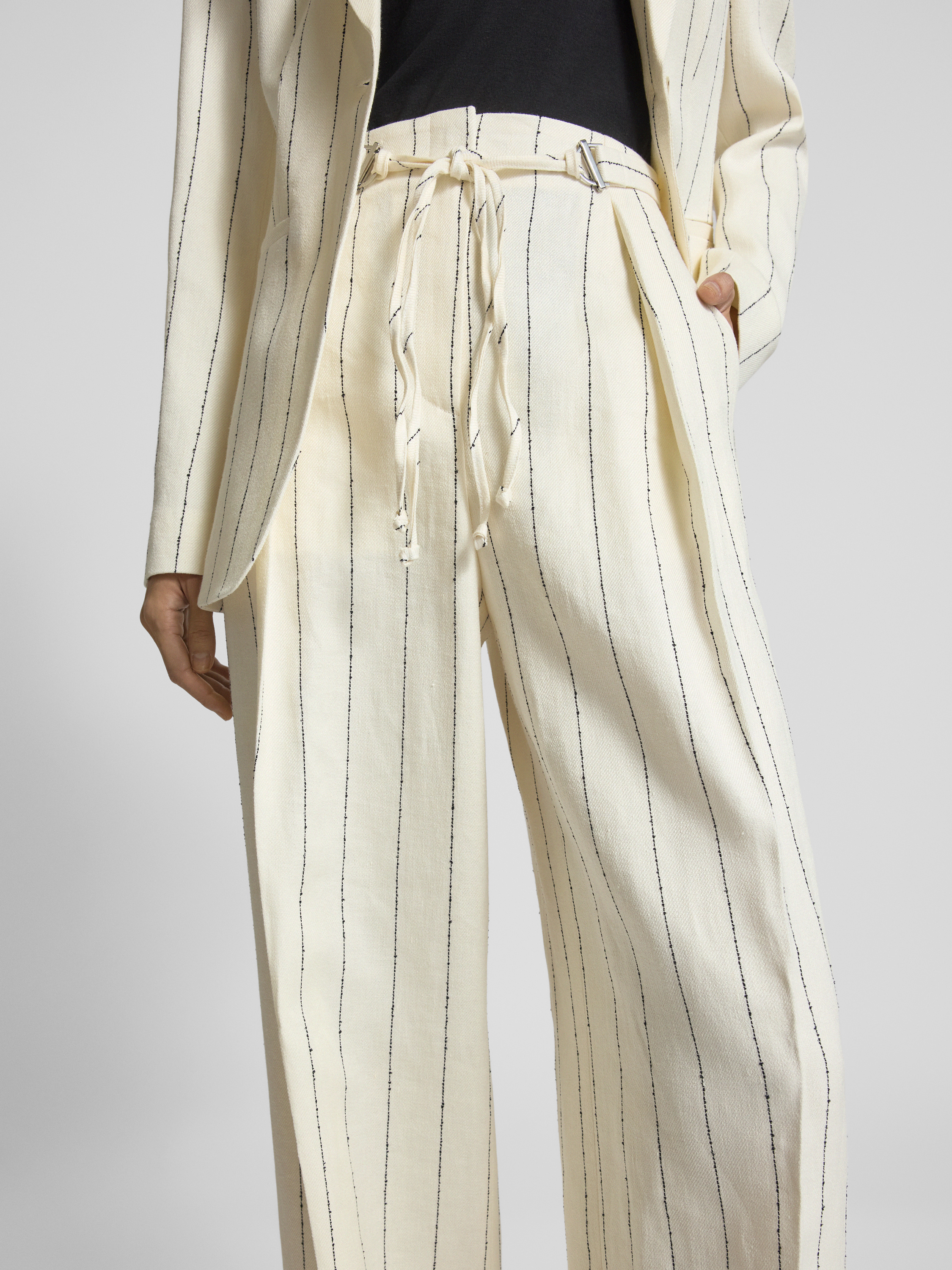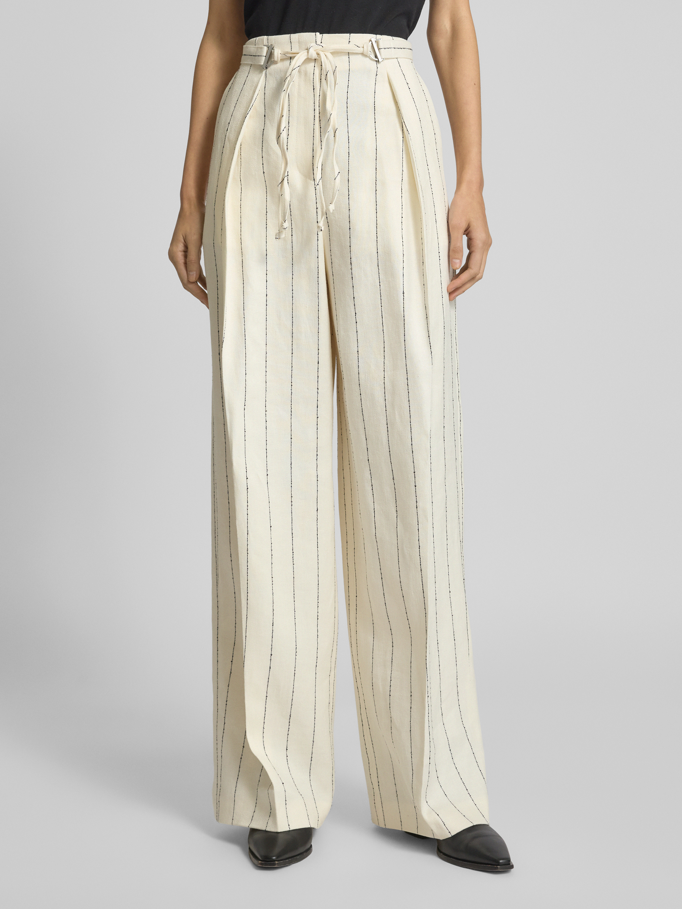 BOSSWide Leg Leinenhose mit Bindegürtel Modell 'Tiana' in offwhite