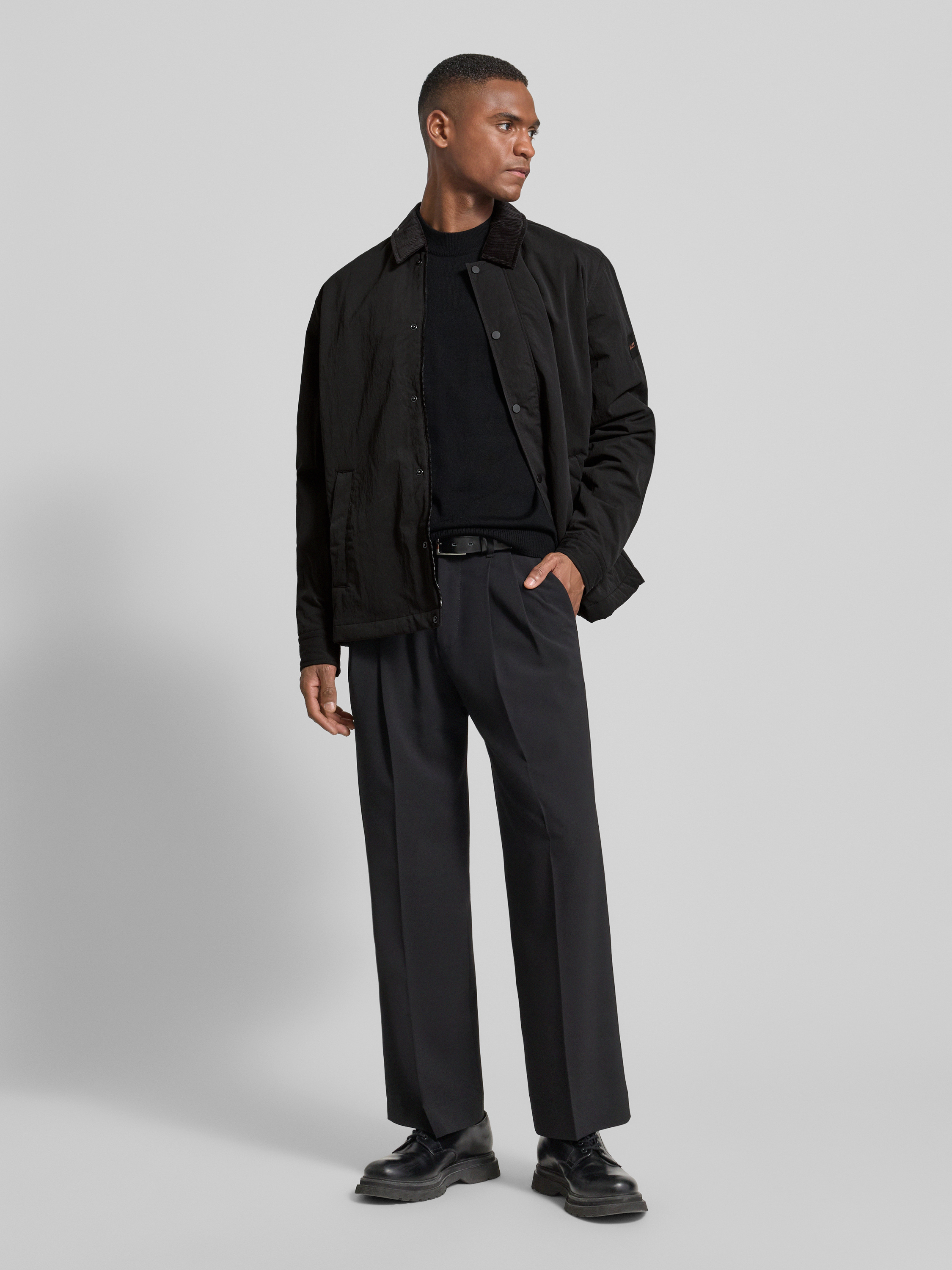 BOSS OrangeRegular Fit Jacke mit Cord-Kragen Modell 'LEIDON-ZIP_M' in black