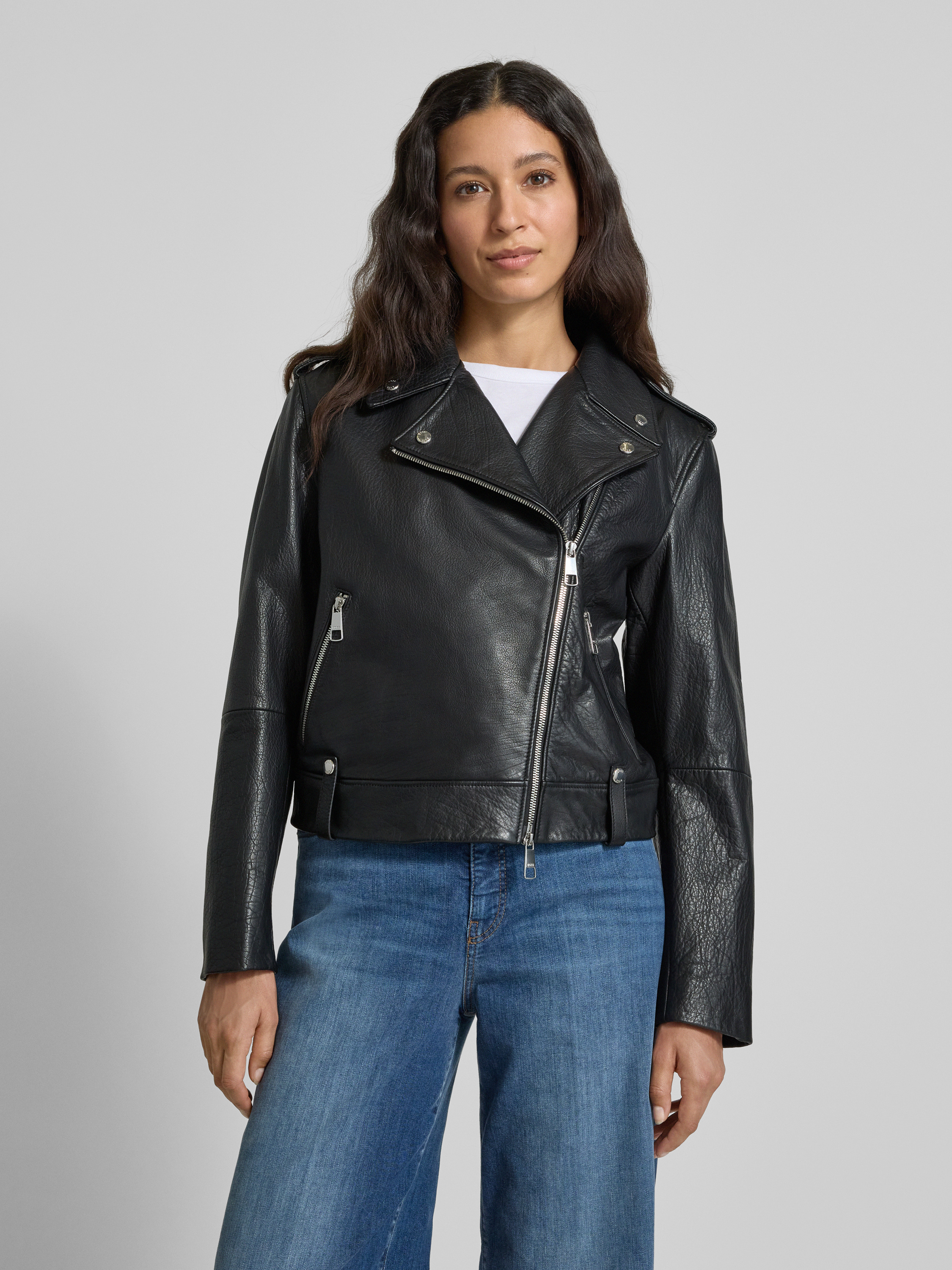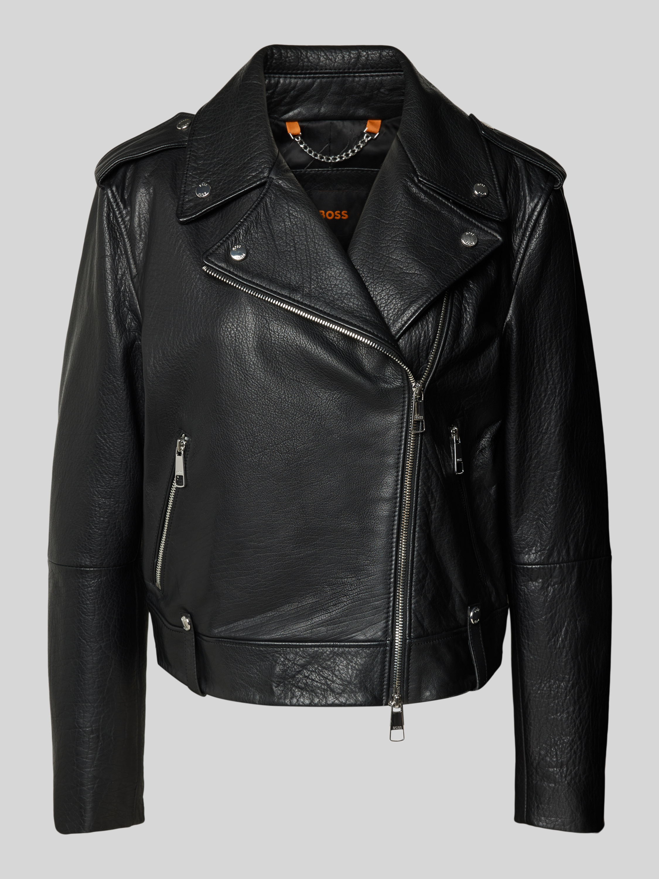 BOSS OrangeRegular Fit Lederjacke aus genarbten Rindsleder in black