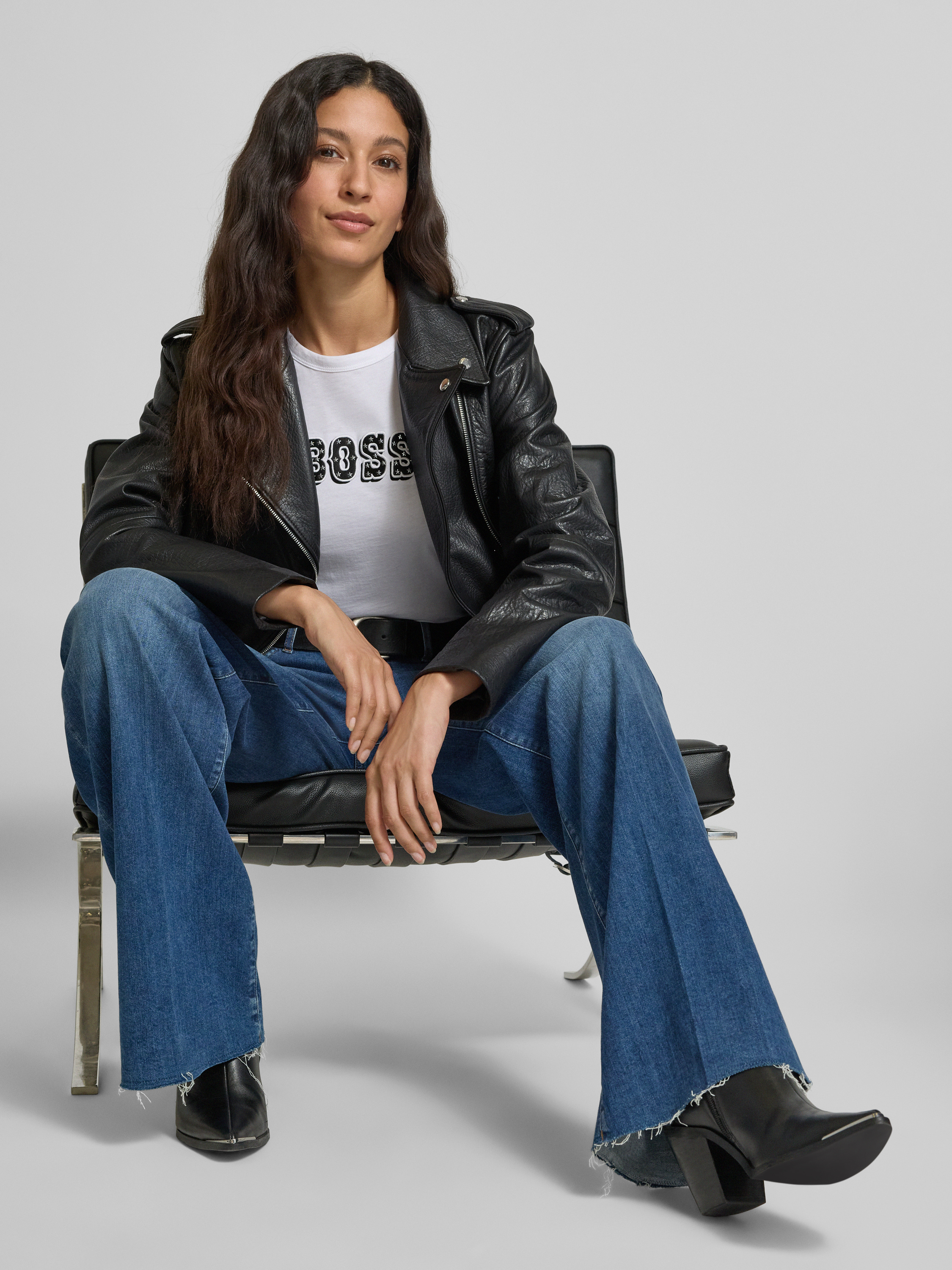 Die Damenjacke von BOSS Orange aus robustem Rindsleder zeigt sich in schlichter Optik und sitzt durch den Regular Fit angenehm am Körper. Der Reverskragen und dezente Nieten verleihen dem Modell eine moderne Note, während lange Ärmel vielseitige Kombinationsmöglichkeiten eröffnen. So entsteht ein zuverlässiger Begleiter für unterschiedliche Anlässe.