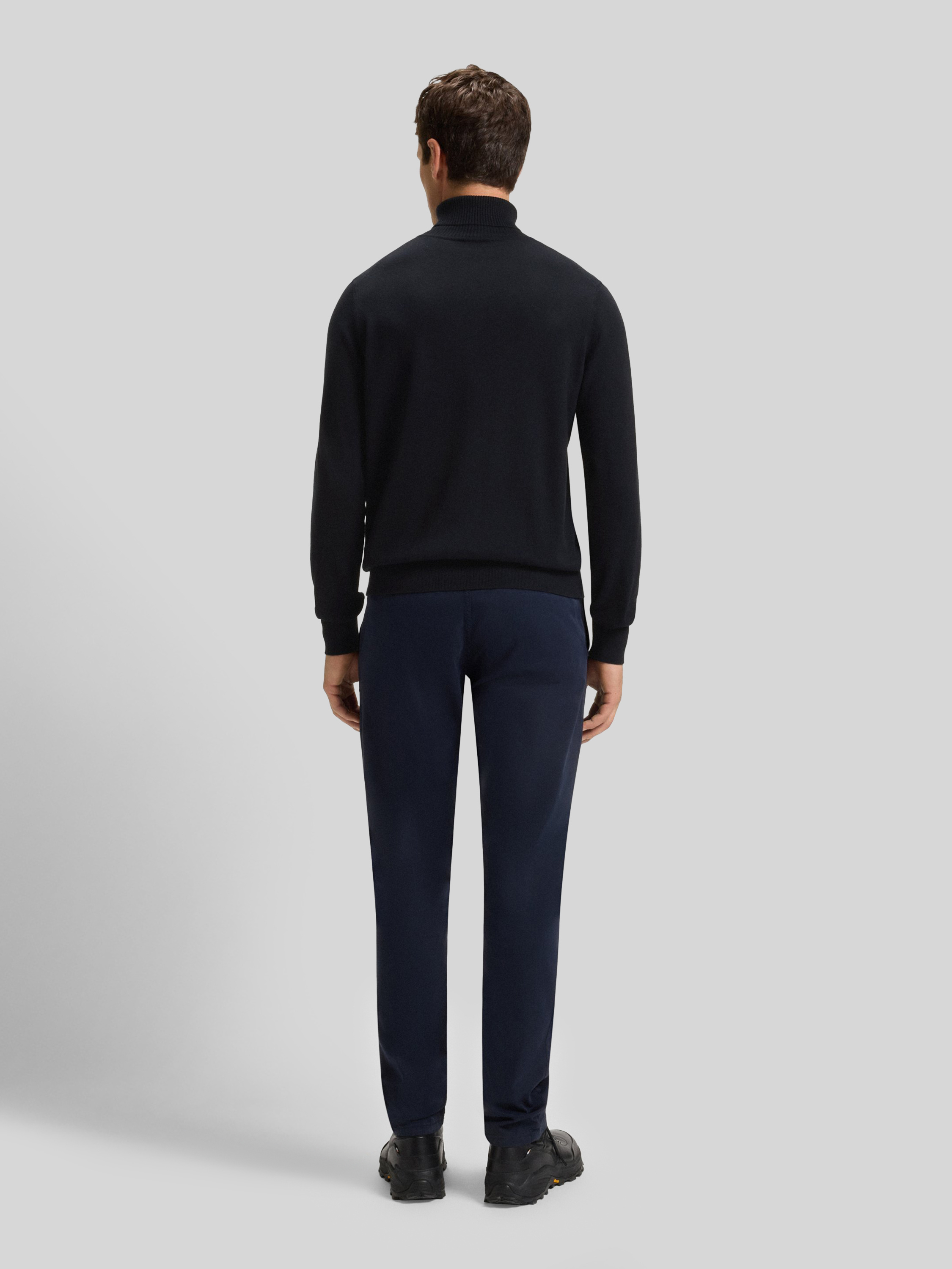 Der Herren Rollkragenpullover von BOSS Orange, Modell Akiro_S, zeigt sich in unifarbener Optik und klassischem Regular Fit. Durch den Baumwoll-Kaschmir-Mix fühlt sich das Strickmaterial angenehm weich an und sorgt für ein ausgeglichenes Tragegefühl. Dezente Details wie der Stehkragen und ein Label Patch runden das Erscheinungsbild ab.
