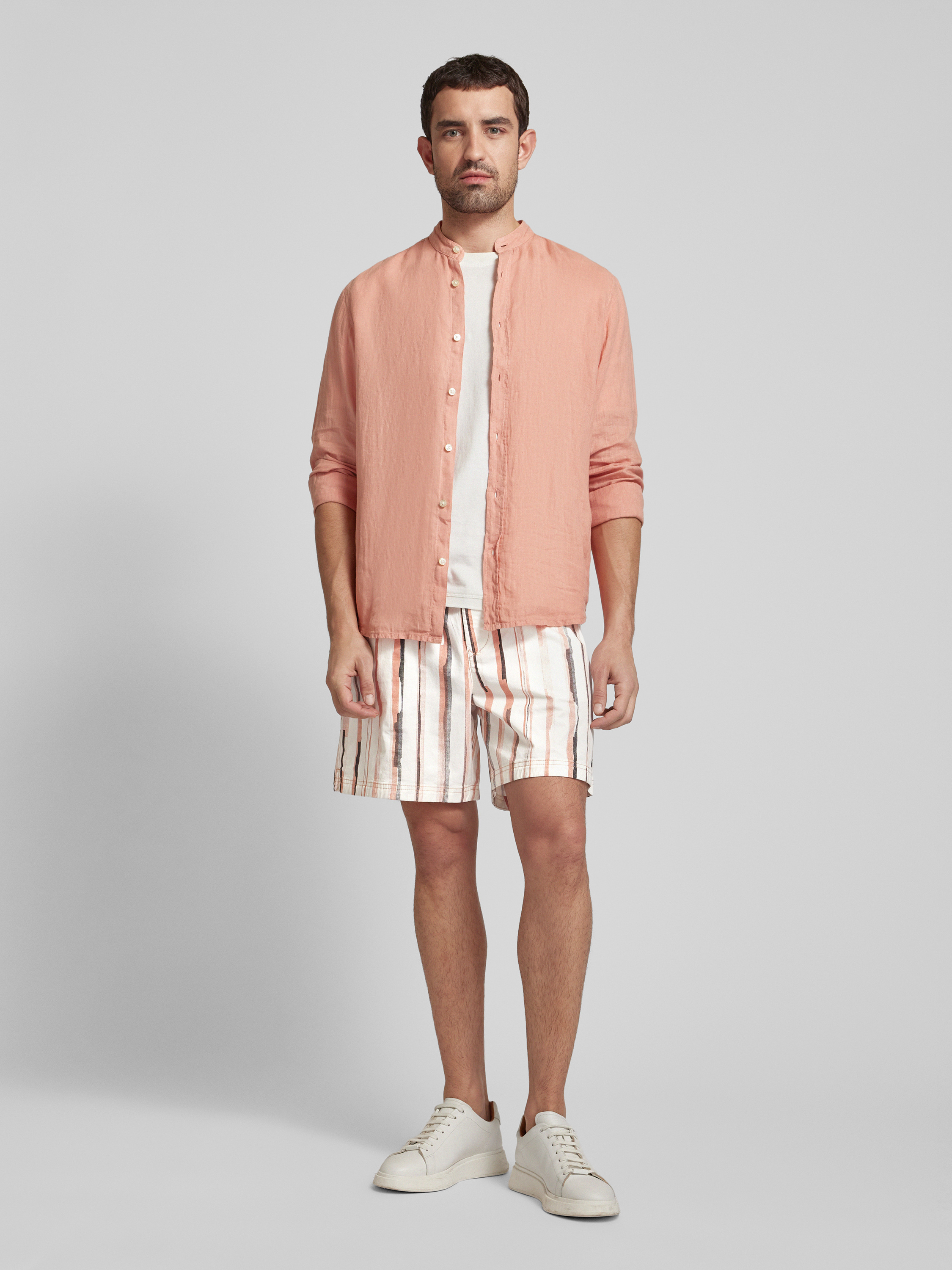 Die Regular Fit Shorts Modell 'Sandrew' von BOSS Orange kombiniert ein elegantes Streifenmuster mit einem komfortablen Baumwoll-Elasthan-Mix. Dank des elastischen Bunds mit Tunnelzug passt sie sich flexibel an. Diese Shorts eignen sich ideal für entspannte Tage und bieten angenehmen Tragekomfort.