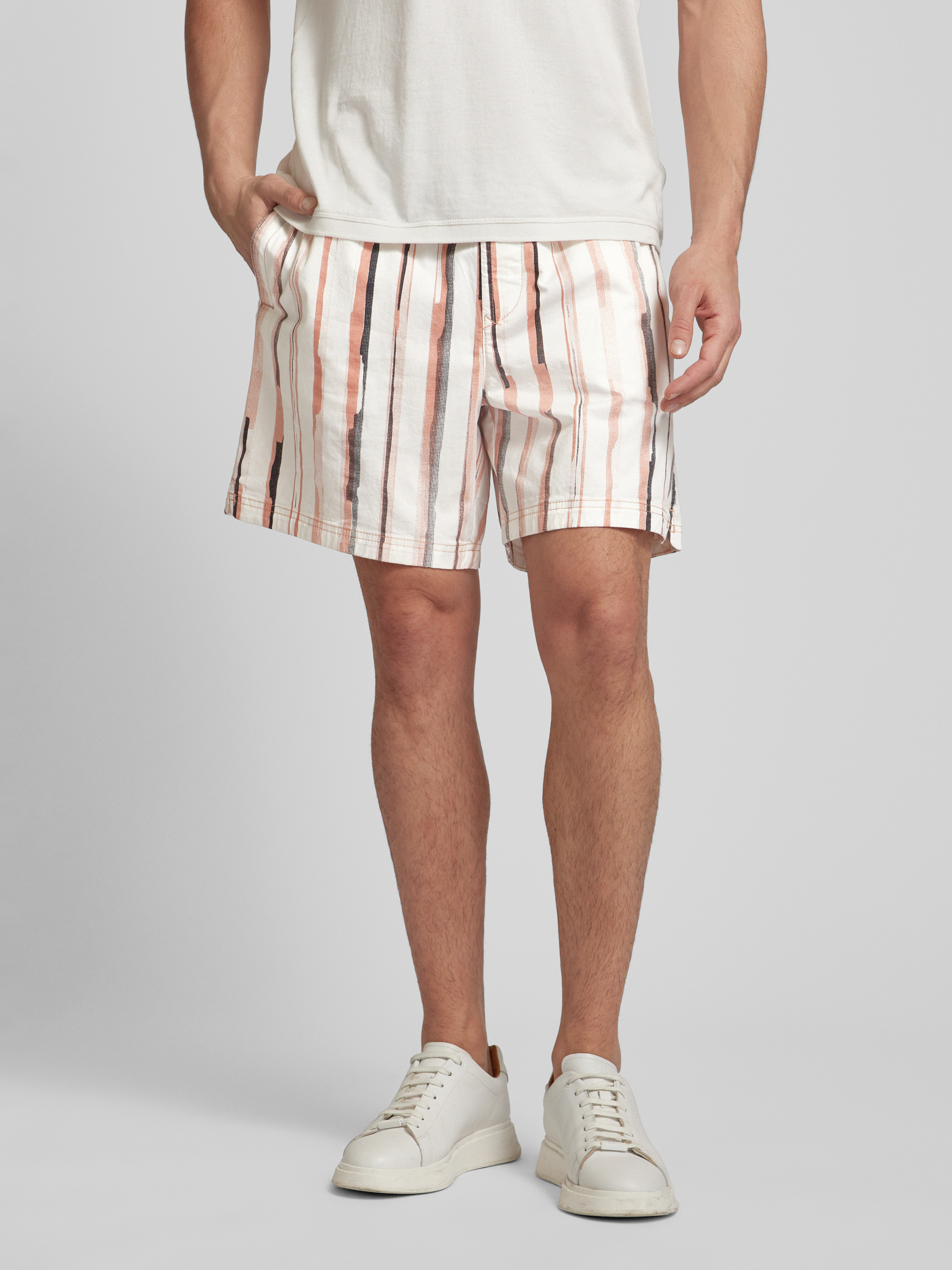 BOSS OrangeRegular Fit Shorts mit Streifenmuster Modell 'Sandrew' in weiss