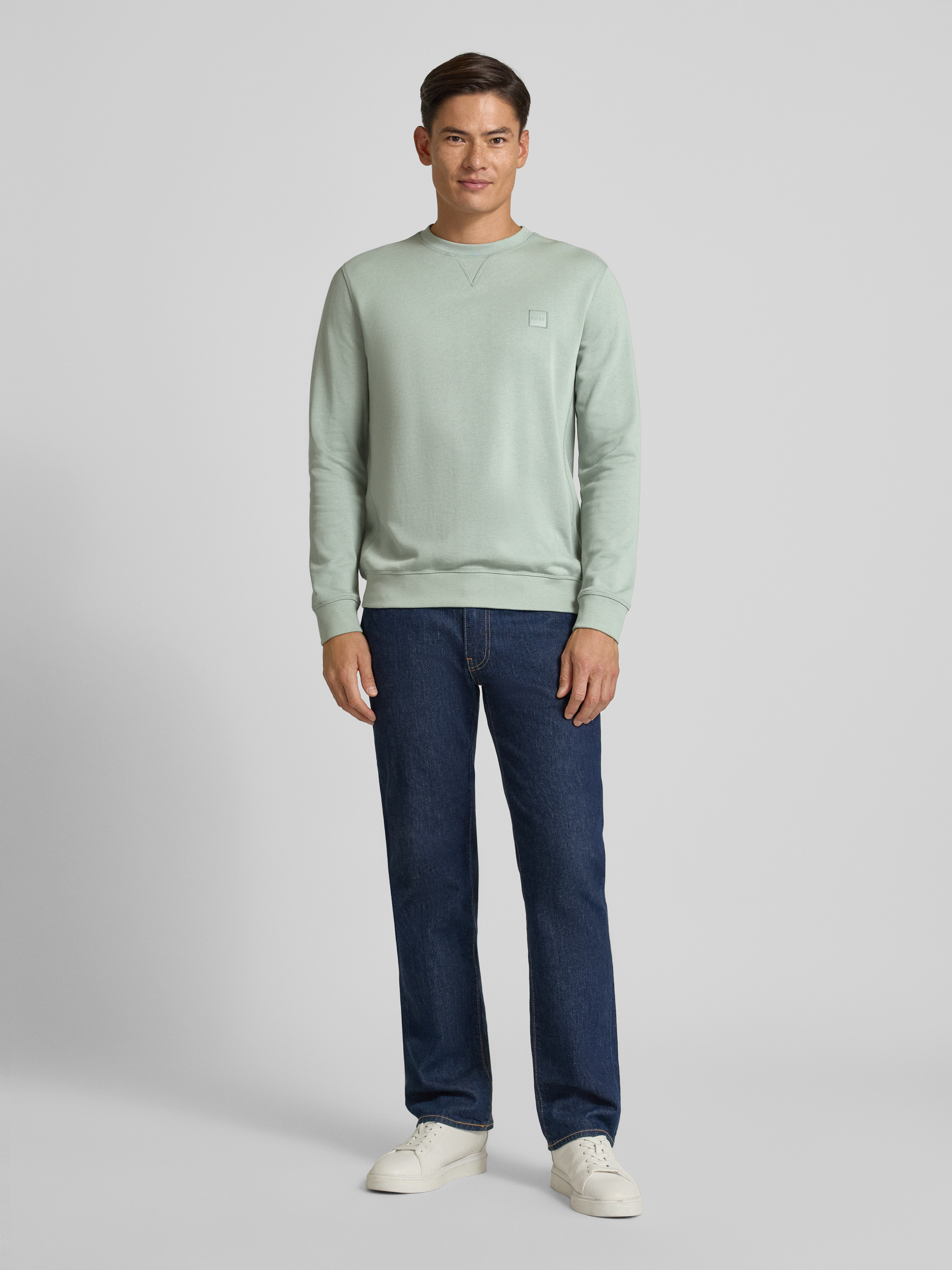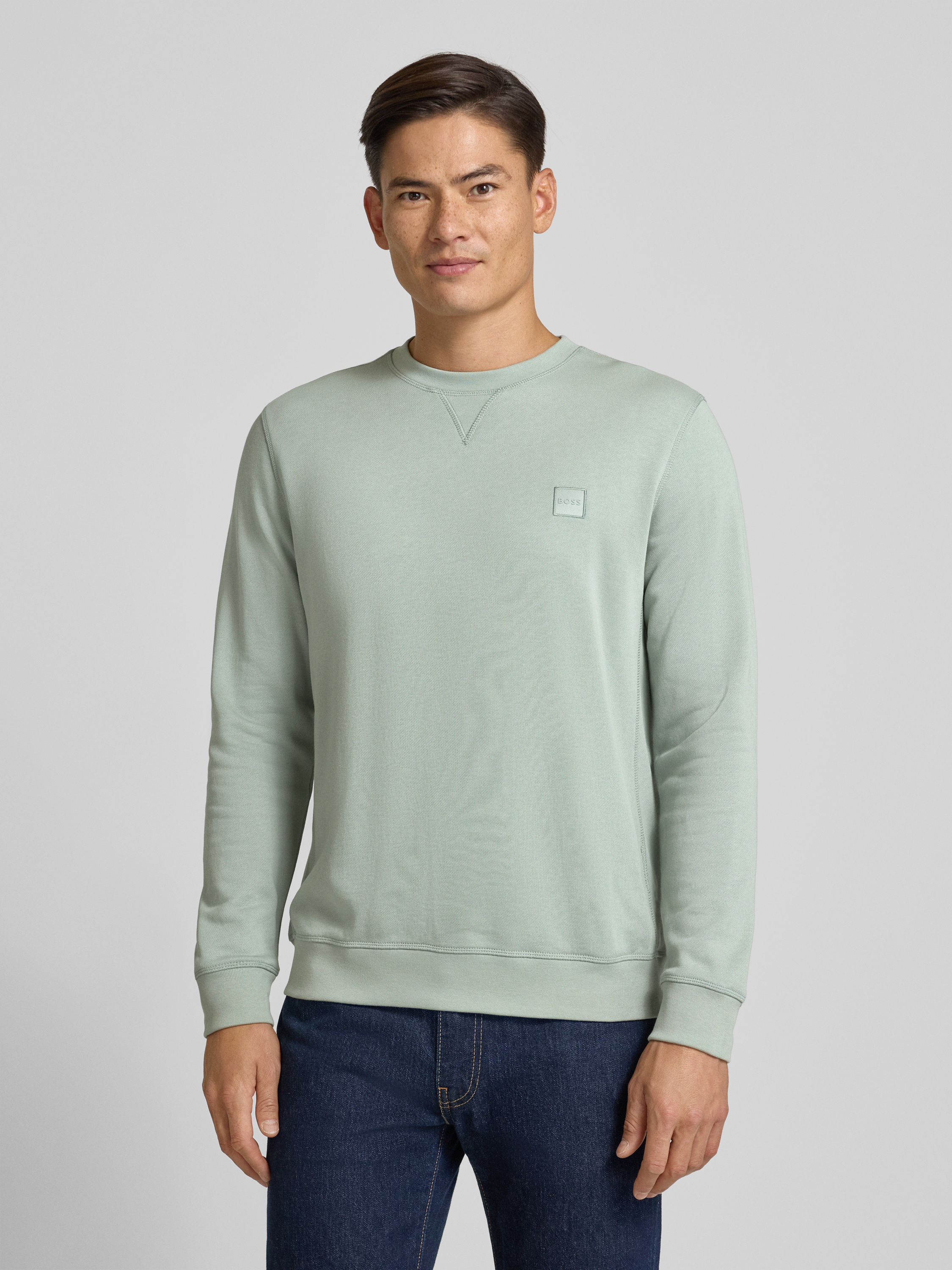 BOSS OrangeRegular Fit Sweatshirt aus reiner Baumwolle Modell 'WESTART' in mint