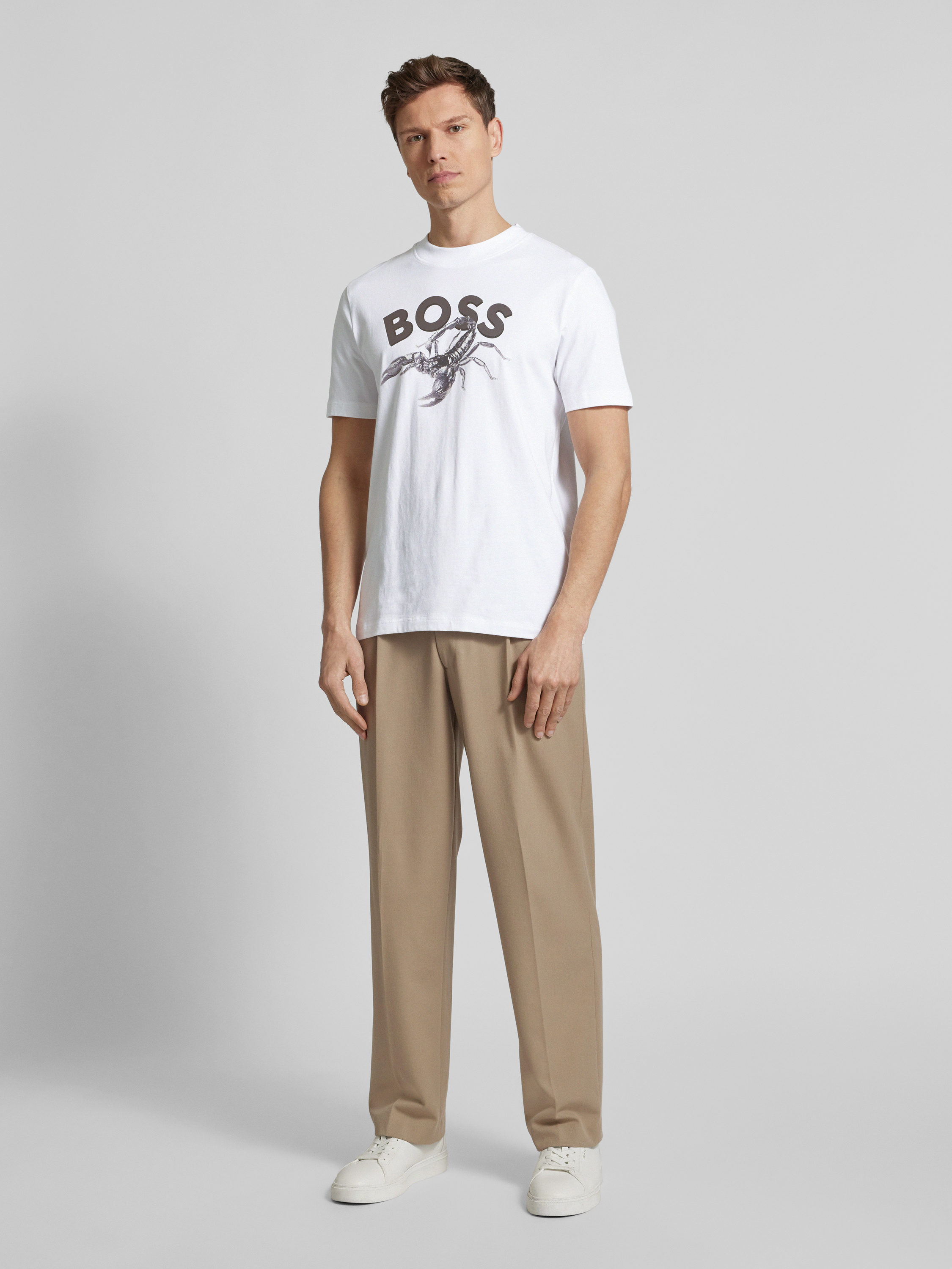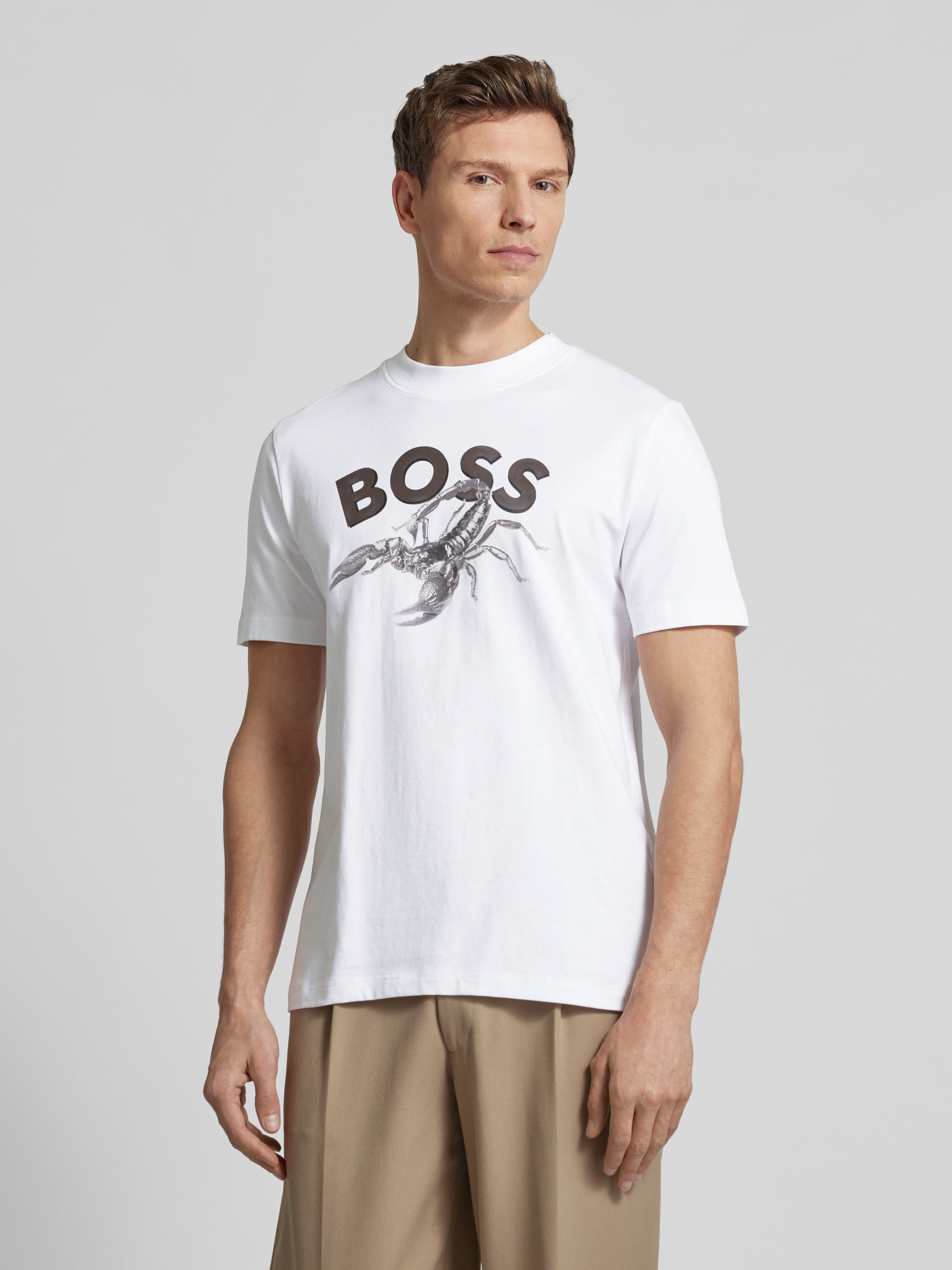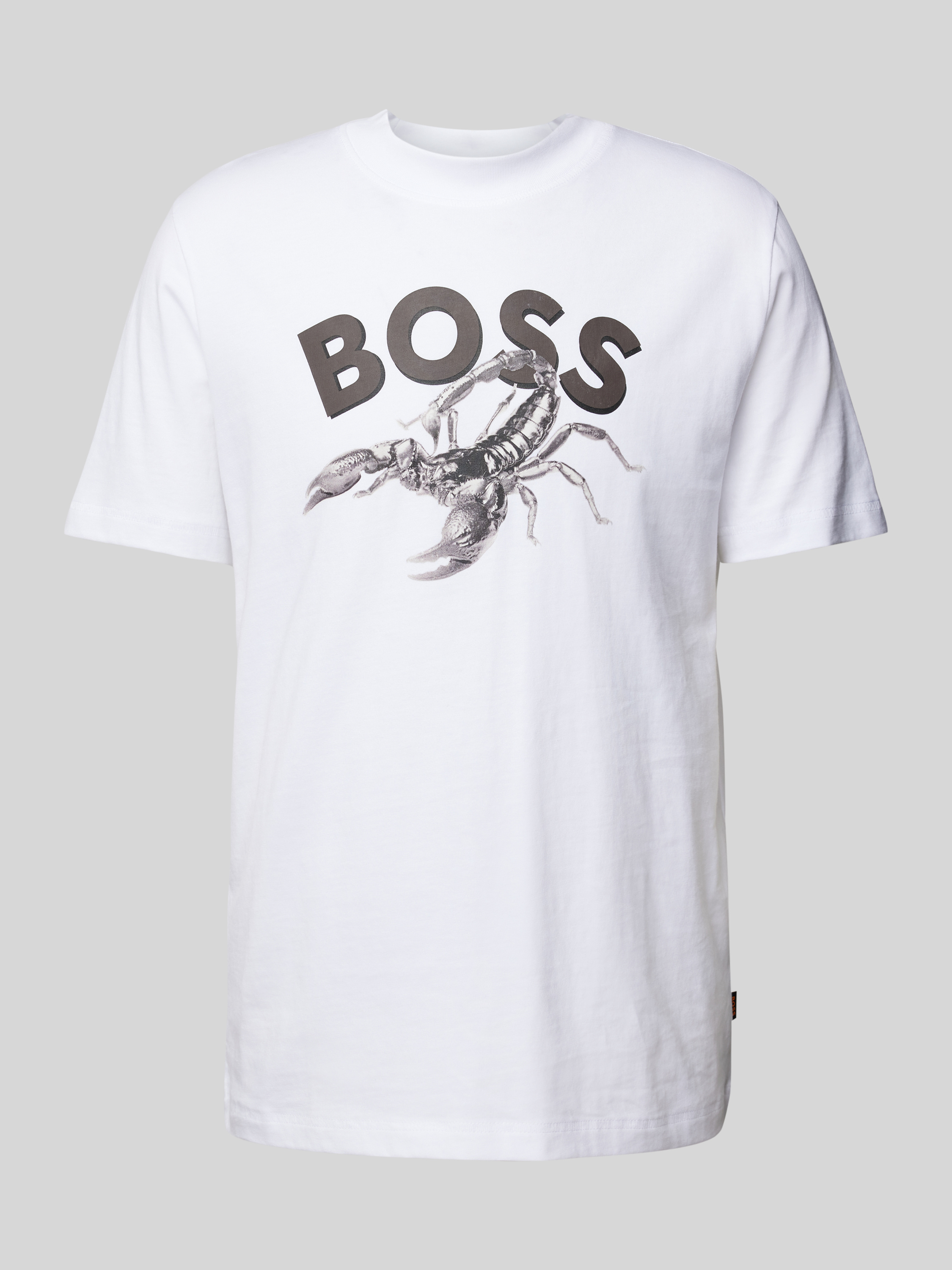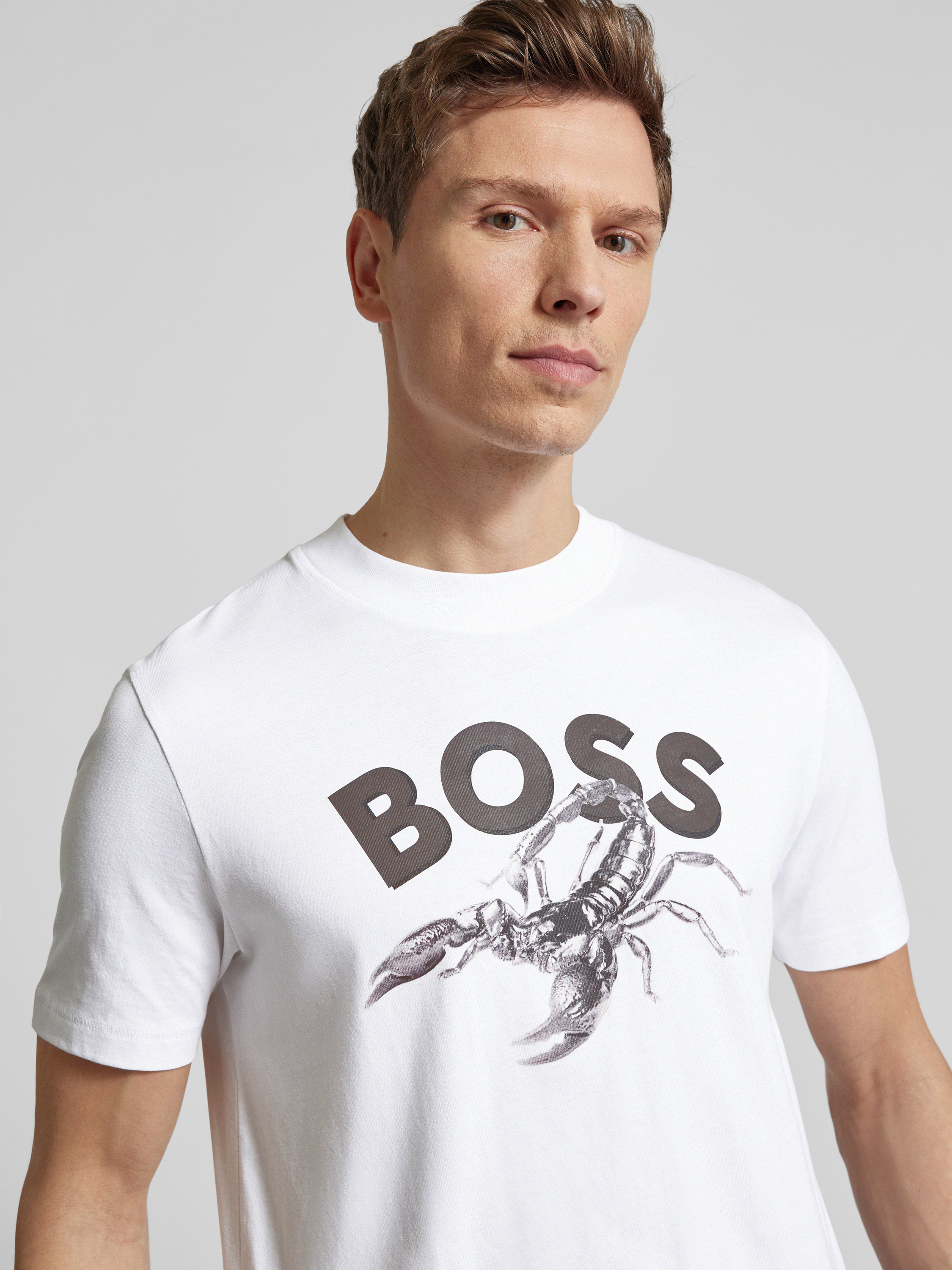 BOSS OrangeRegular Fit T-Shirt mit Label-Motiv-Print Modell 'BOSSFISH' in weiss