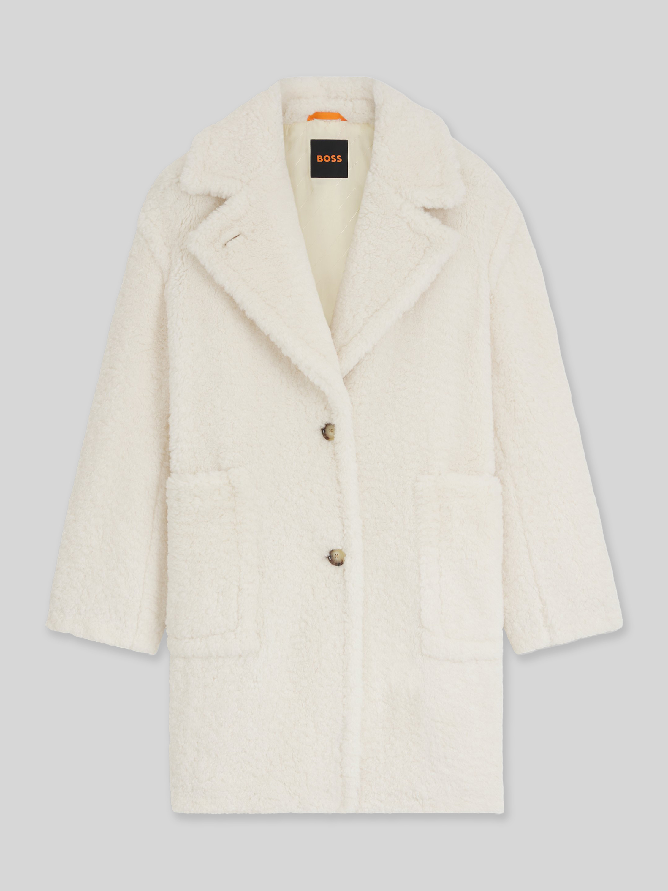 BOSS OrangeRegular Fit Teddy-Mantel mit großen Taschen Modell 'CATEDY' in weiss