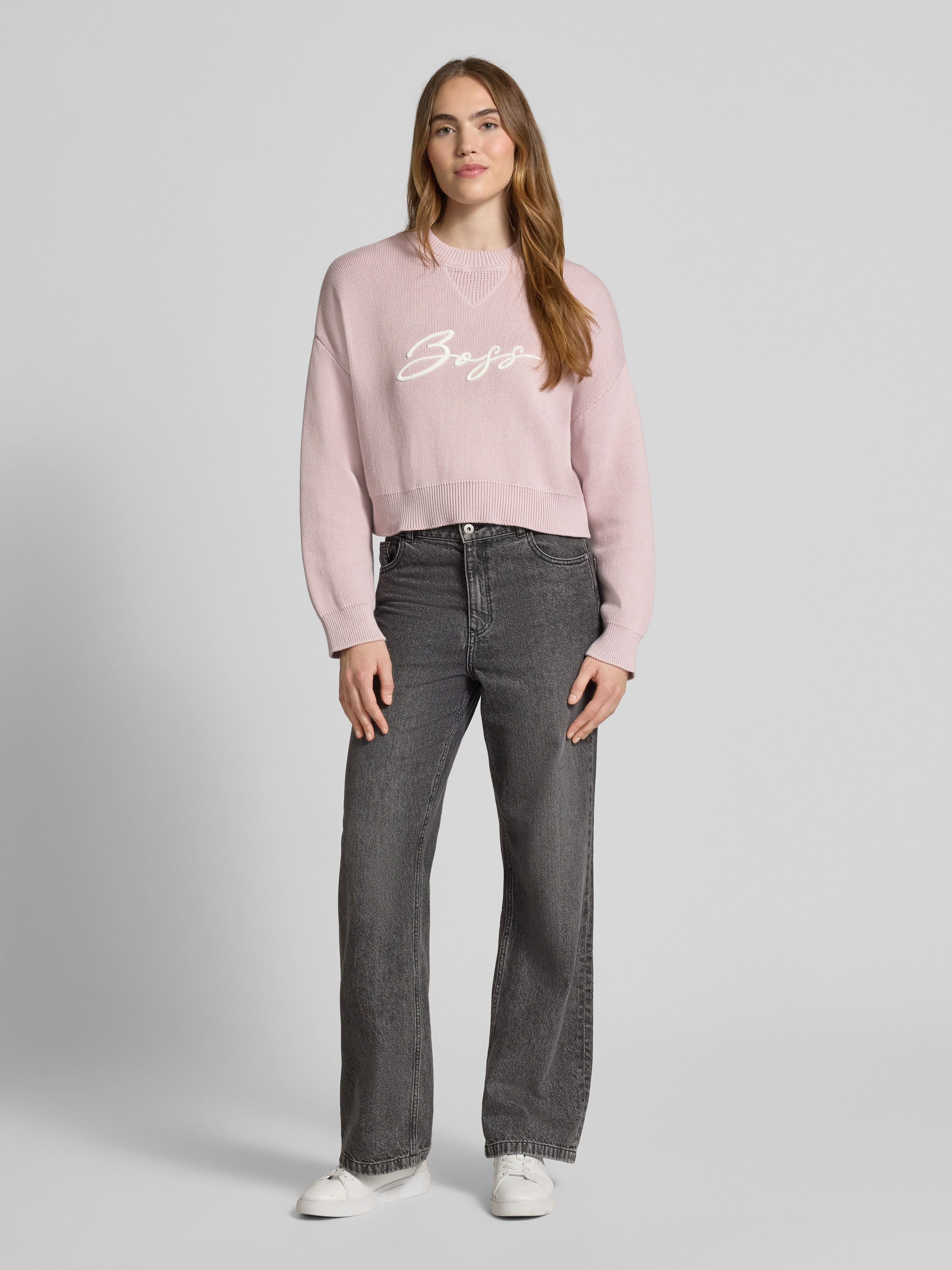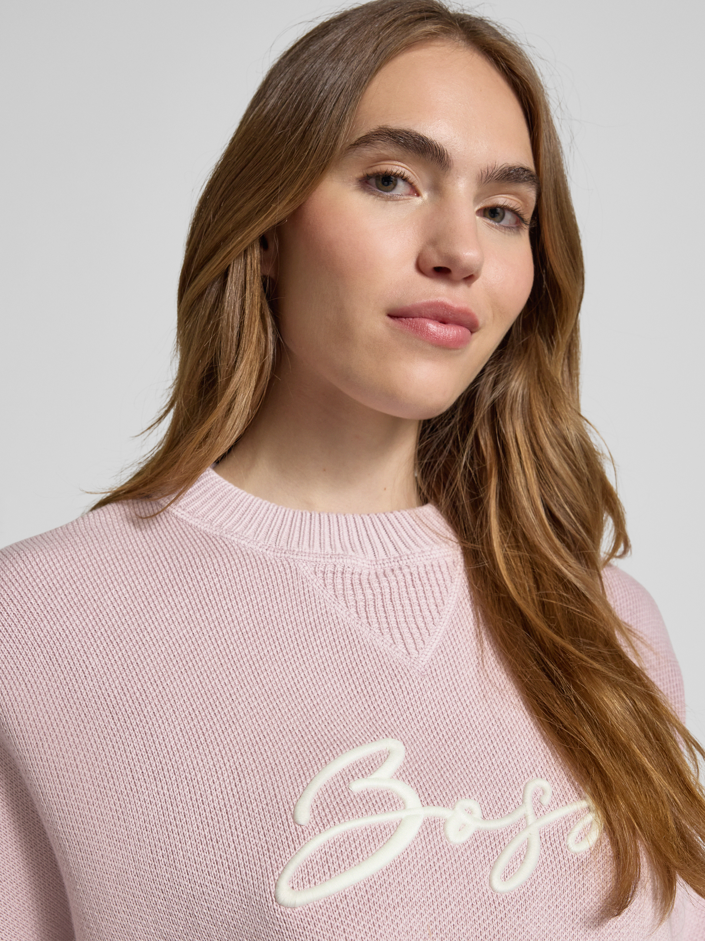 BOSS OrangeRelaxed Fit Strickpullover aus reiner Baumwolle Modell 'FINEVRA' in rosa
