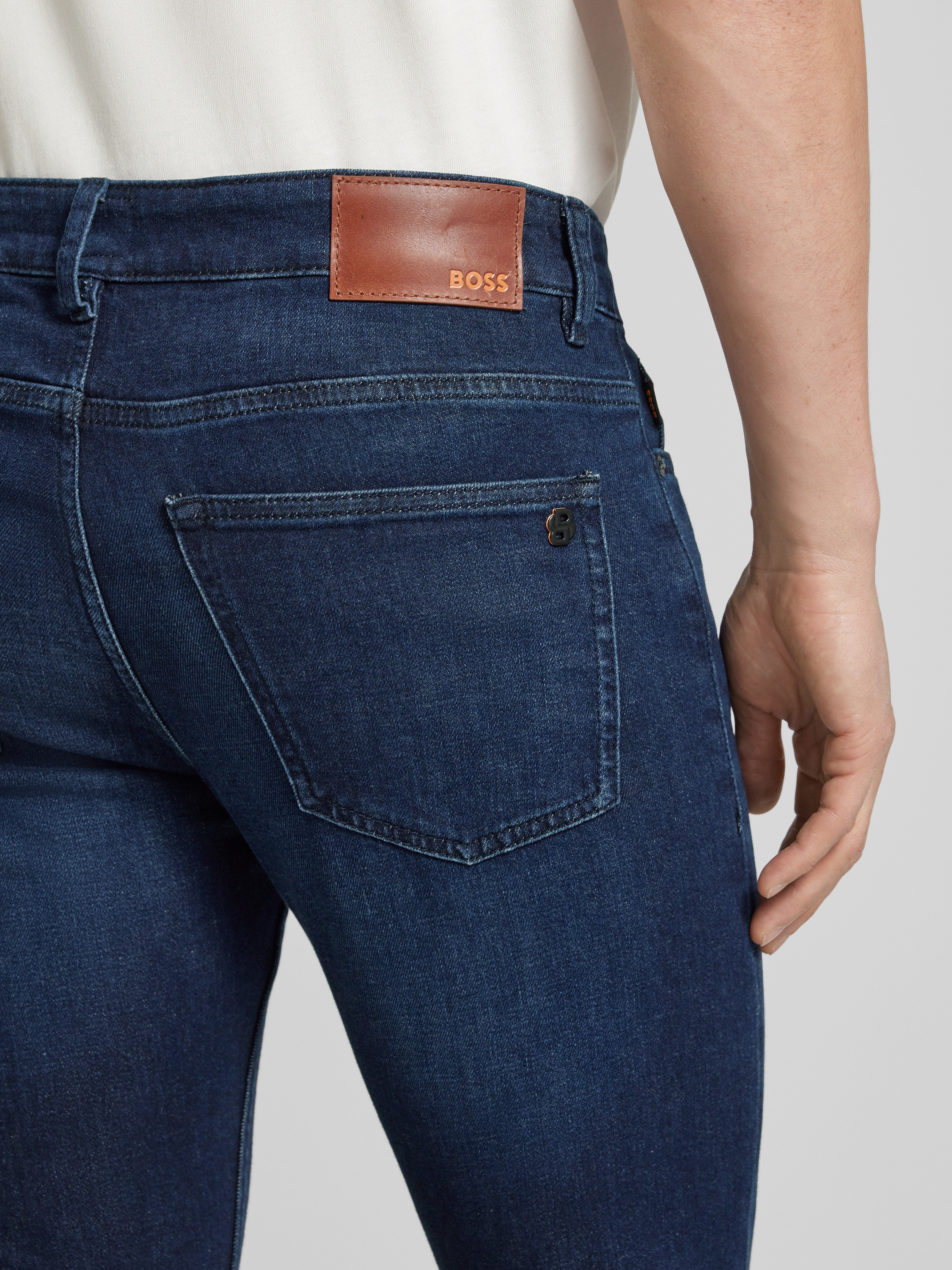 Die Slim Fit Jeans von BOSS Orange, Modell 'DELAWARE', besteht aus einem Baumwoll-Elasthan-Mix, der sich angenehm an den Körper anpasst und Bewegungsfreiheit ermöglicht. Das klassische 5-Pocket-Design wird durch ein dezentes Label-Detail ergänzt und eignet sich ideal für vielseitige Alltagskombinationen.