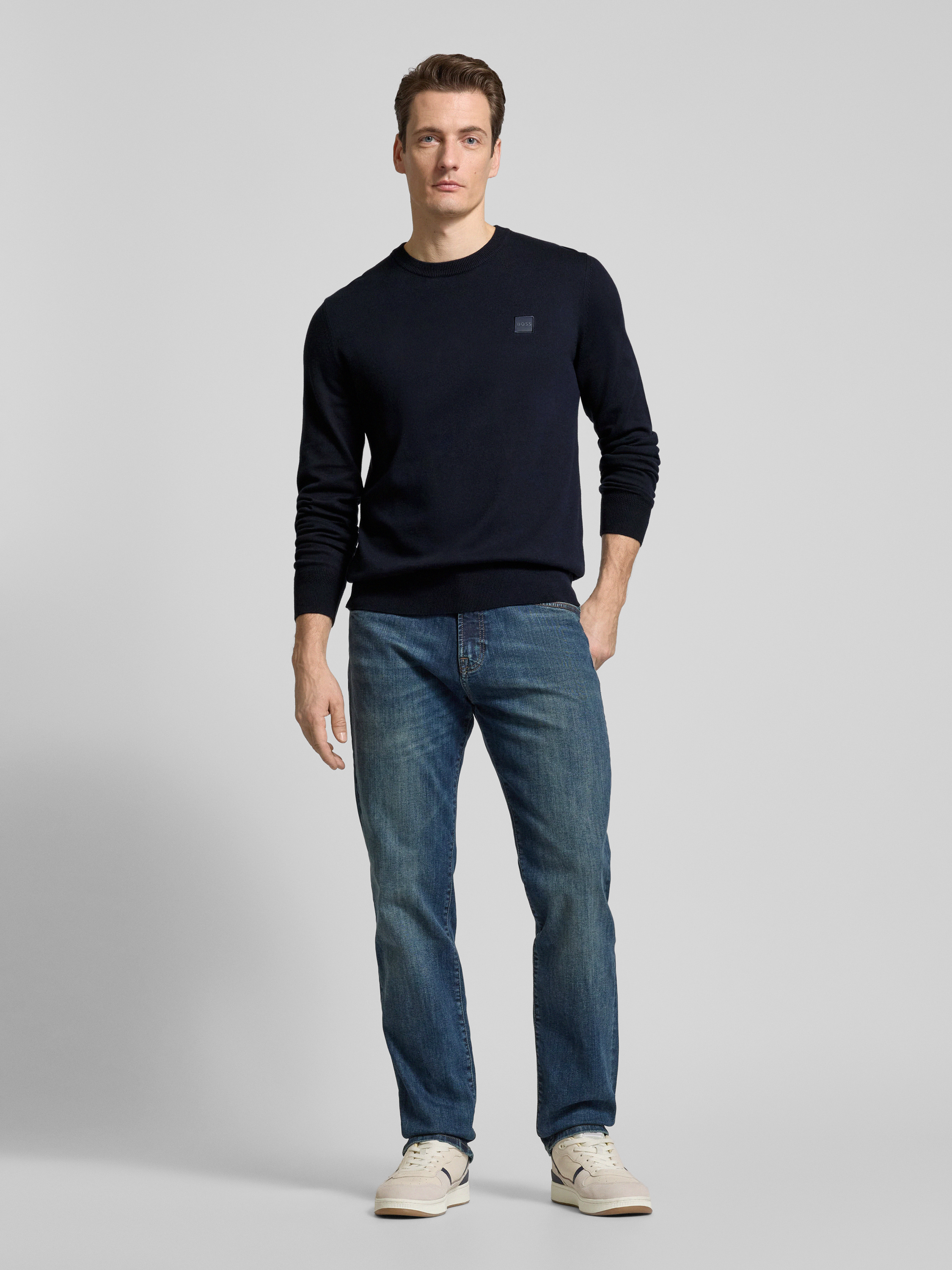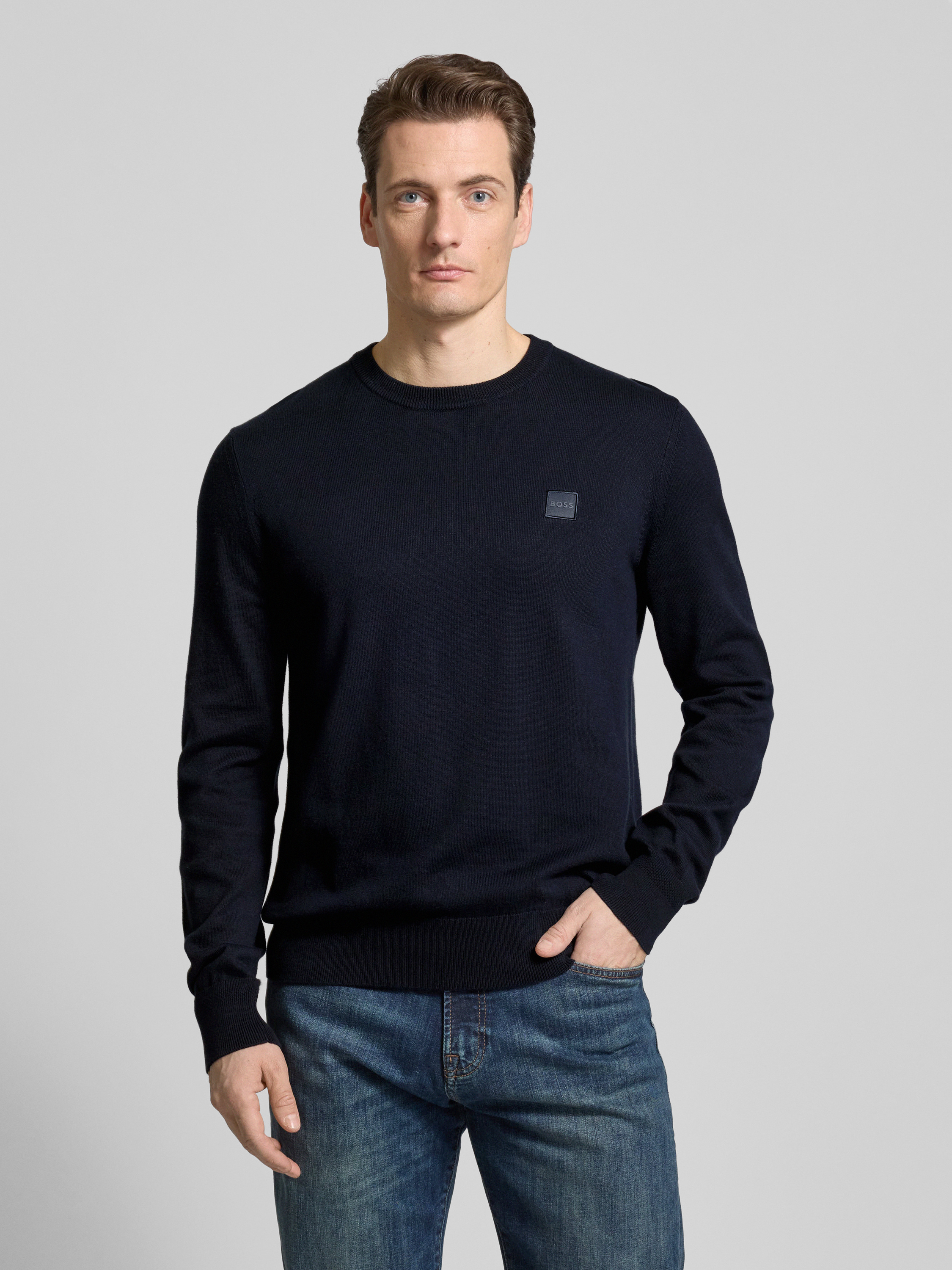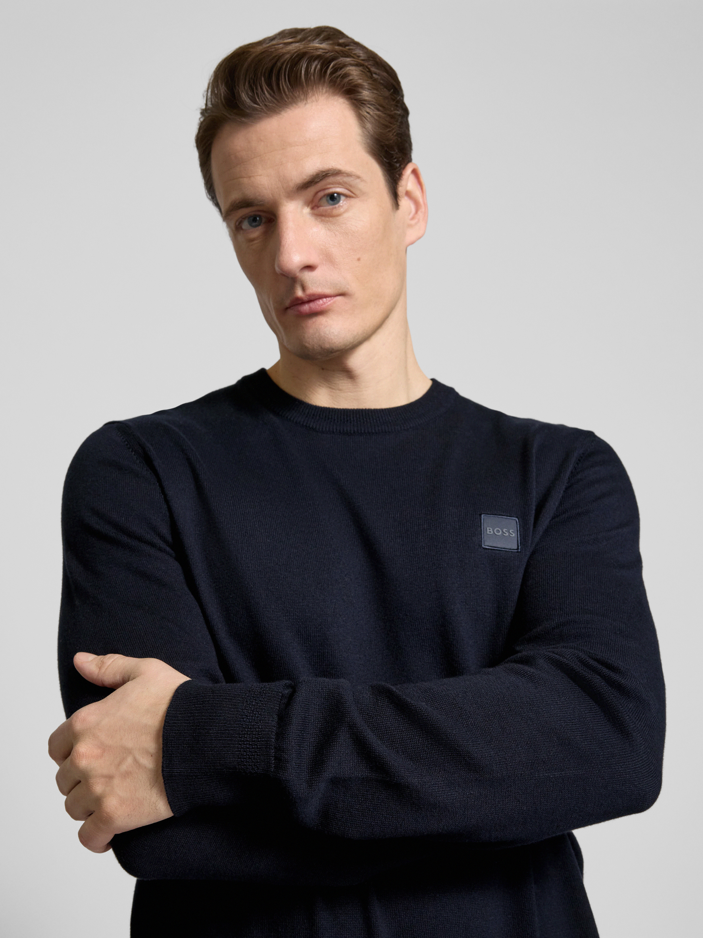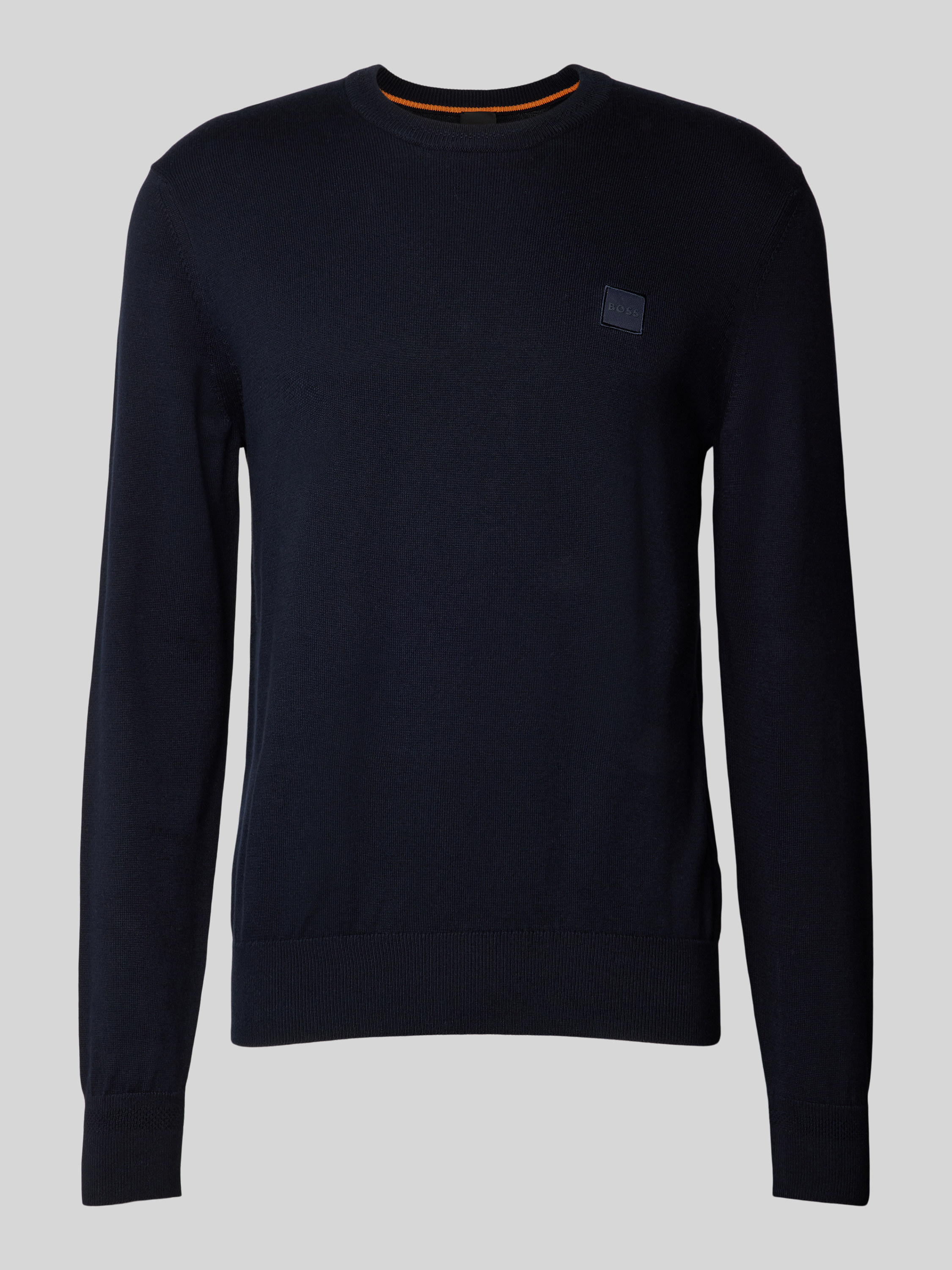 Der Strickpullover von BOSS Orange, Modell 'Kanovano', vereint die angenehme Weichheit von Kaschmir mit der Strapazierfähigkeit von Baumwolle. Mit seinem geraden Schnitt und dem gerippten Rundhalsausschnitt passt er sich mühelos in jede Garderobe ein. Ein dezenter Label-Patch rundet das Design ab.
