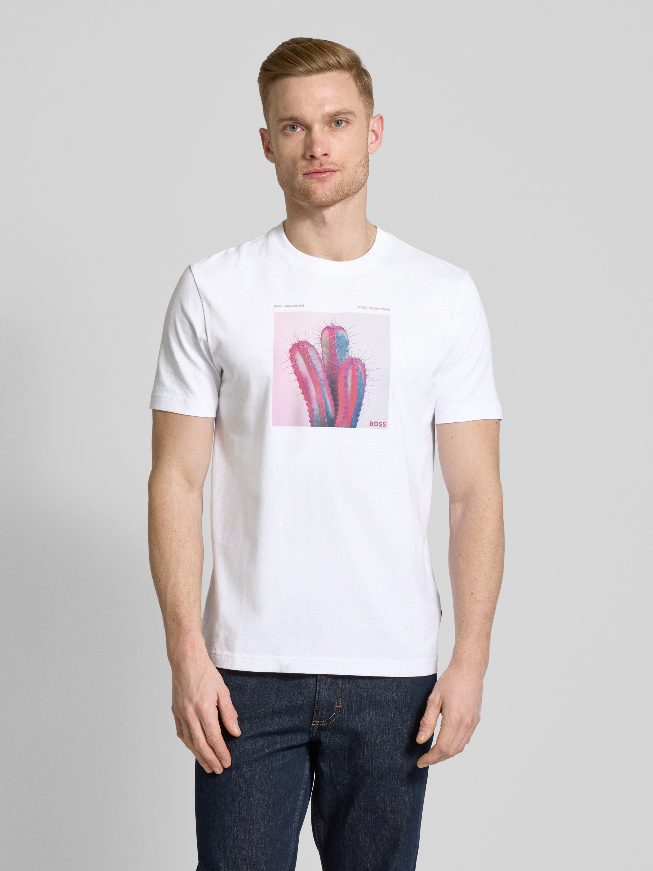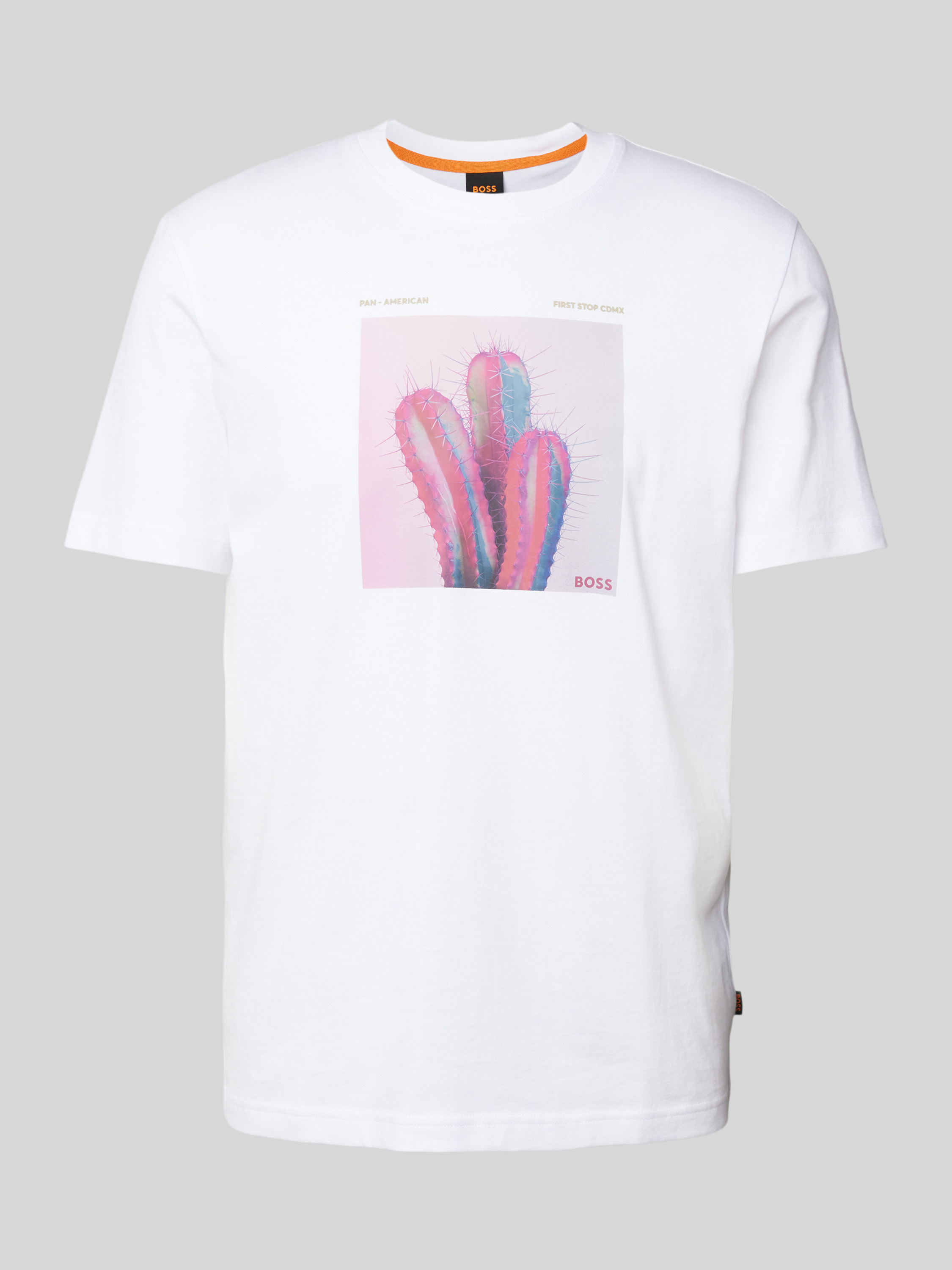Das Herren T-Shirt von BOSS Orange, Modell 'mextour', vereint lässigen Stil mit Komfort. Aus reiner Baumwolle gefertigt, bietet es ein angenehmes Tragegefühl, während der Regular Fit für eine entspannte Passform sorgt. Der Label-Print verleiht dem Shirt eine dezente, modische Note.