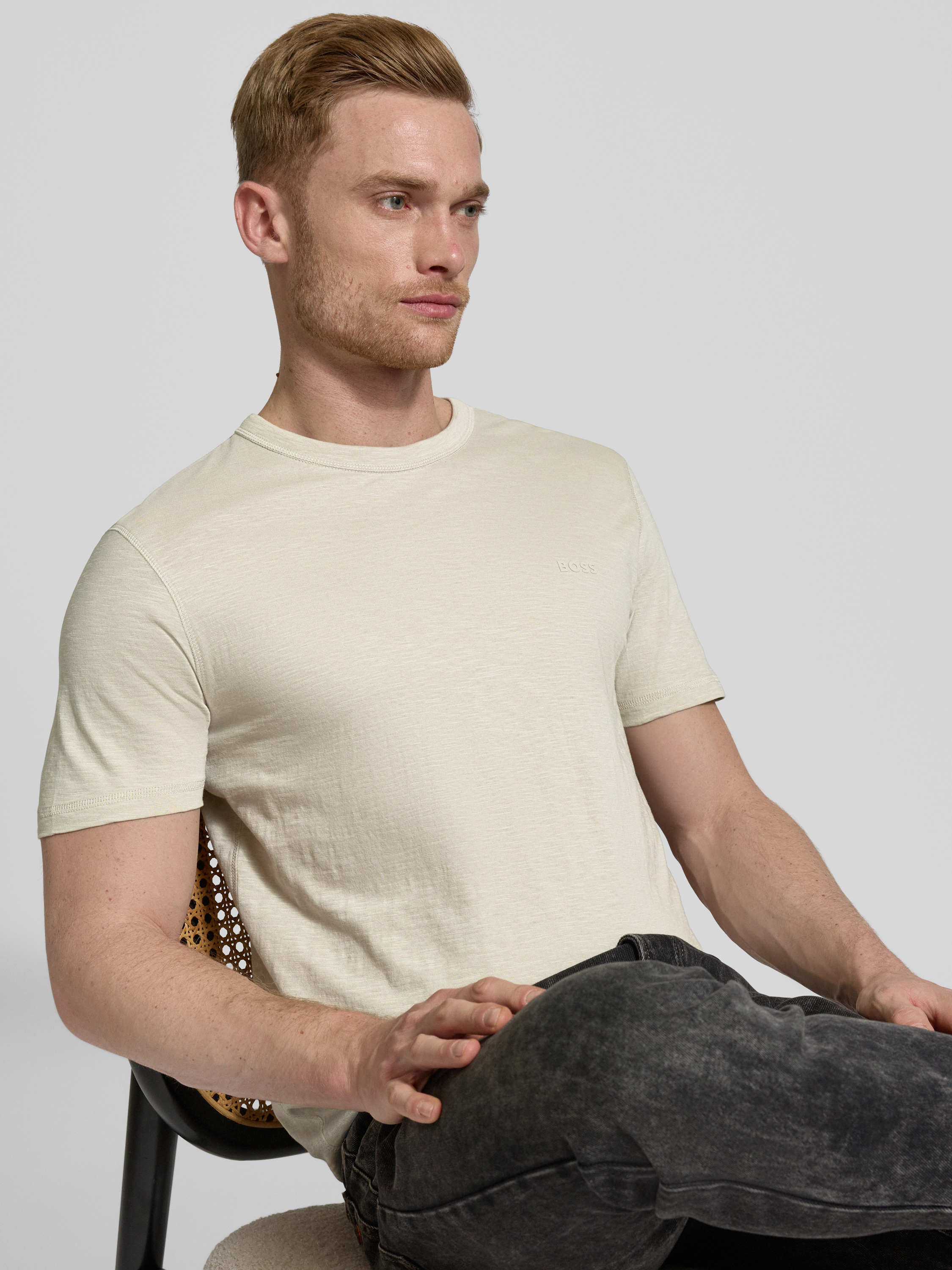 BOSS OrangeT-Shirt mit Label-Print Modell 'Tegood' in beige