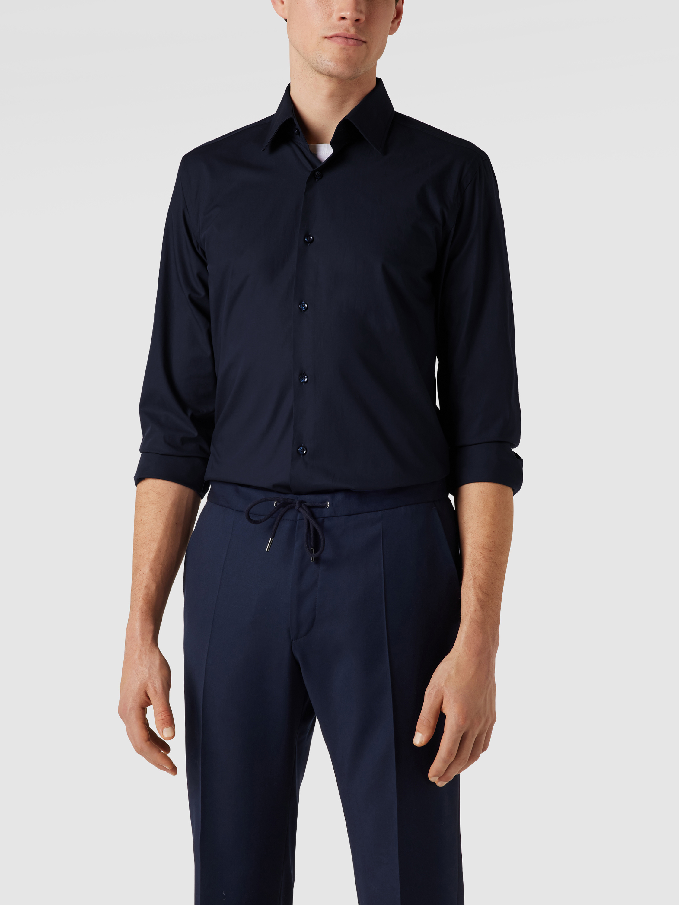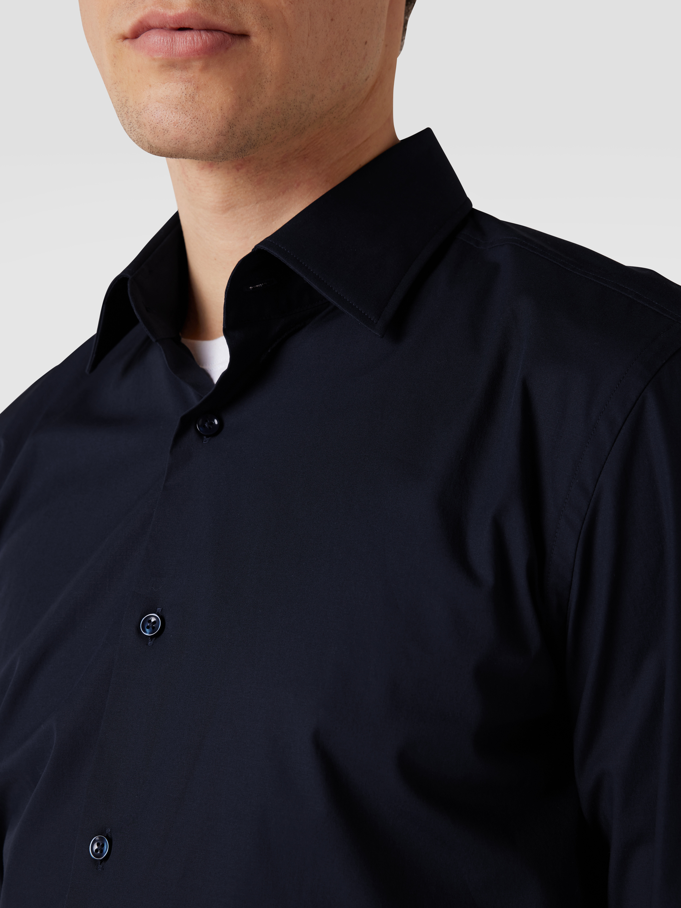 BOSSSlim Fit Businesshemd aus Popeline mit Stretch-Anteil in marine