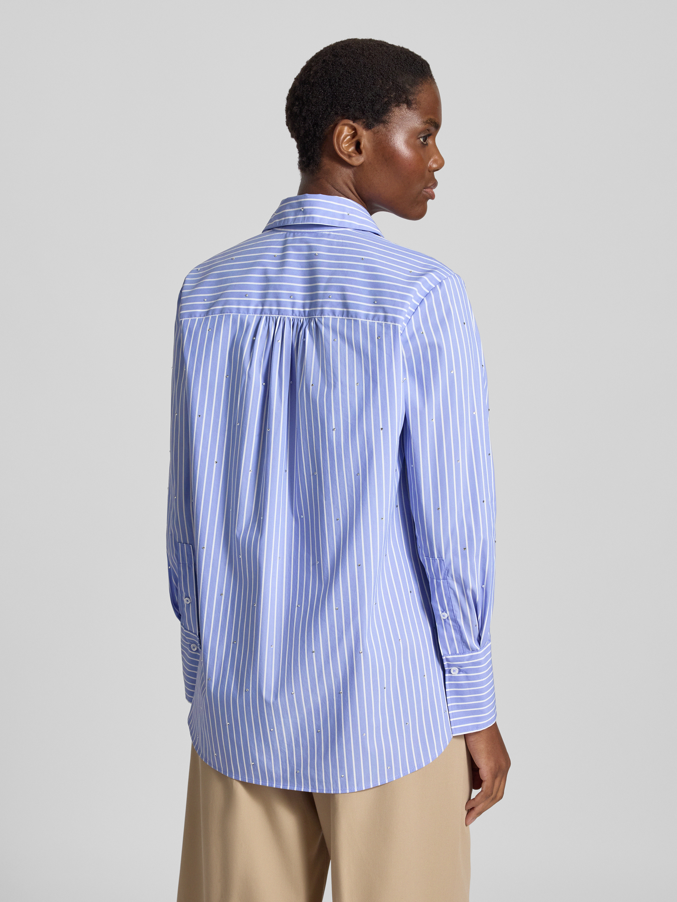 Die Hemdbluse VIKI von Brax kombiniert einen lässigen Schnitt mit einem eleganten Hemdblusenkragen und bietet durch den Baumwoll-Mix mit Stretch-Anteil ein angenehmes Tragegefühl. Der dezente Ziersteinbesatz verleiht dem Modell eine subtile Raffinesse, während die verdeckte Knopfleiste für ein klares Erscheinungsbild sorgt. Ideal für alle, die Komfort und Stil mühelos verbinden möchten.