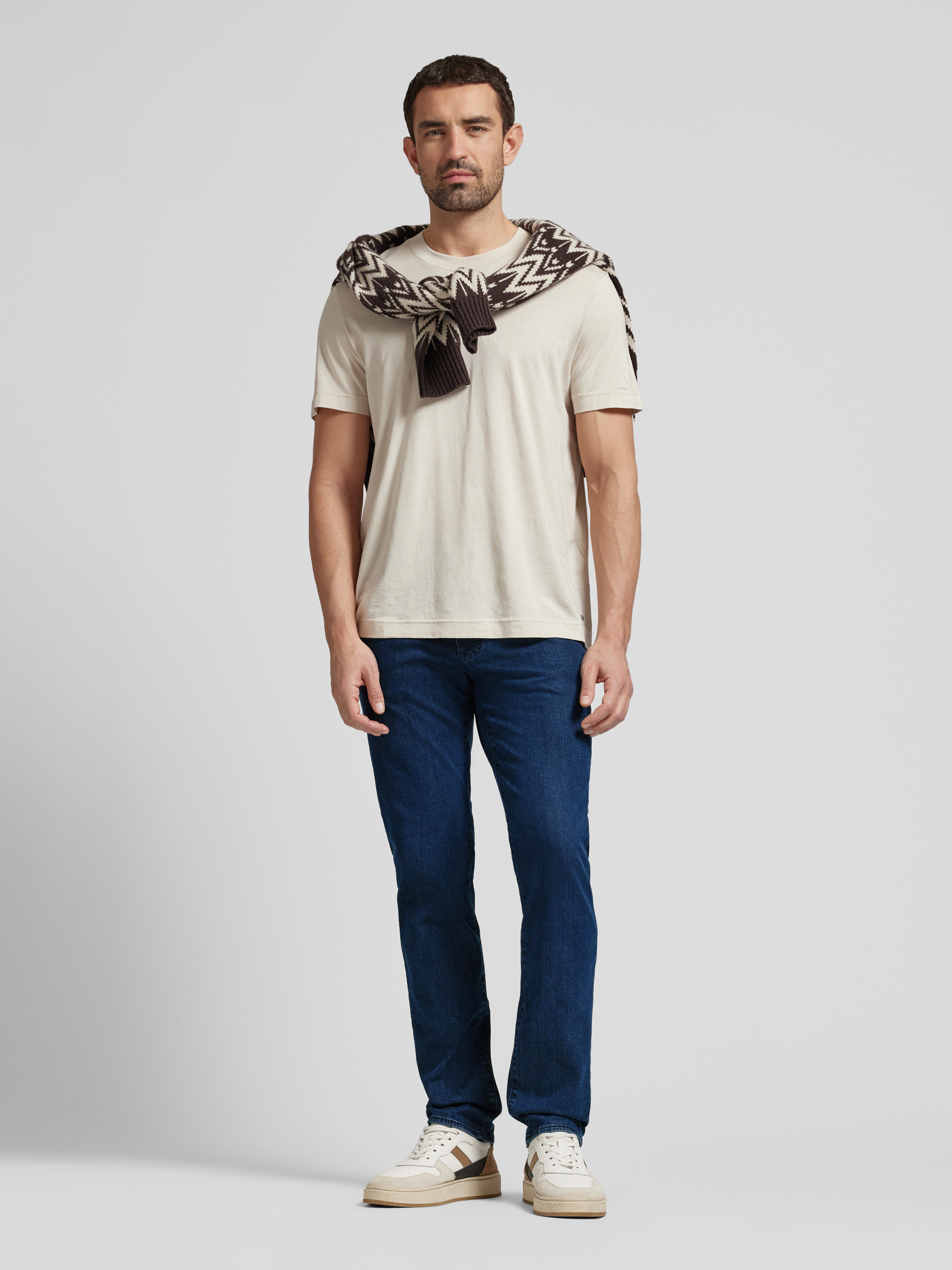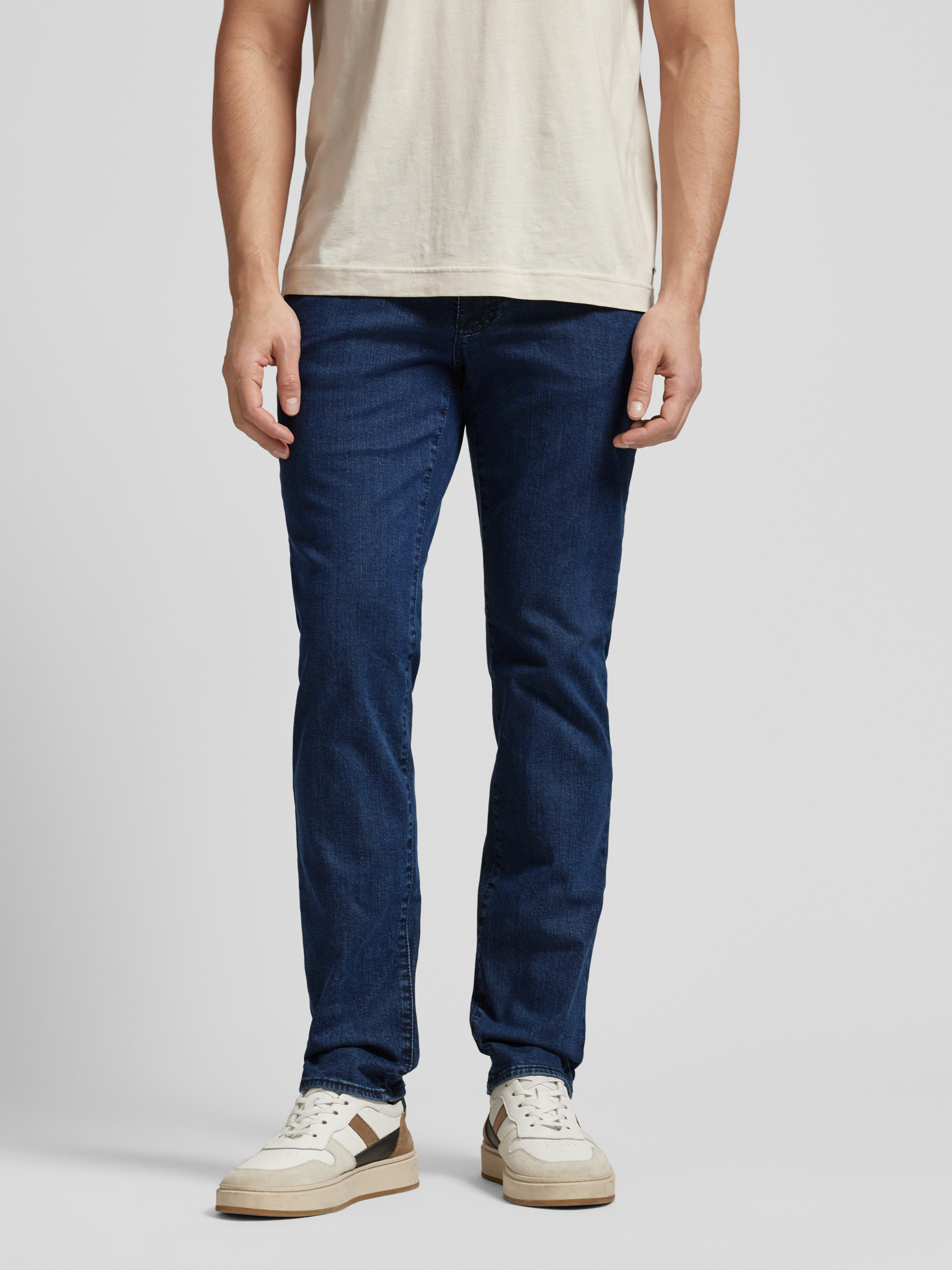 Die Herren Jeans von BRAX, Modell 'CADIZ', kombiniert einen Baumwoll-Lyocell-Mix mit Modal-Anteil, um optimalen Komfort zu gewährleisten. Der gerade Schnitt sorgt für eine zeitlose Silhouette, während das klassische 5-Pocket-Design praktische Funktionalität bietet. Das dezente Label-Detail rundet den Look stimmig ab.