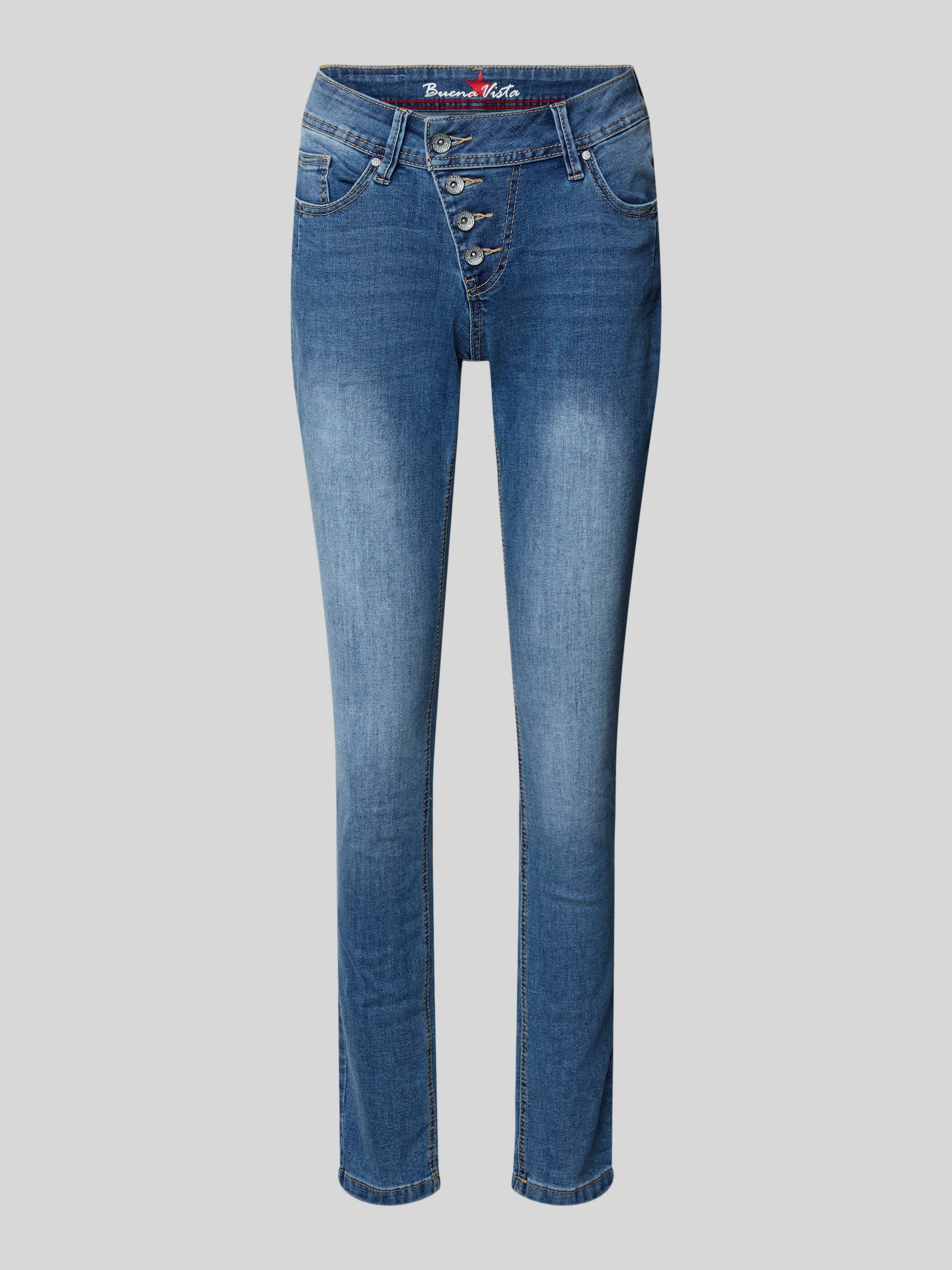 Die Damen Jeans von Buena Vista im Modell 'Malibu' überzeugt durch ihren körpernahen Schnitt, der Bewegungsfreiheit ermöglicht und die Figur angenehm betont. Der Baumwoll-Mix mit Viskose-Anteil fühlt sich weich an und passt sich angenehm an. Das klassische 5-Pocket-Design macht die Straight Fit Jeans vielseitig kombinierbar.