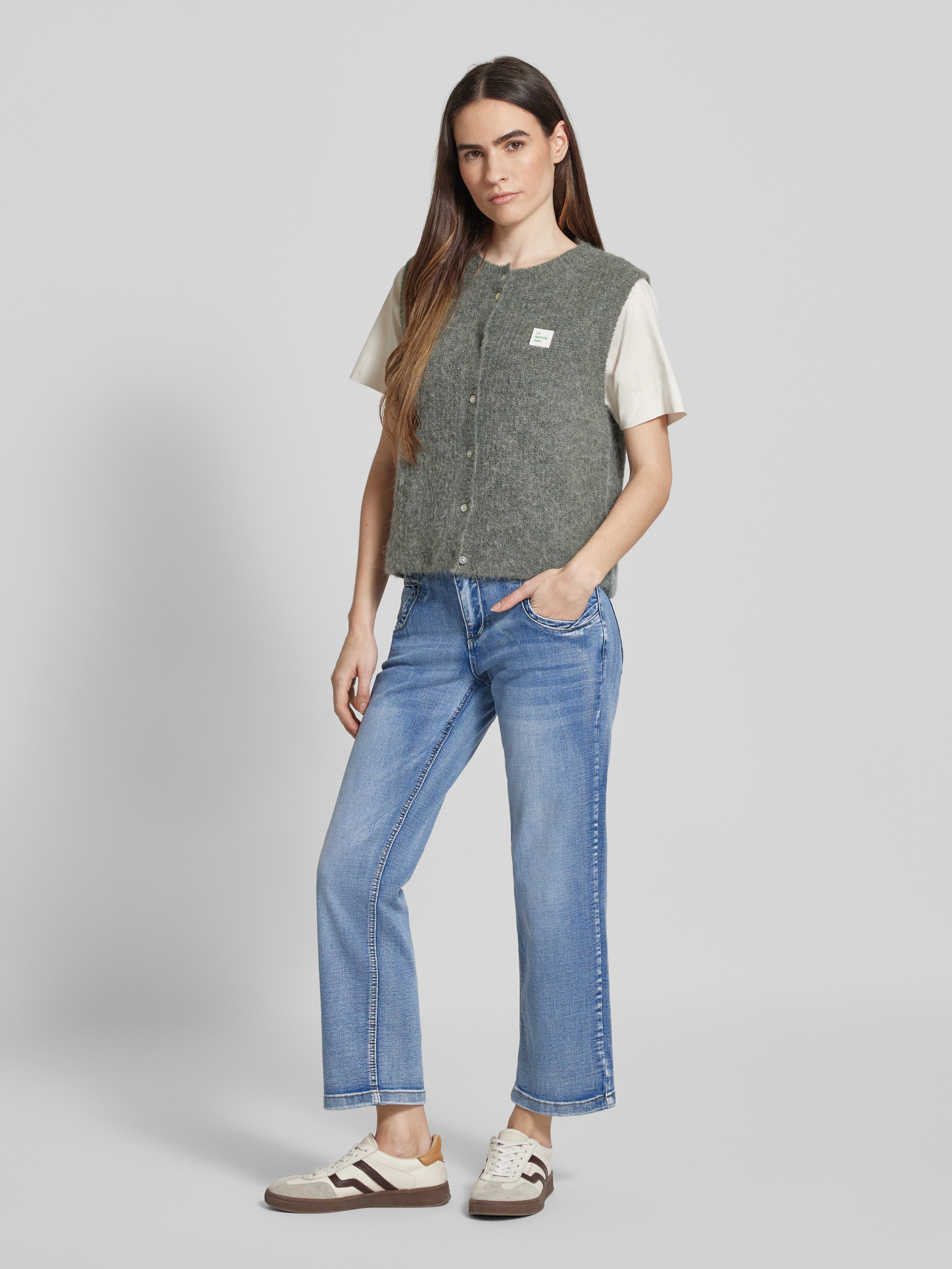 Die Straight Fit Jeans von Buena Vista, Modell 'Anna', vereint durch den Baumwoll-Viskose-Mix angenehmen Tragekomfort mit einer klassischen Passform. Die verkürzte Länge verleiht jedem Outfit eine moderne Note, während Eingrifftaschen praktische Details für den Alltag bieten. Ideal für vielseitige Kombinationen.