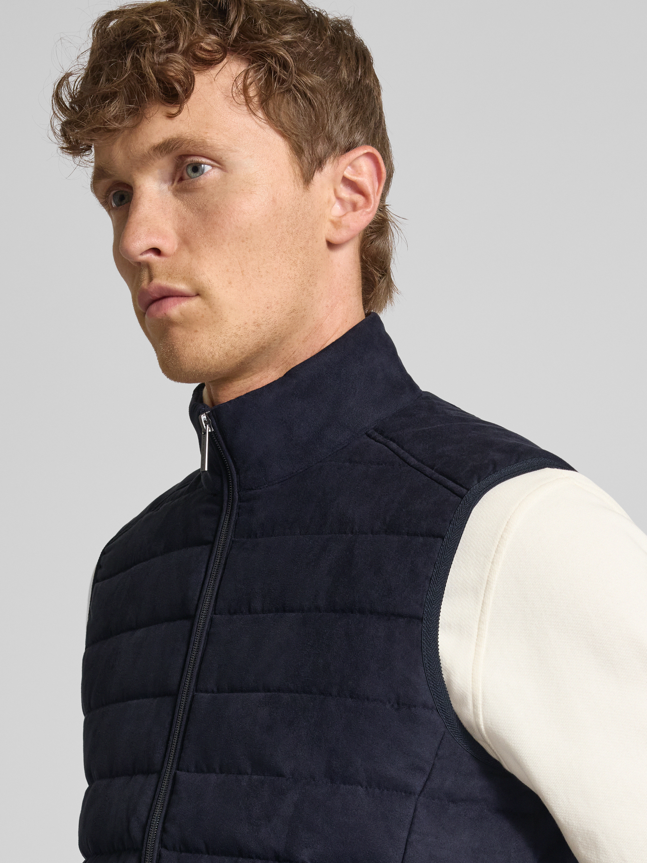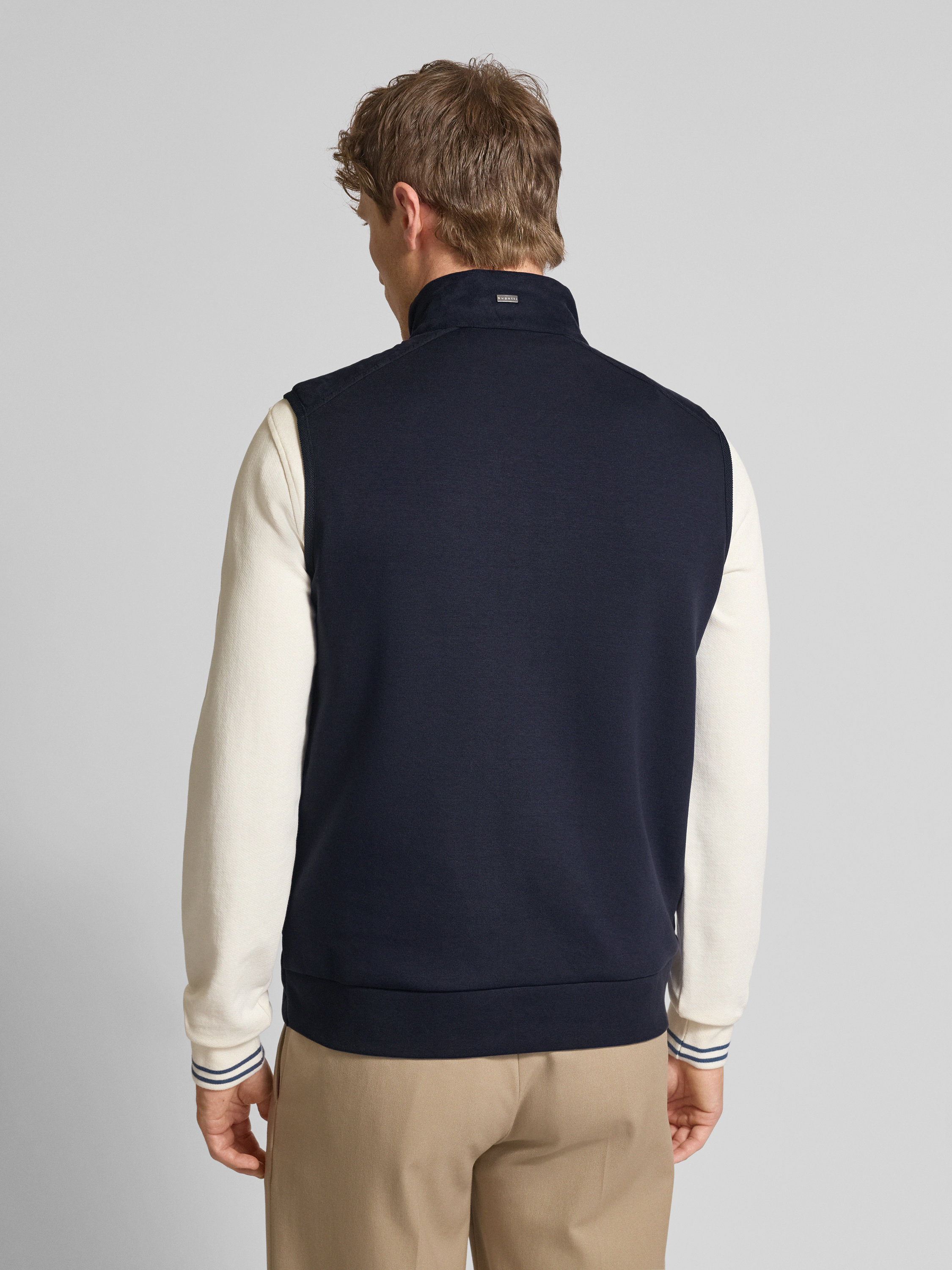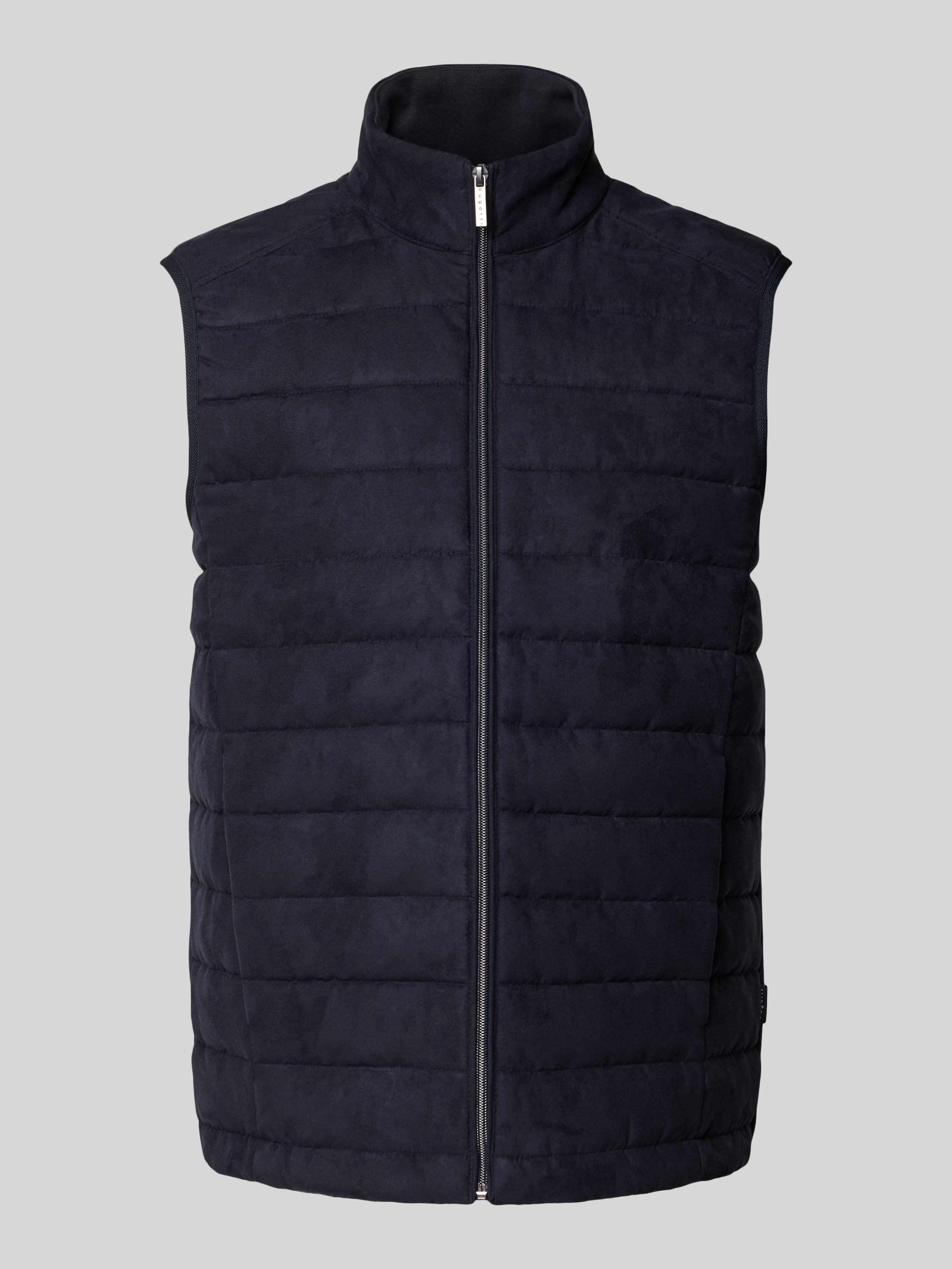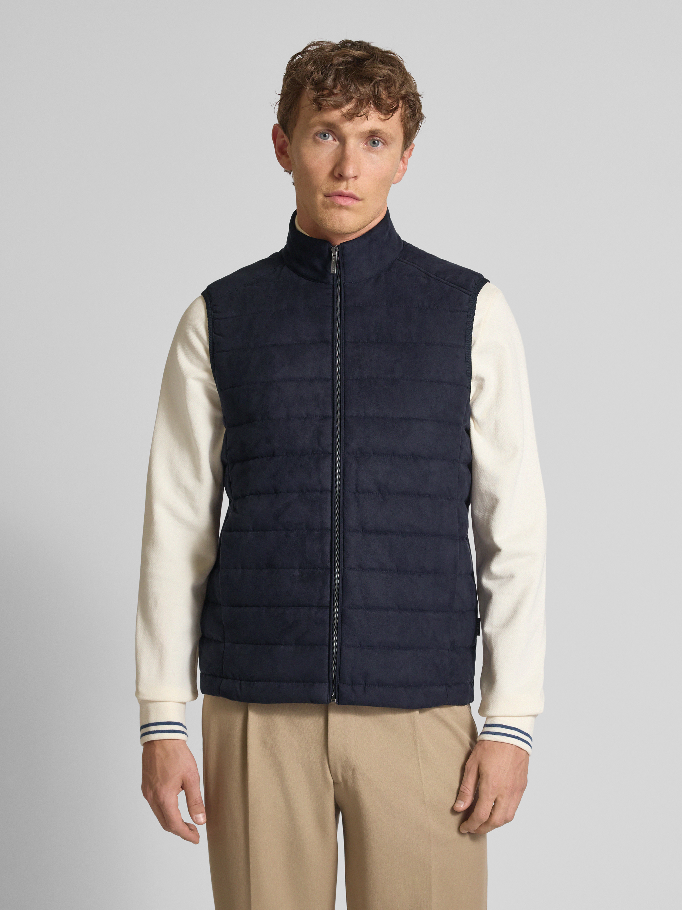 Die Steppweste von bugatti, aus einem elastischen Baumwoll-Mix gefertigt, vereint Komfort und Stil. Der Regular Fit und der Stehkragen verleihen ein lässiges Aussehen, während die Stepp-Optik einen modernen Touch hinzufügt. Ideal für vielseitige und unkomplizierte Outfits.