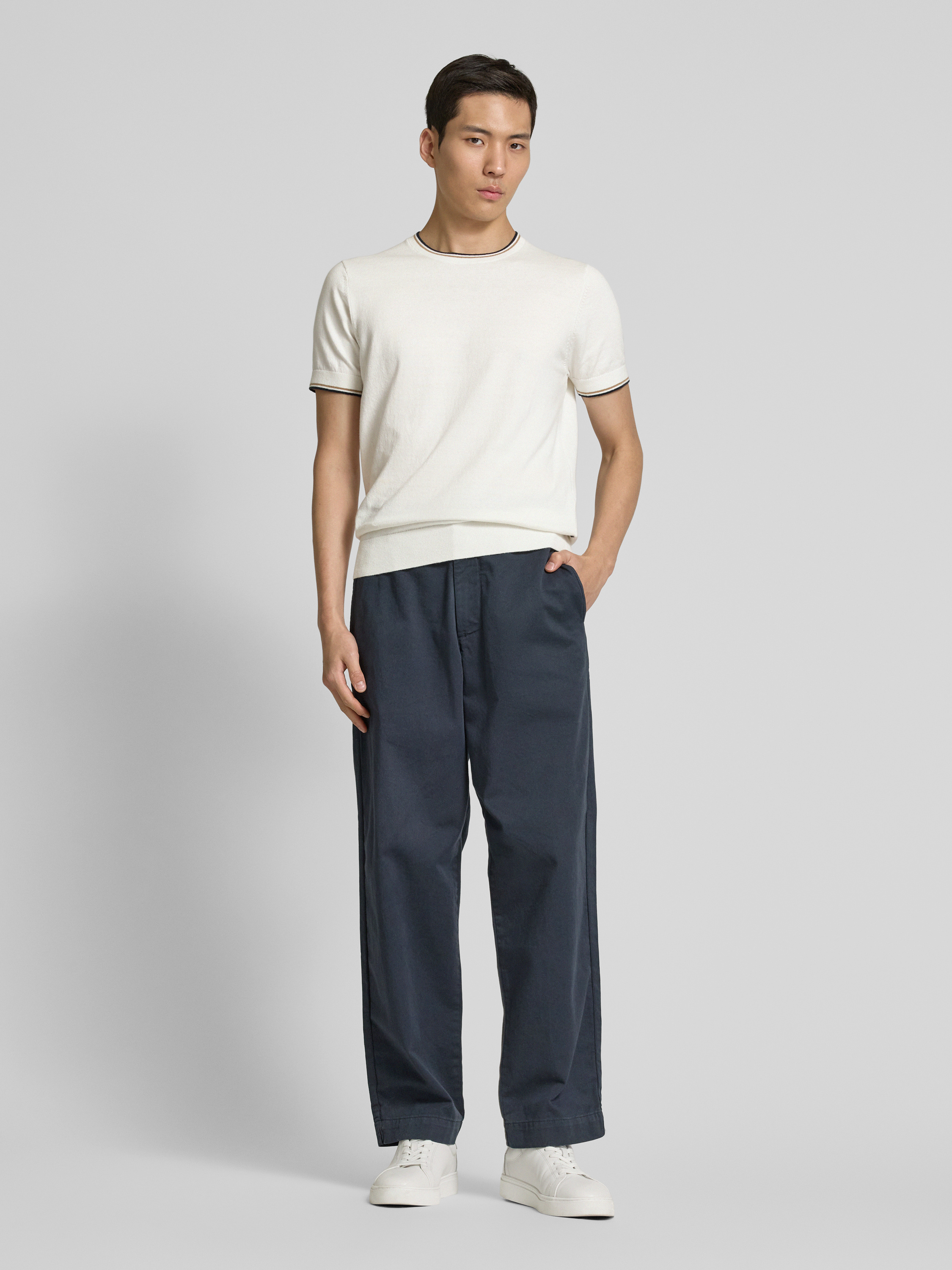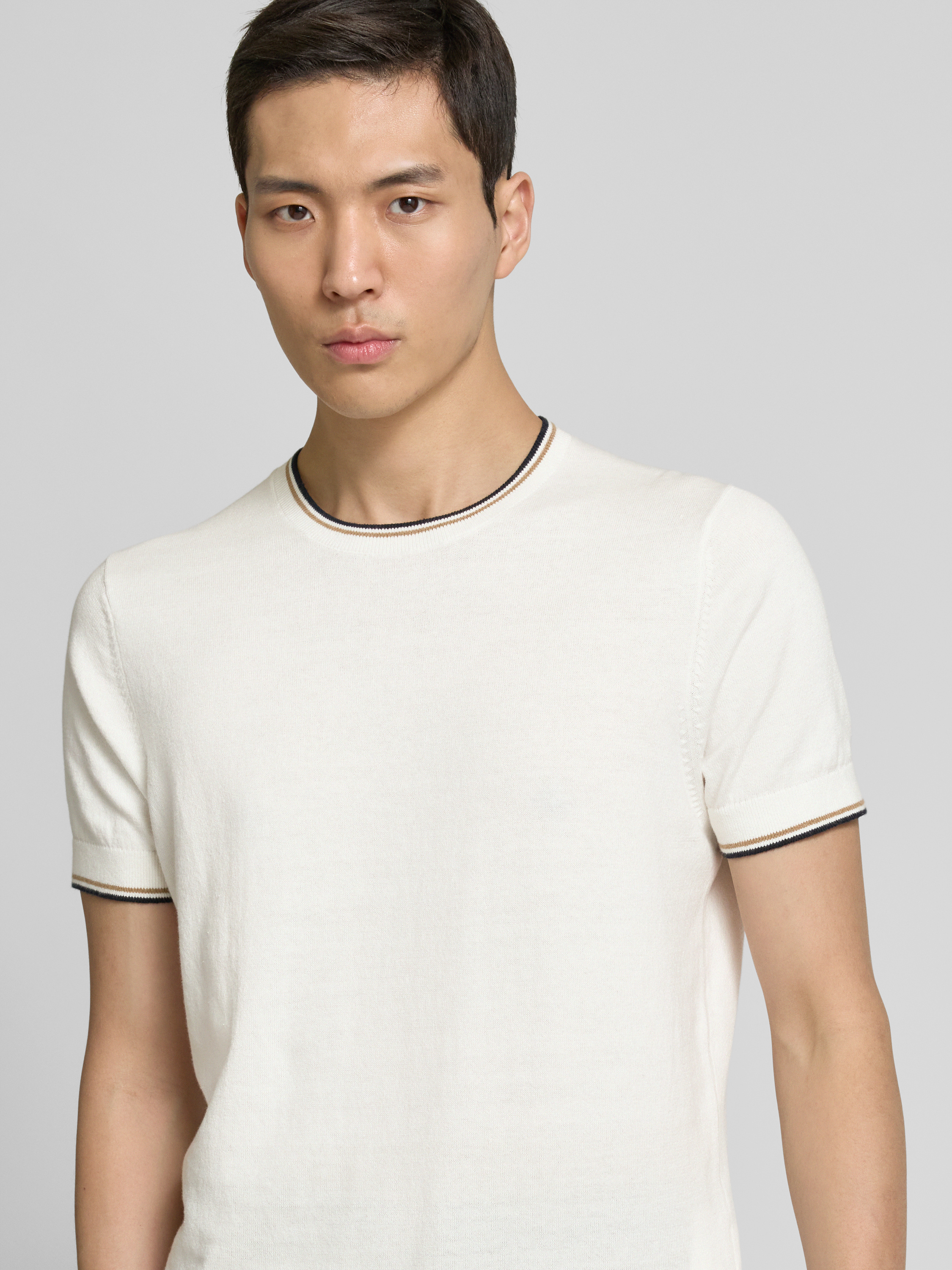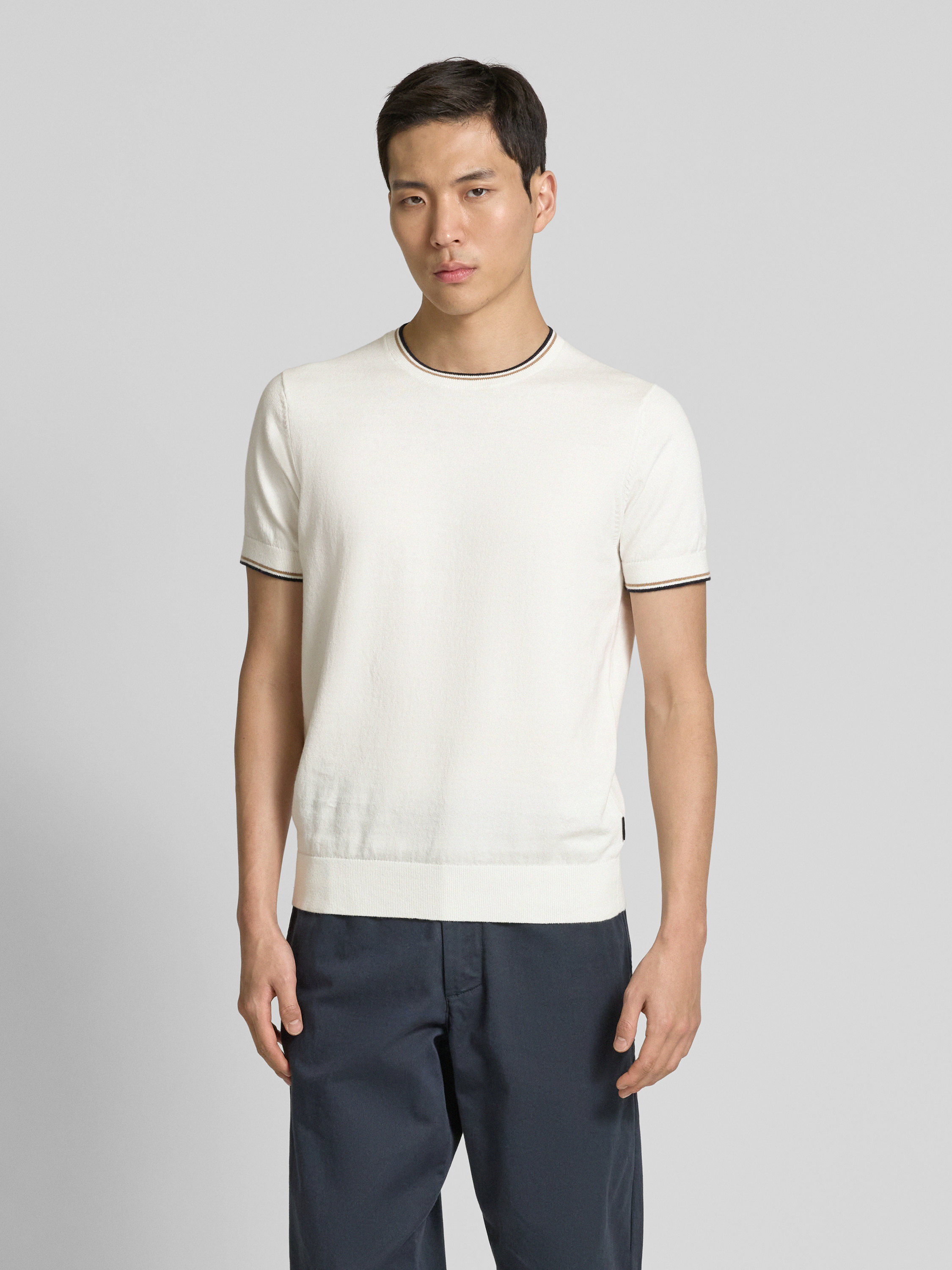 Das Herren T-Shirt von bugatti kombiniert reine Baumwolle mit einem lockeren Schnitt, was für angenehmen Tragekomfort sorgt. Der Rundhalsausschnitt und das dezente Label-Detail verleihen dem Shirt eine zeitlose Note. Ideal für entspannte Tage, an denen Bequemlichkeit geschätzt wird.