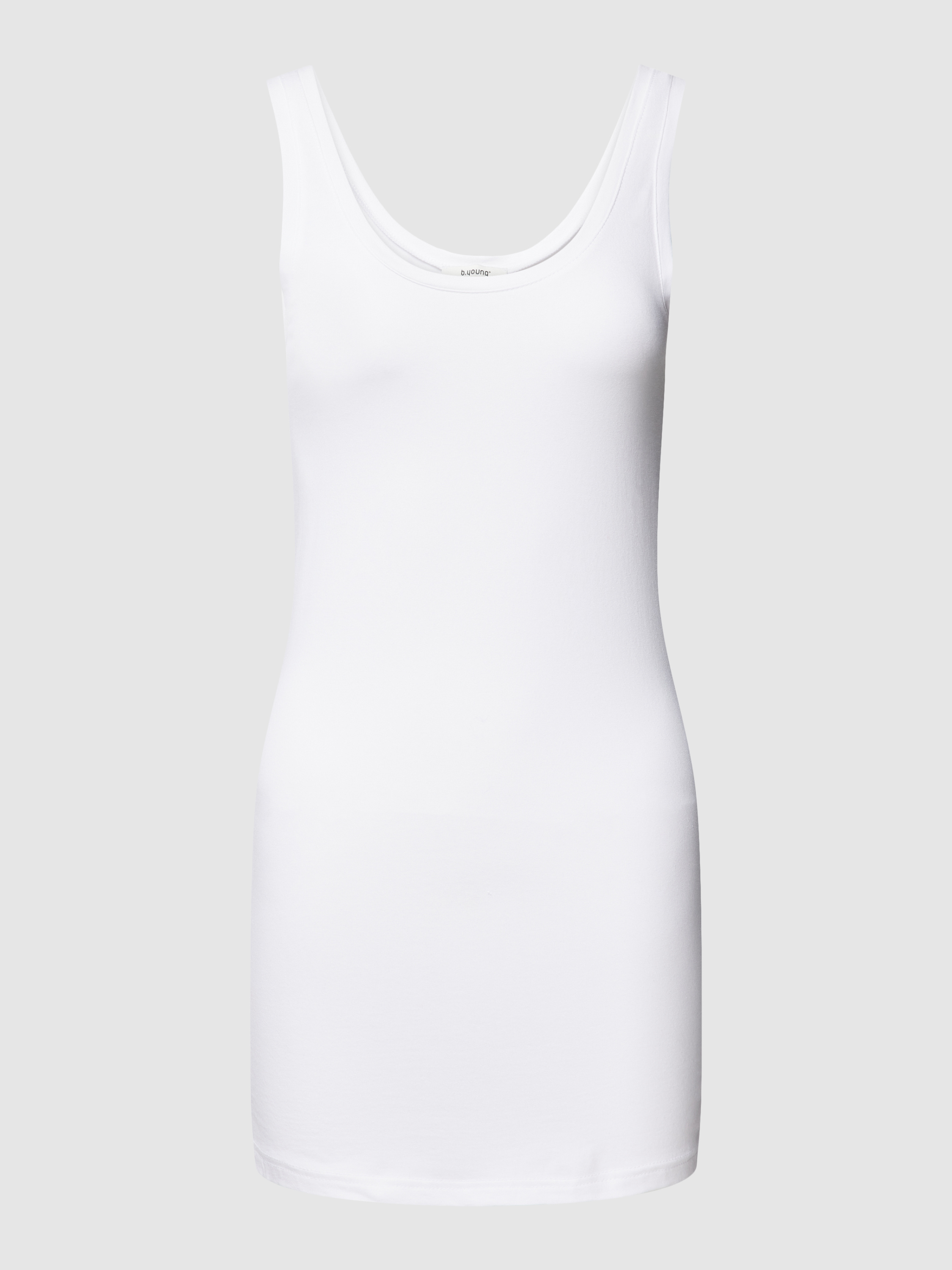 Das Longtop von b.young ist aus einem Baumwoll-Modal-Mix mit Stretch-Anteil gefertigt und kommt in körpernaher Passform. Es zeigt sich in Feinripp-Optik mit Rundhalsausschnitt und breiten Trägern.