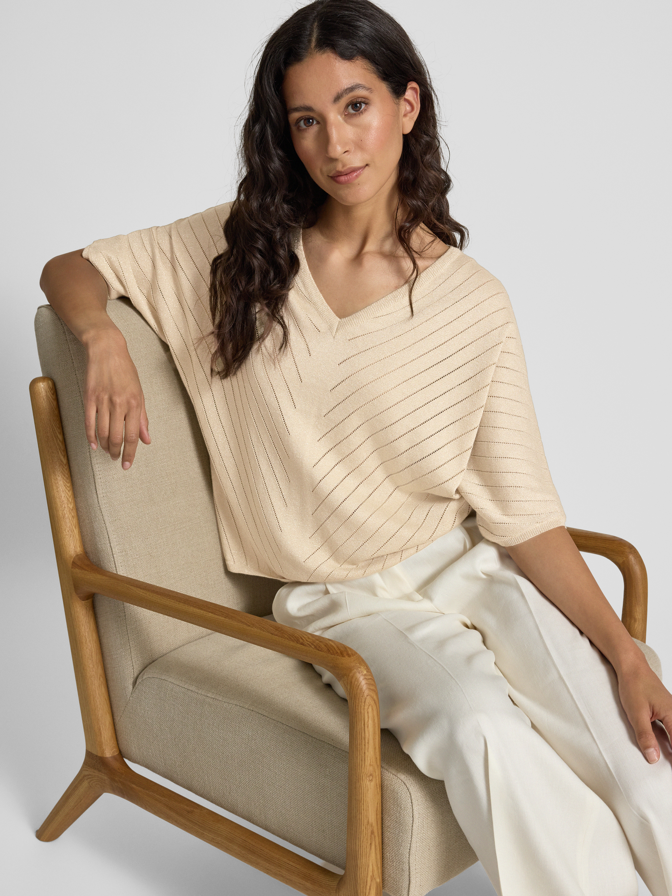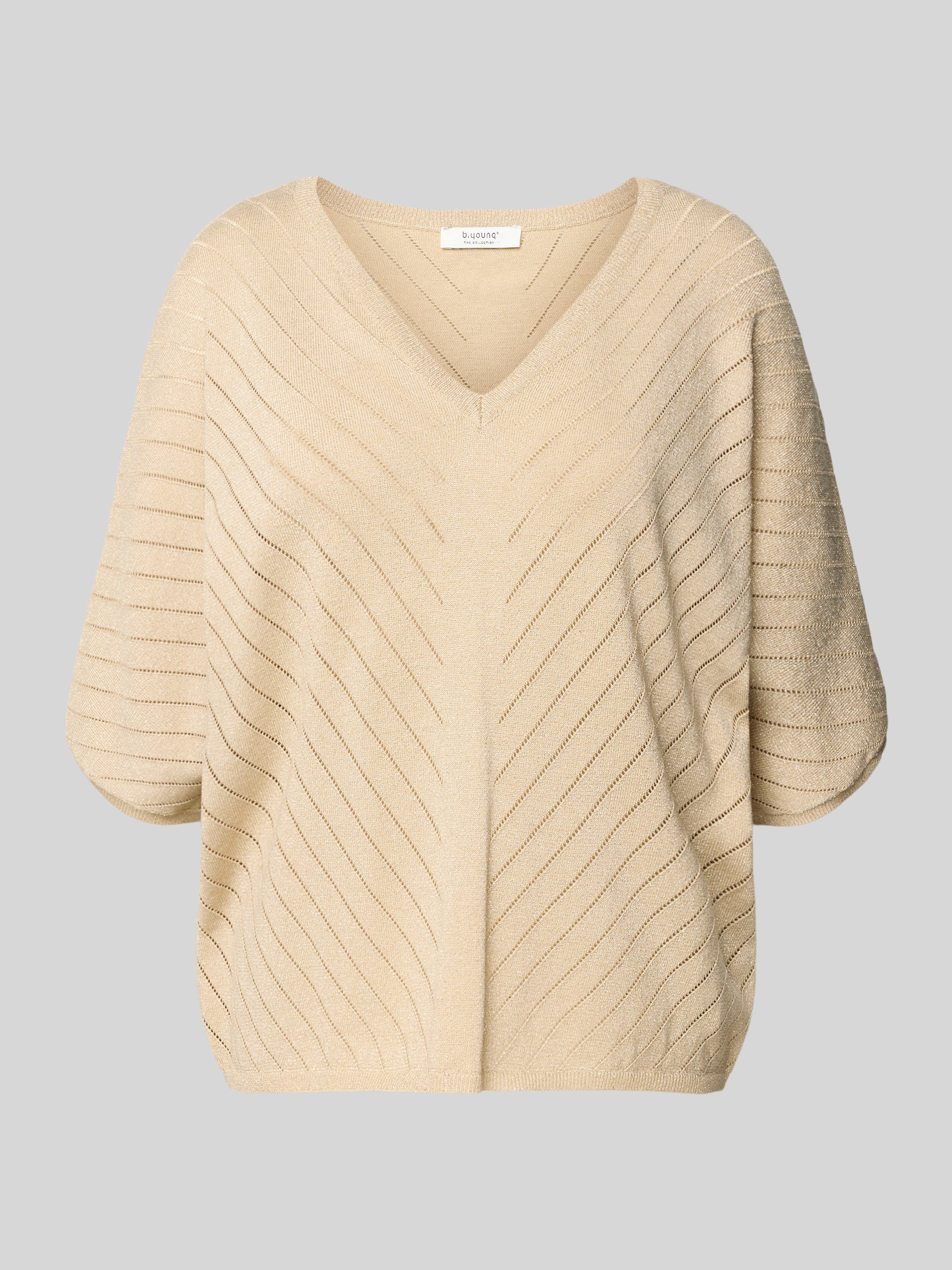 B.YoungStrickshirt aus Effektgarn mit V-Ausschnitt in gold