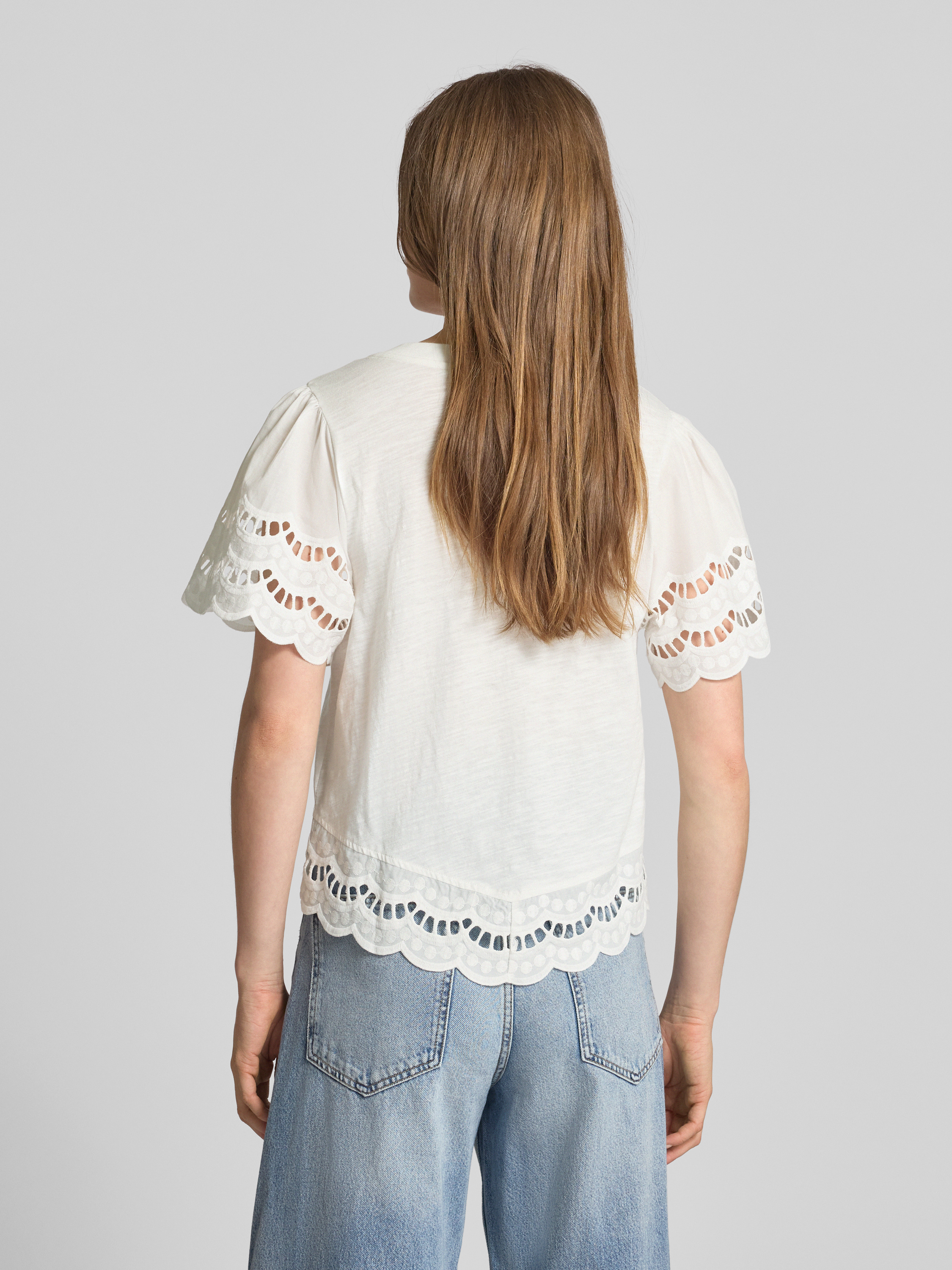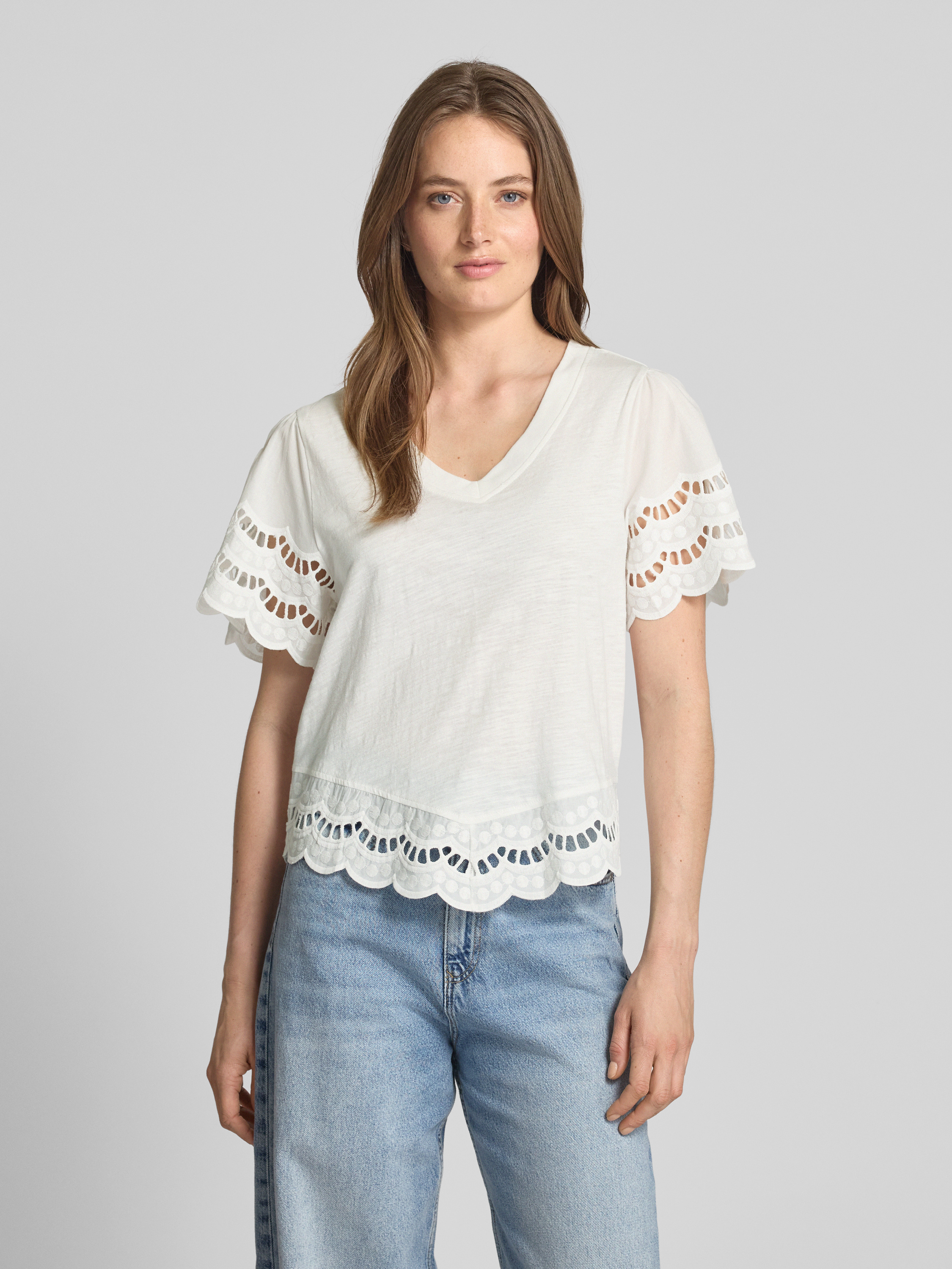 B.YoungT-Shirt mit Lochstickerei Modell 'PALORA' in offwhite
