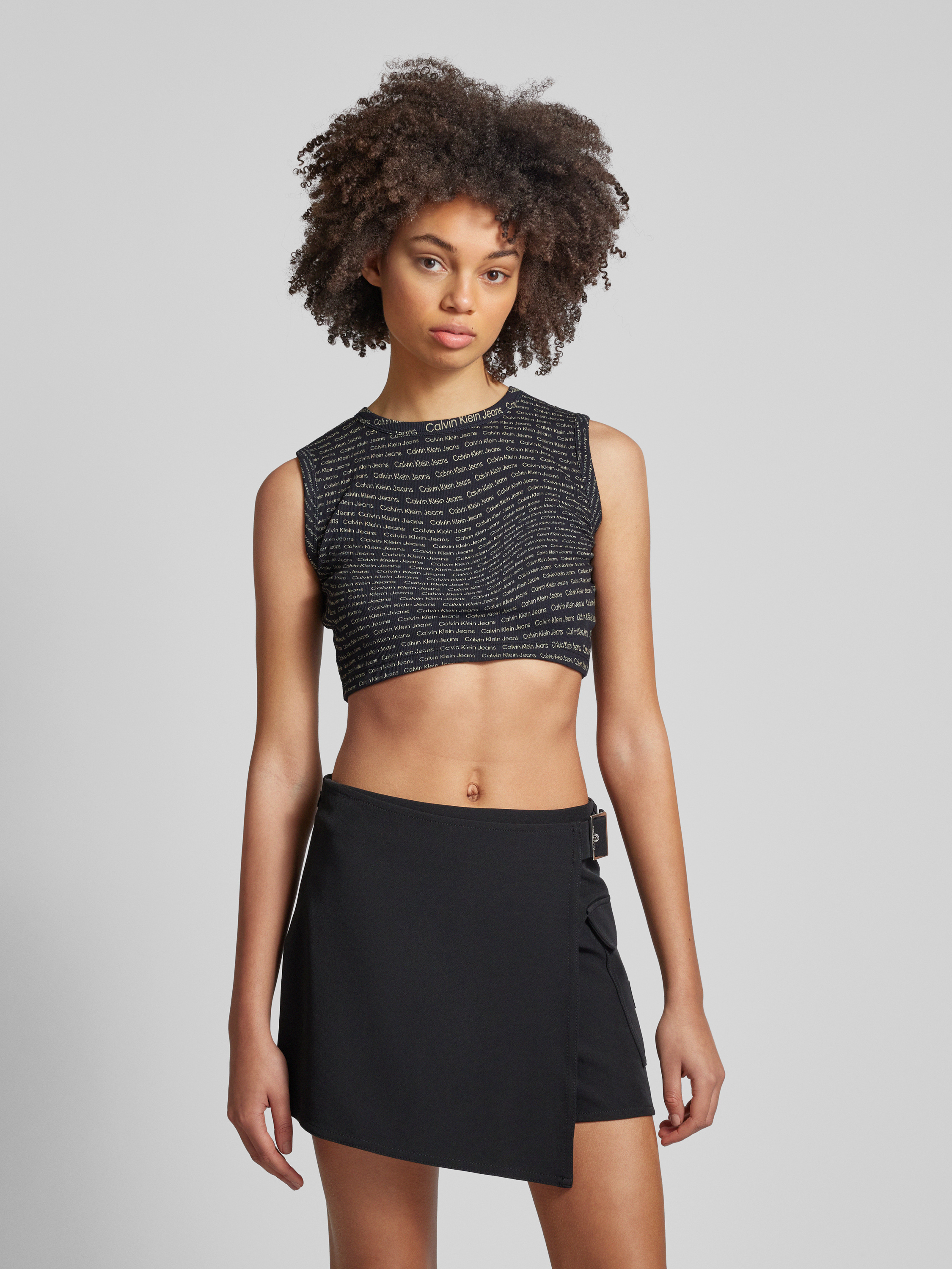 Calvin Klein JeansCrop Top in Ripp-Optik in black