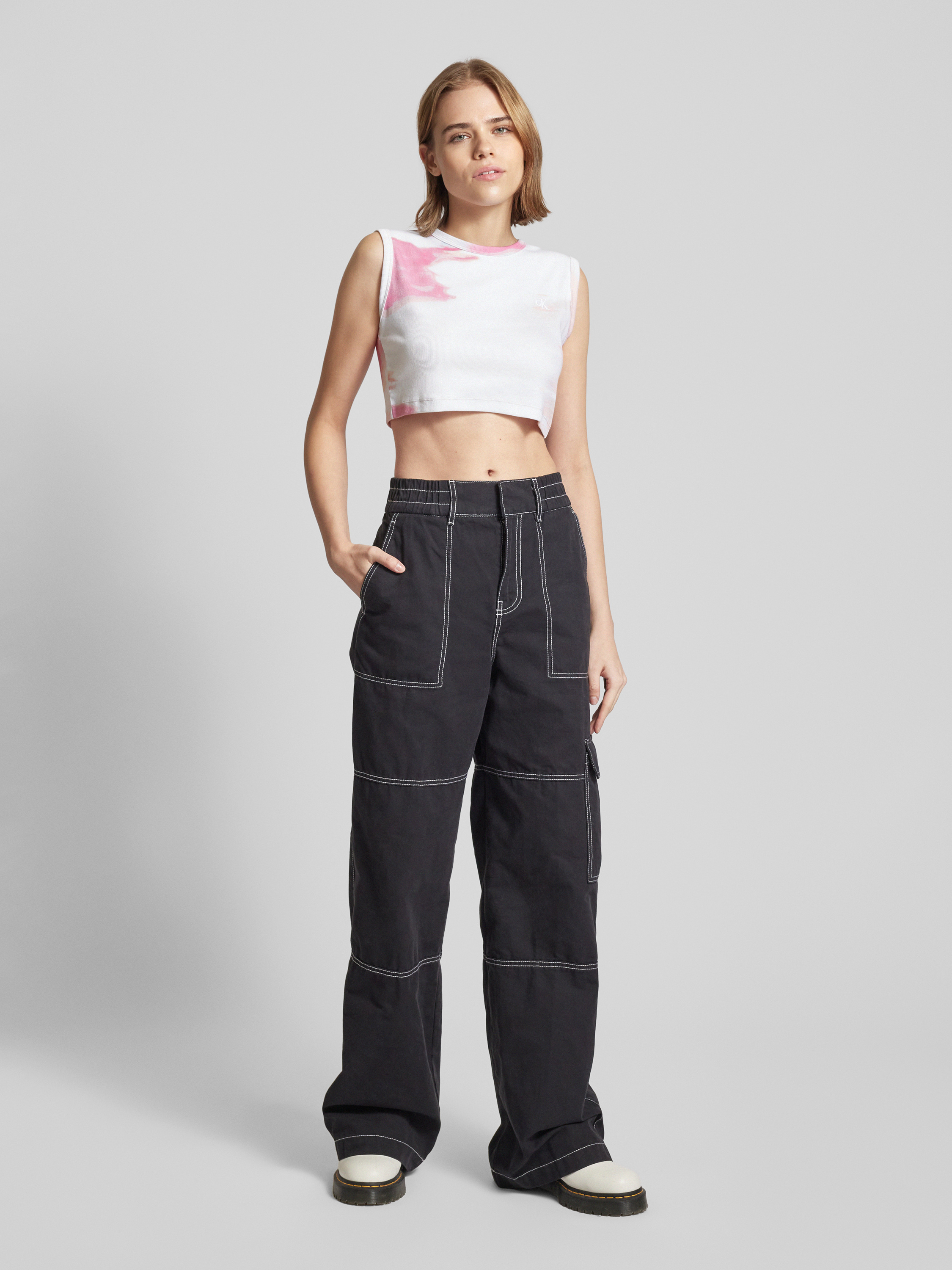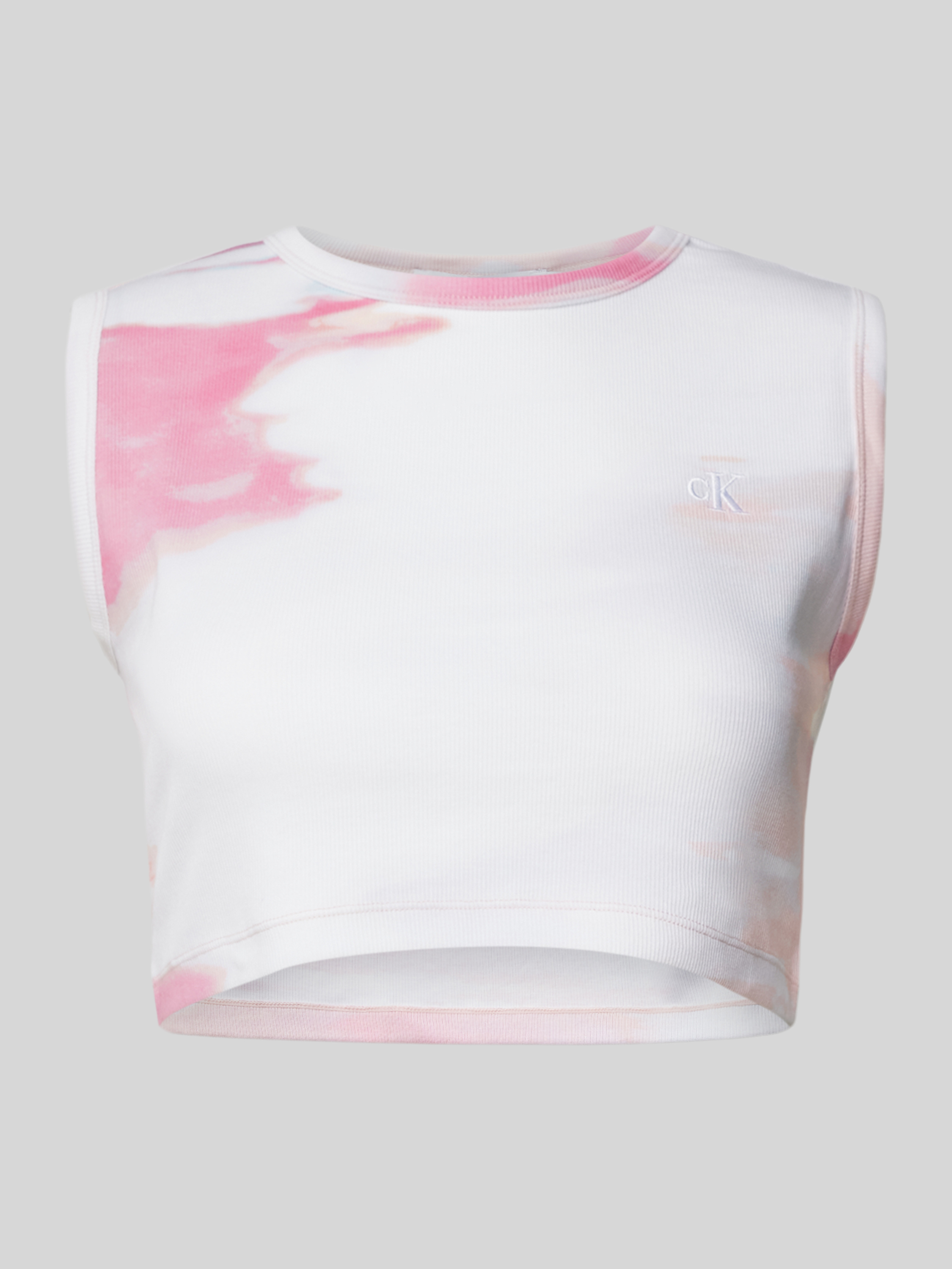 Das Damen Crop Top von Calvin Klein Jeans vereint stilvoll Komfort und modernen Batik-Look. Der gerade Schnitt und der Rundhalsausschnitt sorgen für eine lässige Passform, während der Baumwoll-Elasthan-Mix angenehme Bewegungsfreiheit bietet. Ideal für entspannte Tage oder trendige Kombinationen.