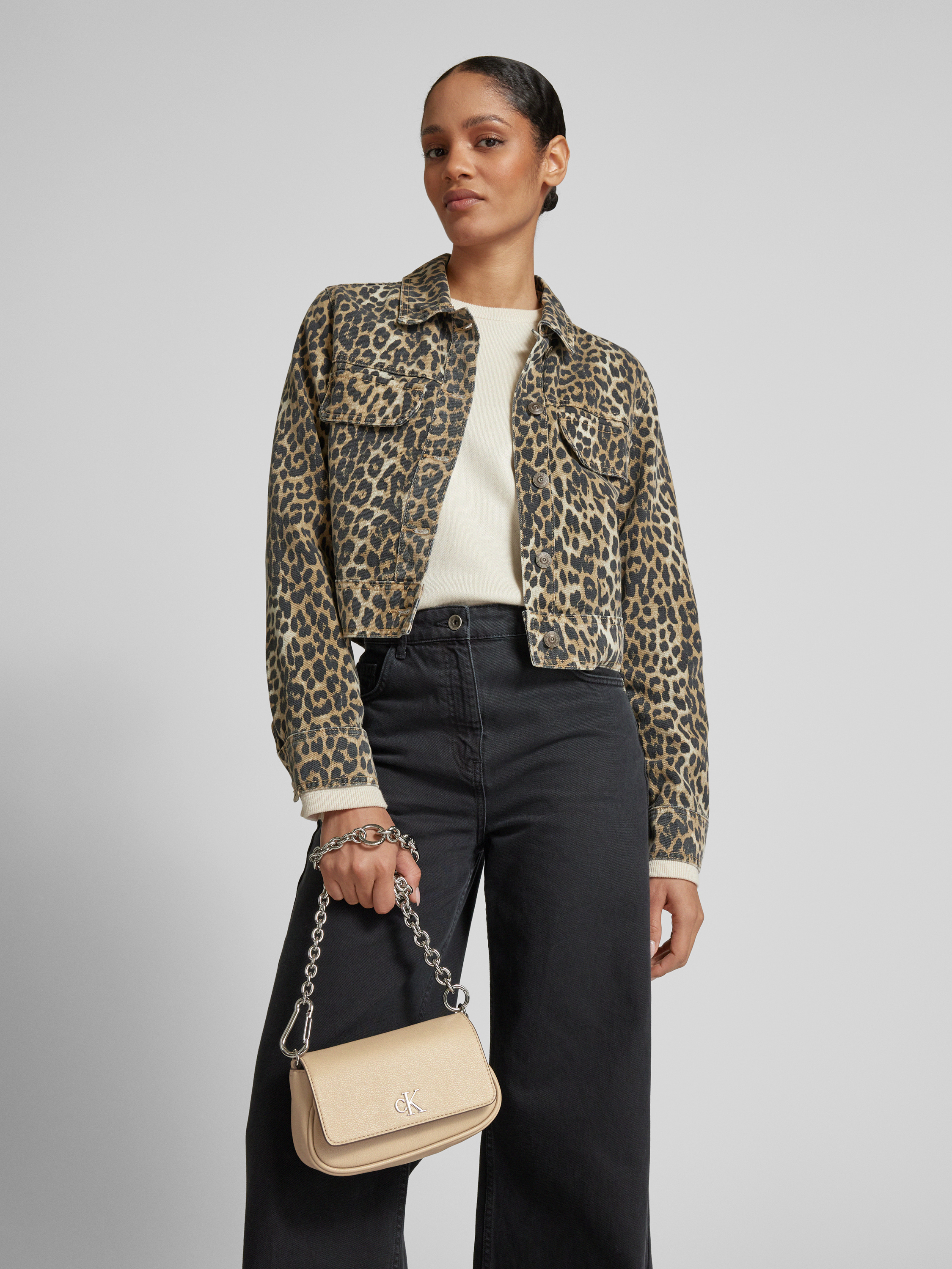 Die Damen Handtasche von Calvin Klein Jeans kombiniert einen eleganten Material-Mix mit einem praktischen Hauptfach, das durch einen Klickverschluss sicher verschlossen wird. Der metallic-farbene Schulterriemen verleiht dem Accessoire einen modernen Akzent und sorgt für angenehmen Tragekomfort. Die dezente Logo-Applikation rundet das zeitgemäße Design stilvoll ab.