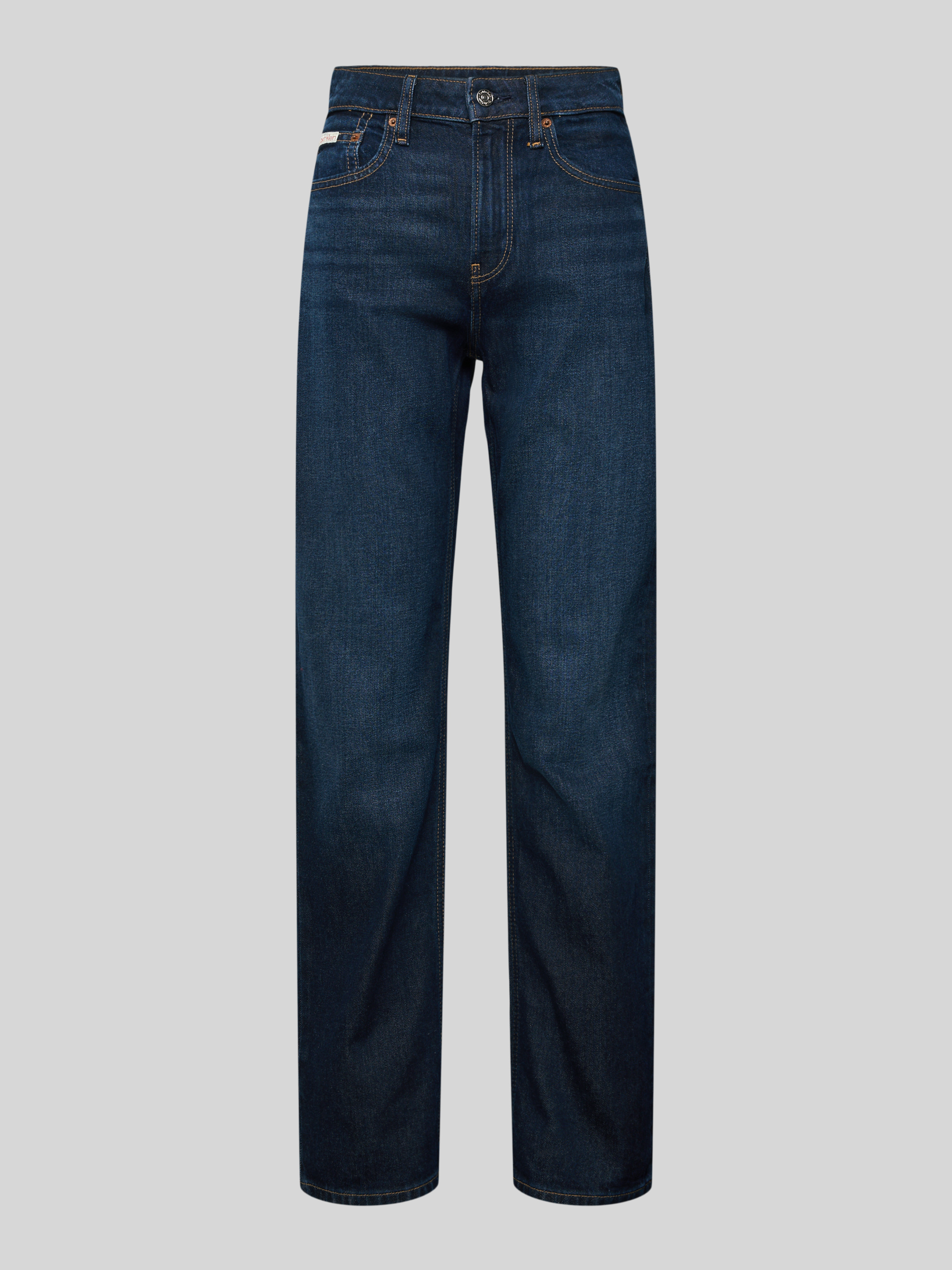 Calvin Klein JeansHigh Rise Straight Fit Jeans mit Label-Detail in dunkelblau