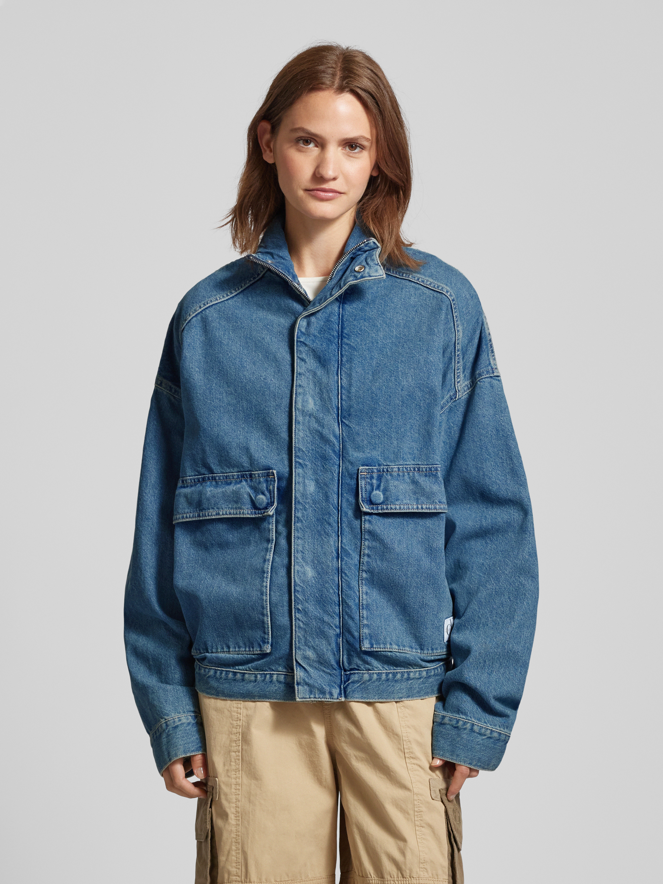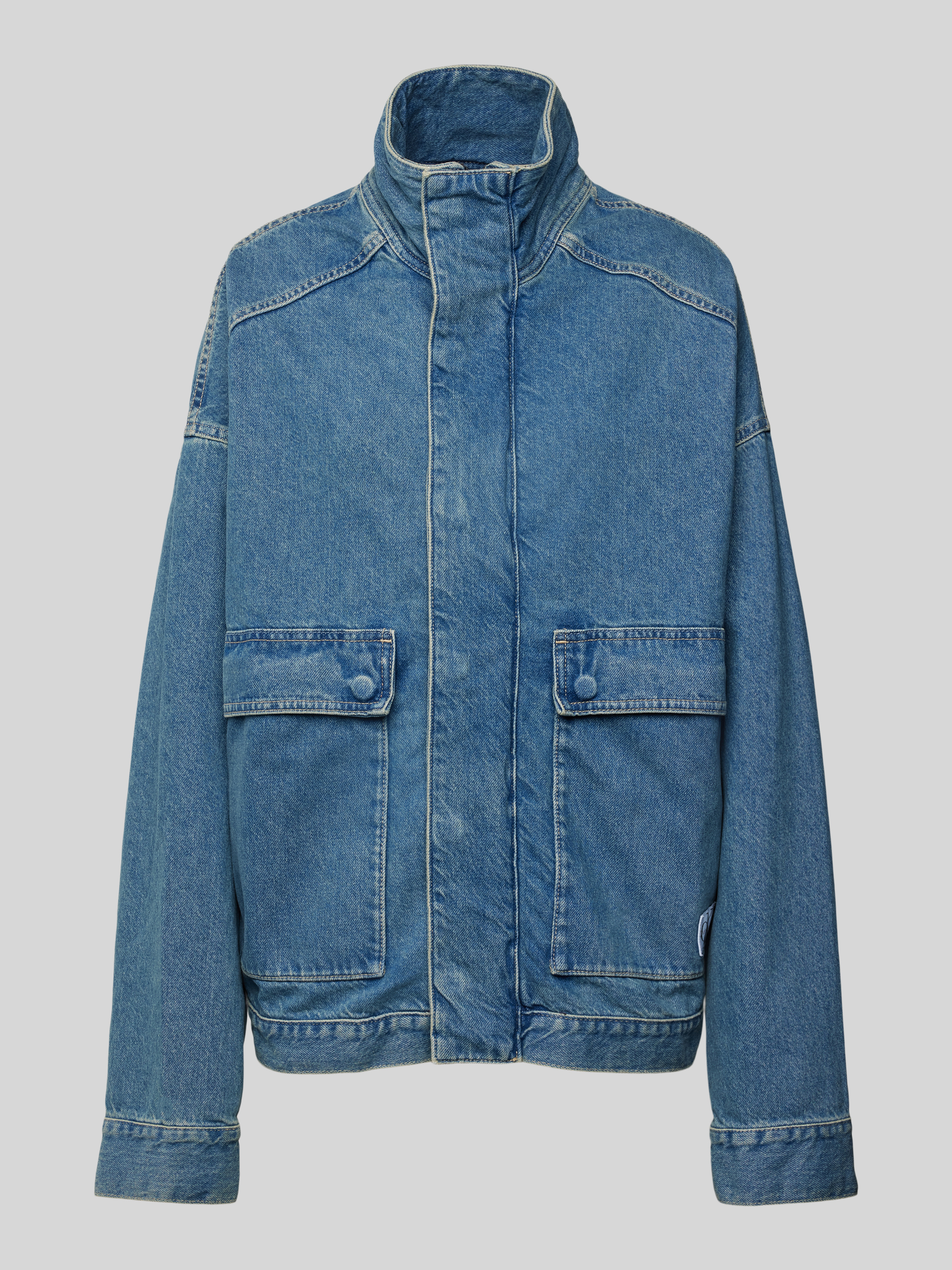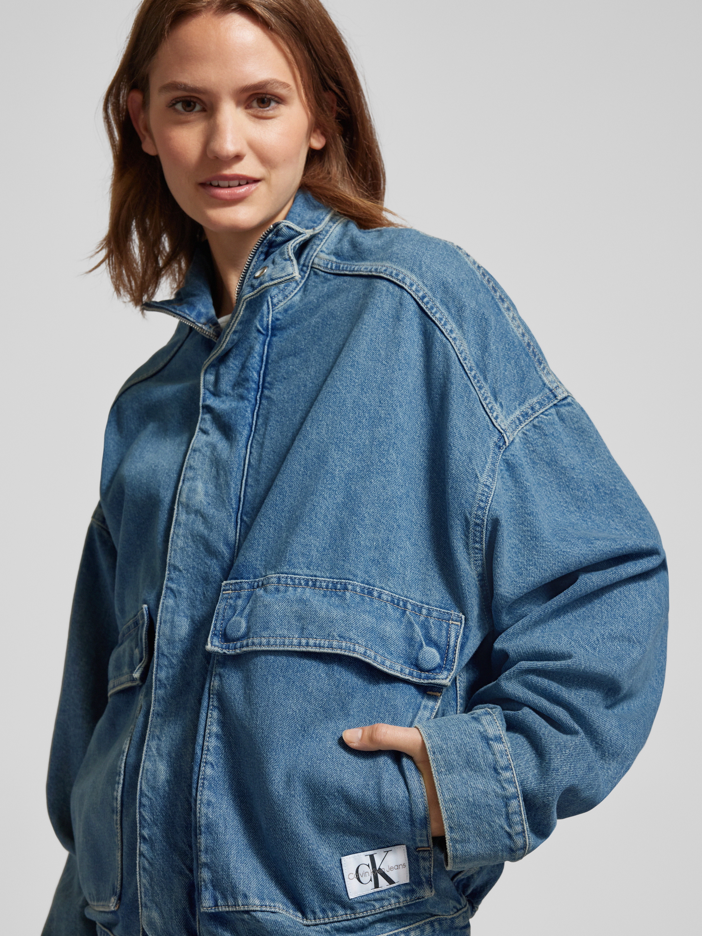 Die Jeansjacke mit Label-Patch Modell 'EASY' von Calvin Klein Jeans aus reiner Baumwolle fällt durch den lockeren Schnitt und überschnittene Schultern auf. Durch den Stehkragen und die aufgesetzten Eingrifftaschen entsteht ein entspanntes Gesamtbild. Damit eignet sich das Modell für vielseitige Kombinationen.