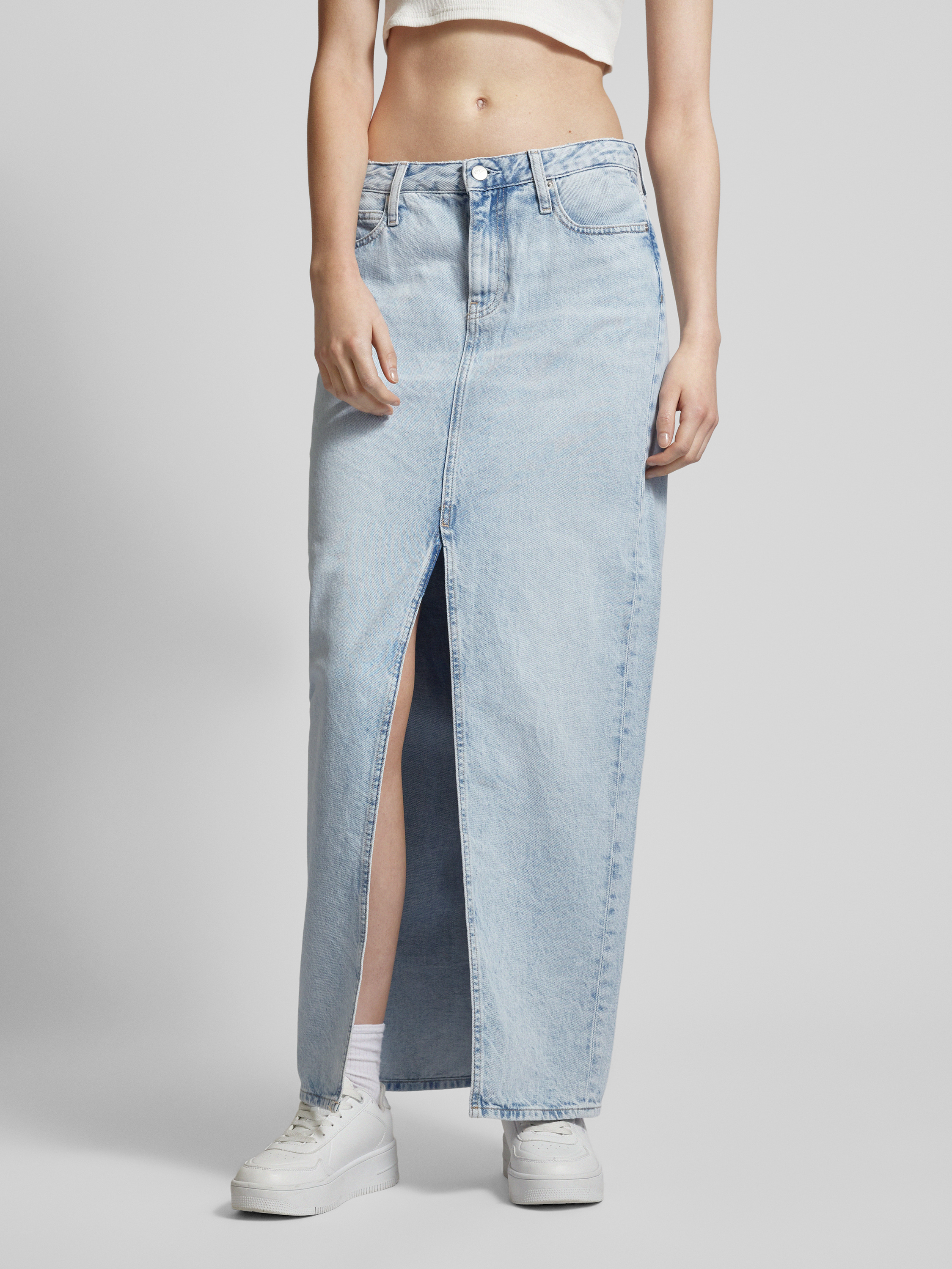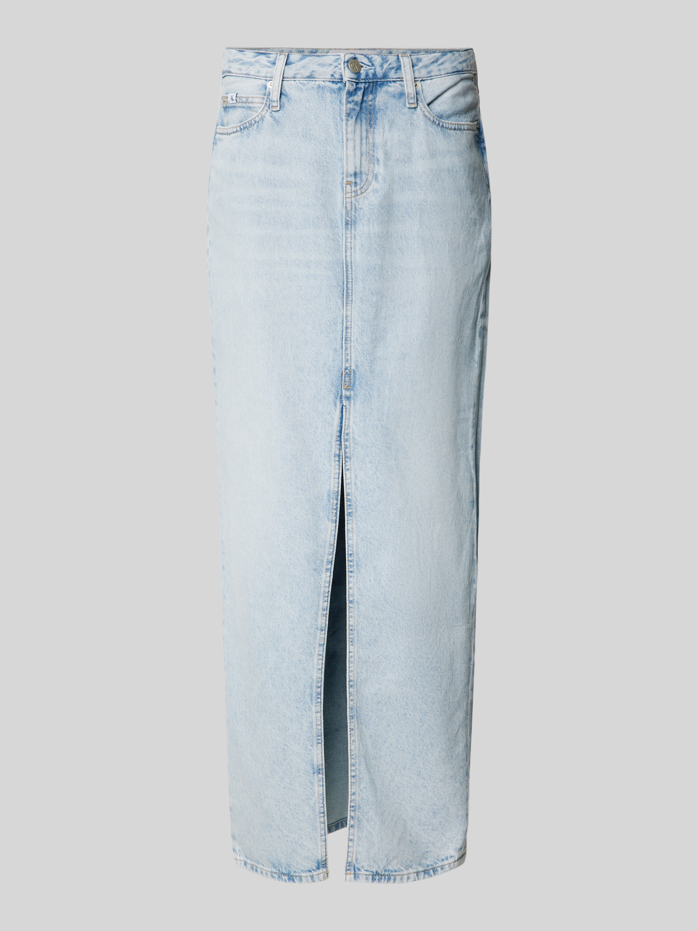 Der Jeansrock von Calvin Klein Jeans aus reiner Baumwolle zeichnet sich durch seinen geraden Schnitt und das klassische 5-Pocket-Design aus. Als Maxirock mit Gehschlitz sorgt er für Bewegungsfreiheit und Komfort. Gürtelschlaufen und ein dezentes Label-Detail runden das Gesamtbild ab.
