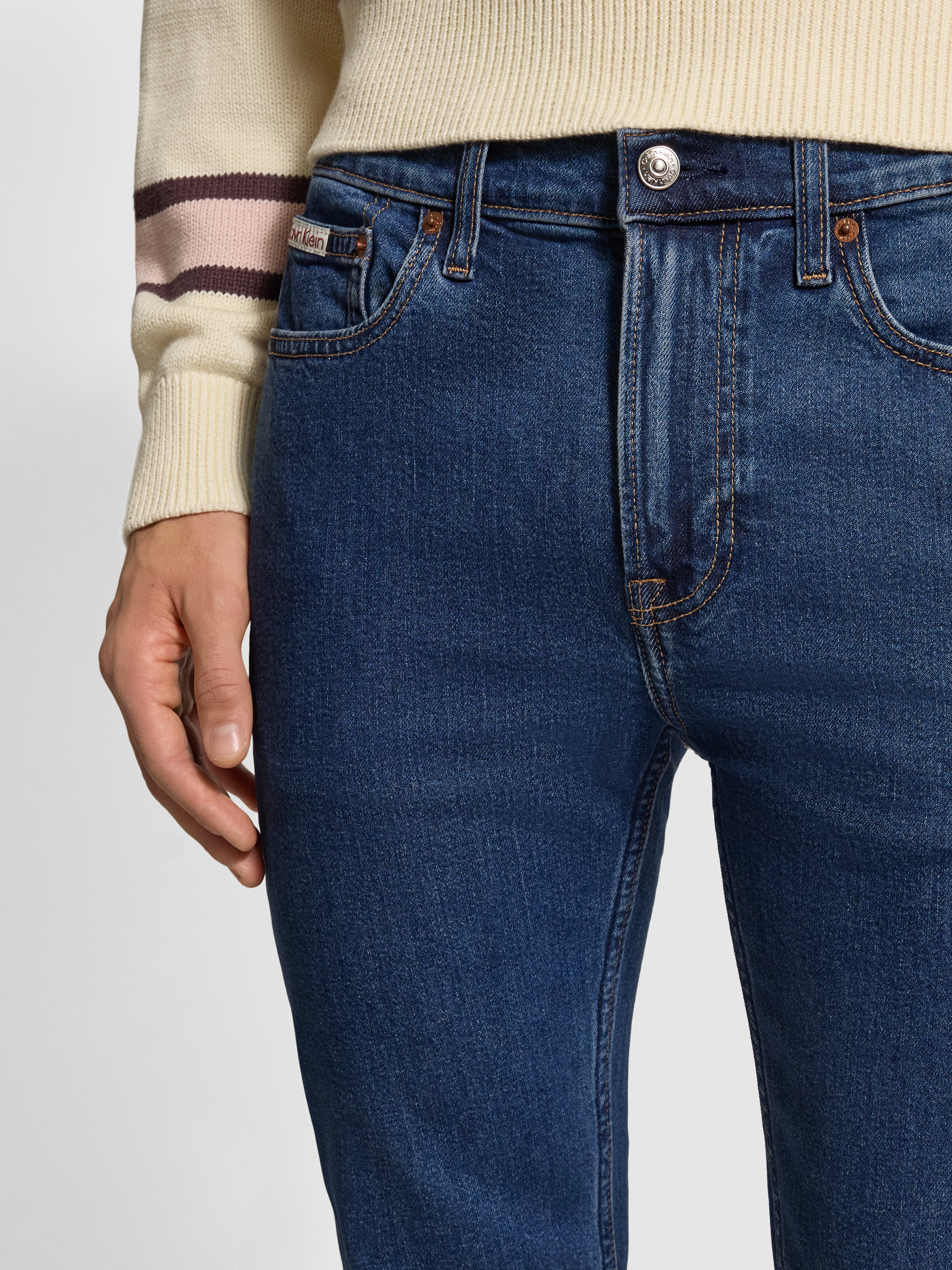 Die Herren Slim Fit Jeans von Calvin Klein Jeans zeigt sich im klassischen 5-Pocket-Design und liegt angenehm am Bein an. Durch den Baumwoll-Elasthan-Mix erhält das Modell eine bequeme Passform, die Bewegungsfreiheit im Alltag unterstützt. So lässt sich ein moderner Look unkompliziert mit Komfort verbinden.