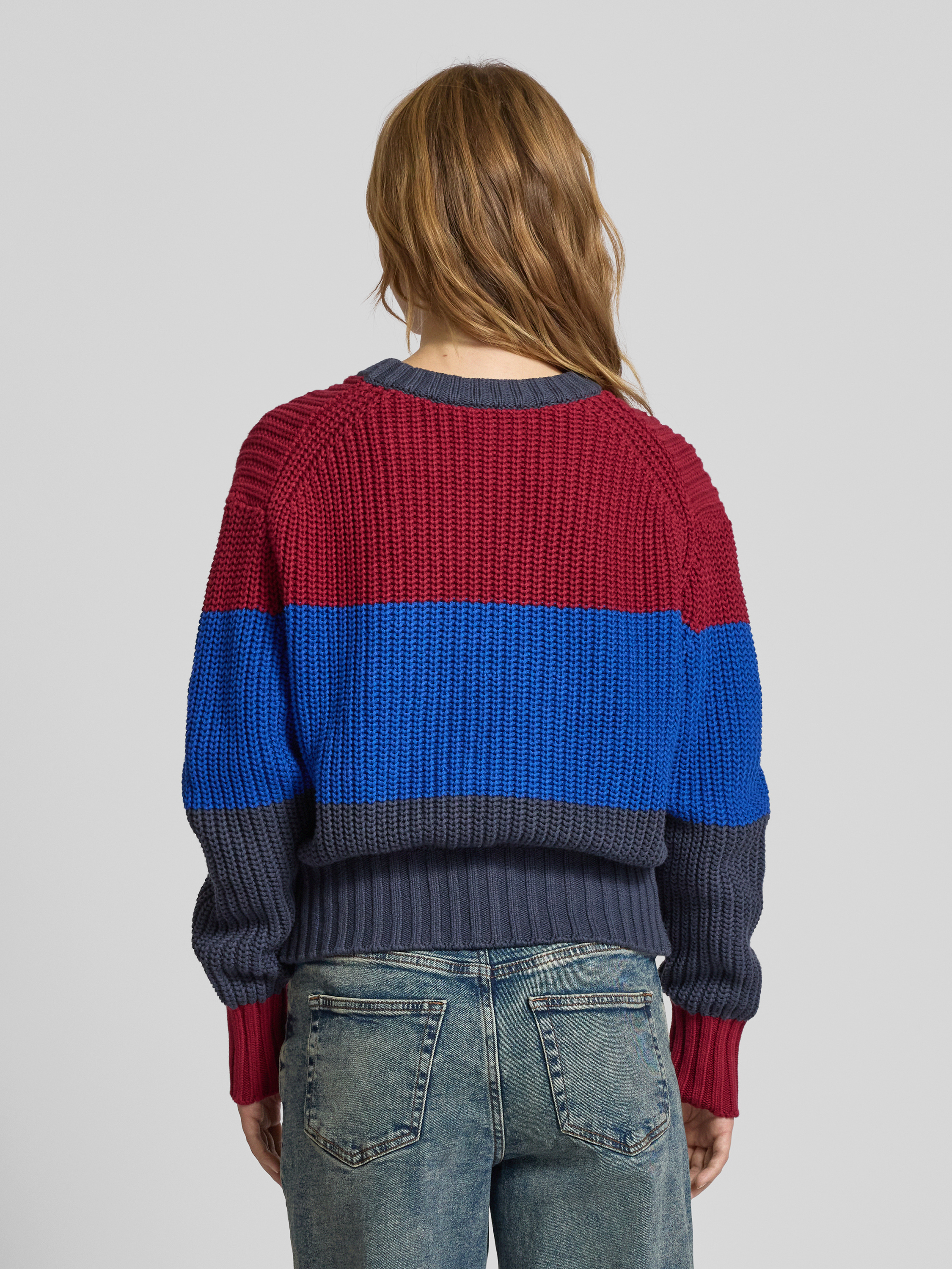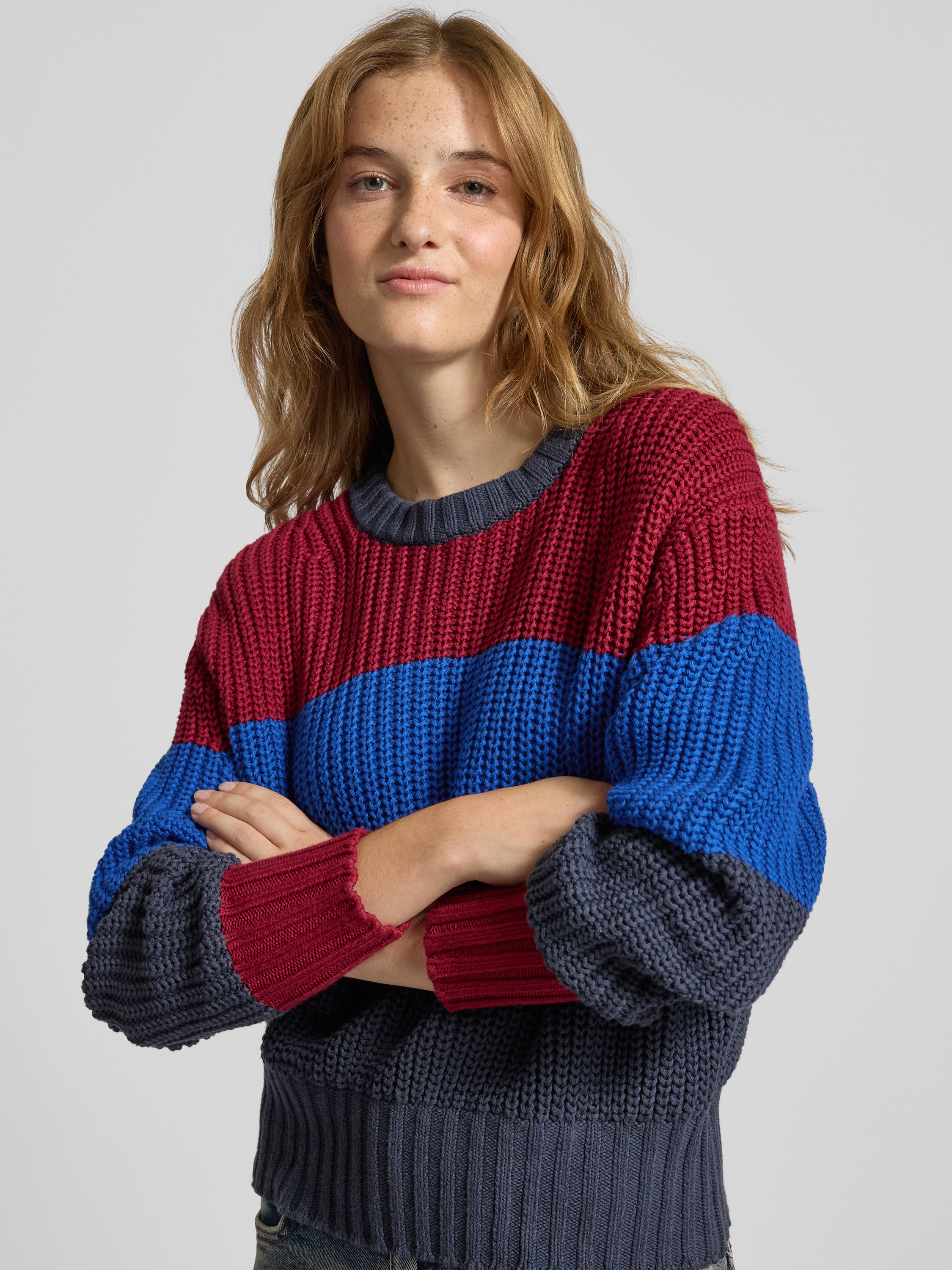 Calvin Klein JeansStrickpullover mit Rundhalsausschnitt und Streifenmuster in bordeaux
