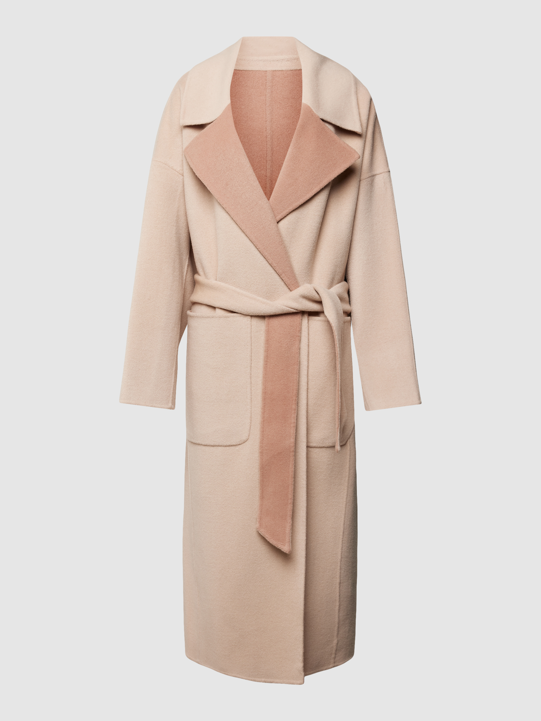 Der Calvin Klein Wollmantel für Damen aus reiner Wolle vereint eine gerade Passform mit einem eleganten Reverskragen. Das unifarbene Design und der Bindegürtel sorgen für einen klassischen Look, während Eingrifftaschen und Two-Tone-Machart praktische und stilvolle Details bieten.