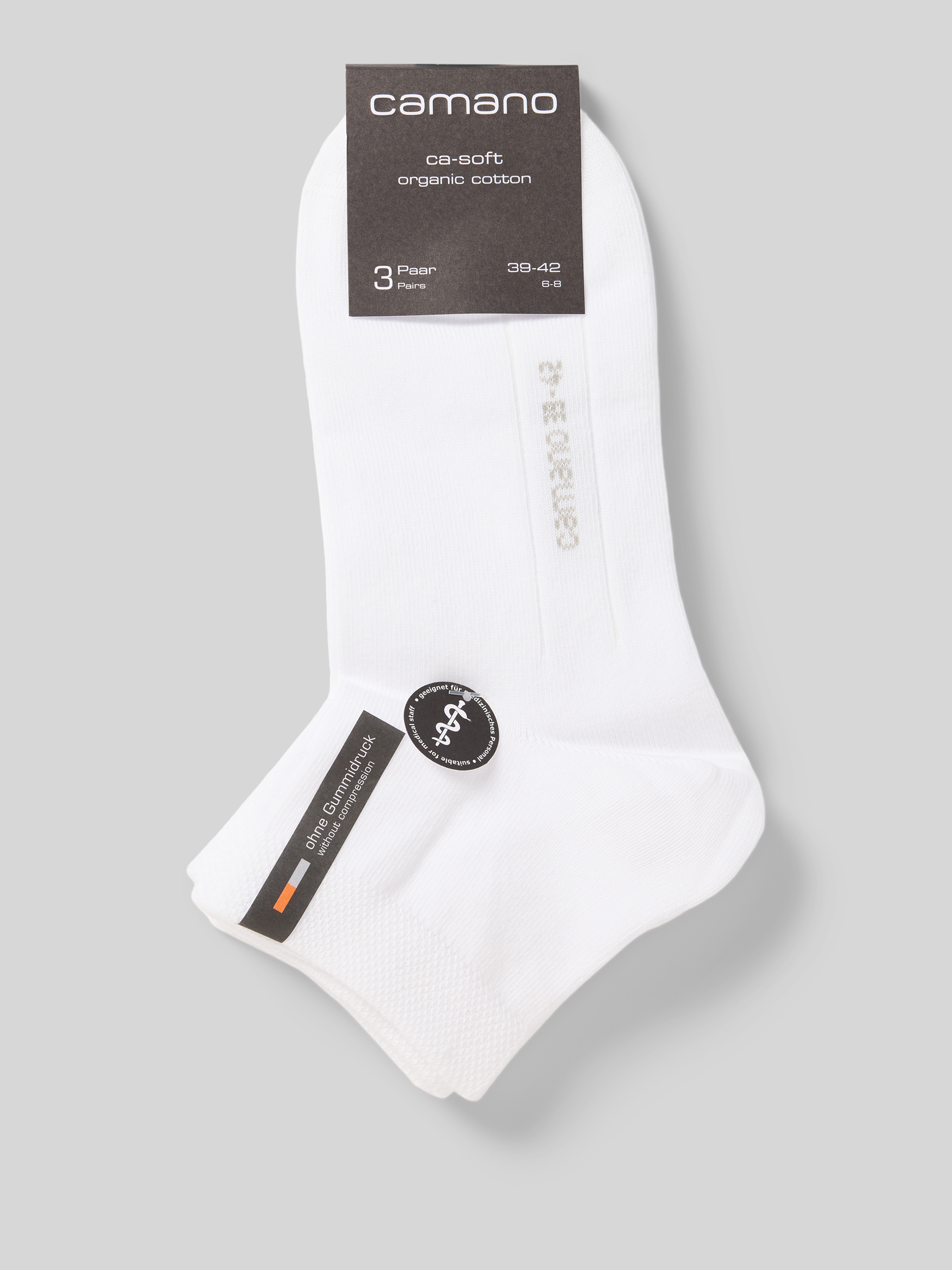 Die Damen Socken von camano im 3er-Pack vereinen Komfort und Funktionalität in einem Baumwoll-Elasthan-Mix. Durch das unifarbene Design passen sie vielseitig zu verschiedenen Outfits, während das elastische Rippenbündchen für sicheren Halt sorgt und den ganzen Tag über angenehmen Tragekomfort ermöglicht.