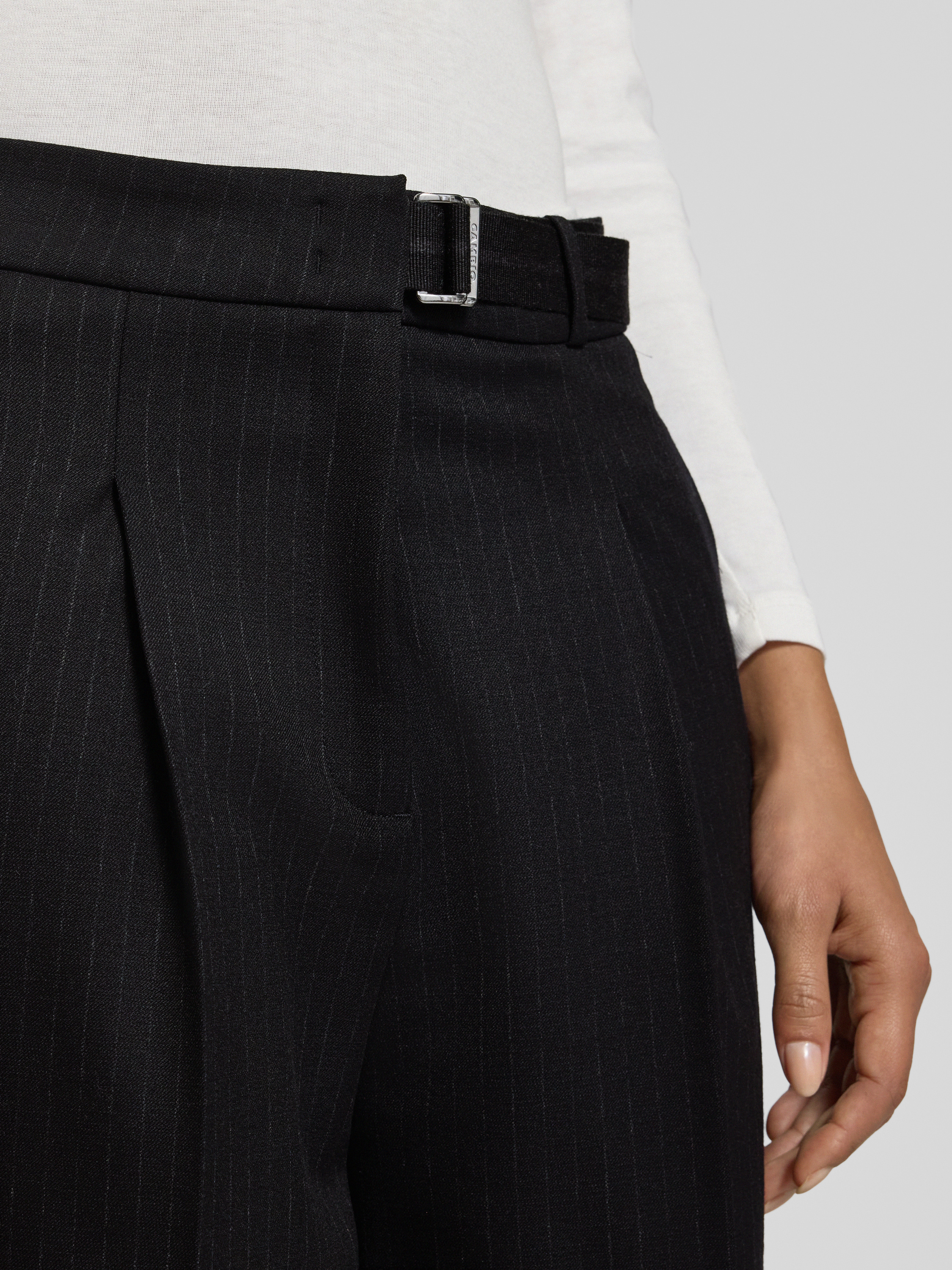 Die Damenhose von Cambio, Modell 'ELAINE PLEAT', verbindet durch ihren Barrel Fit eine legere Form mit markanten Bügelfalten. Dank des Woll-Anteils im Material-Mix fühlt sie sich angenehm an und bleibt formstabil. Ein passender Gürtel unterstreicht den modernen Schnitt und sorgt für Vielseitigkeit.