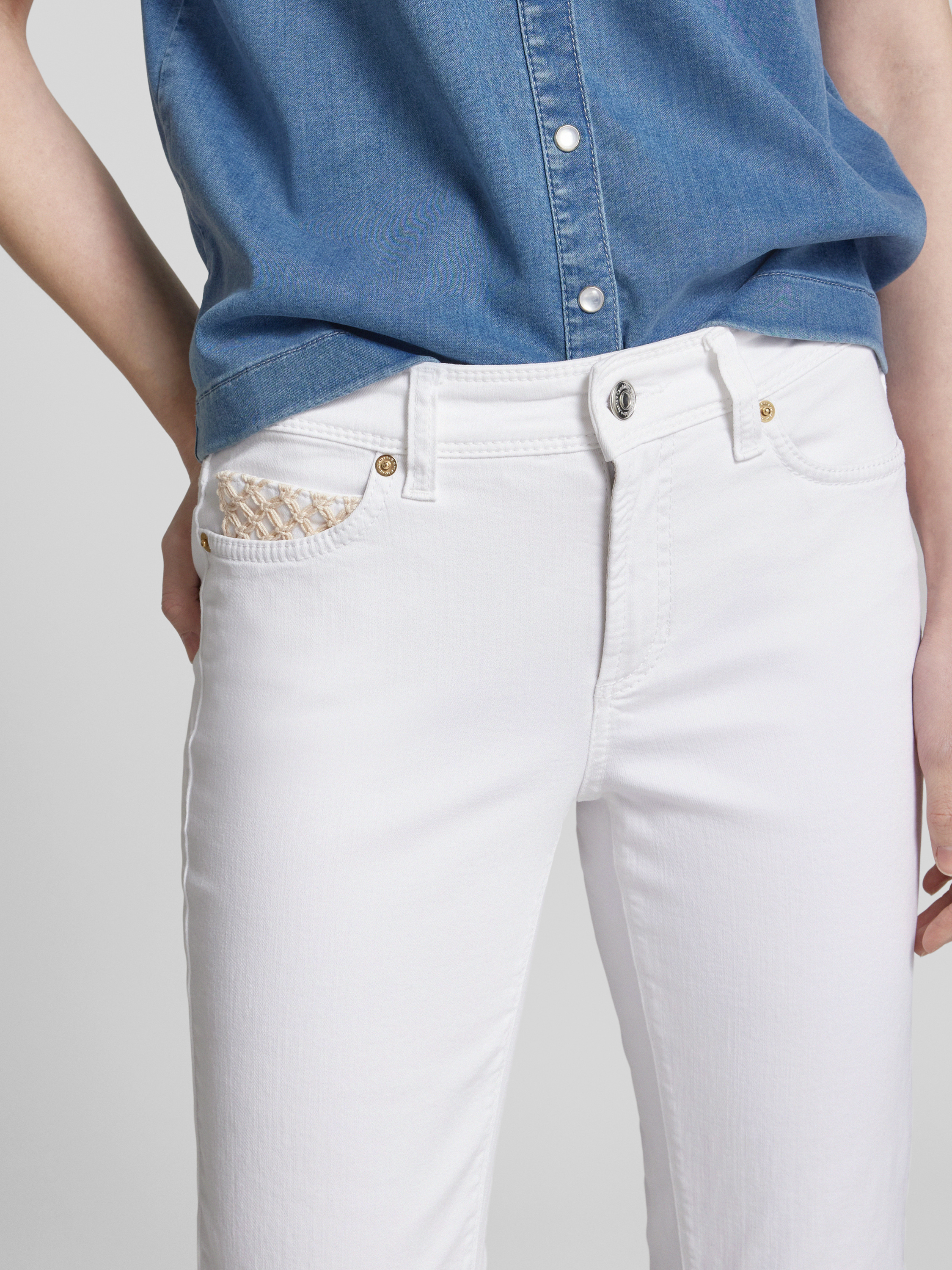 Die Damen Jeans von Cambio vereinen einen komfortablen Baumwoll-Mix mit einem Hauch von Stretch, wodurch sie sich mühelos an den Körper anpassen. Die verkürzte Passform im Slim Fit schmeichelt der Silhouette und sorgt für einen modernen Look. Durch das praktische 5-Pocket-Design wird zusätzlich funktionaler Stauraum geboten.