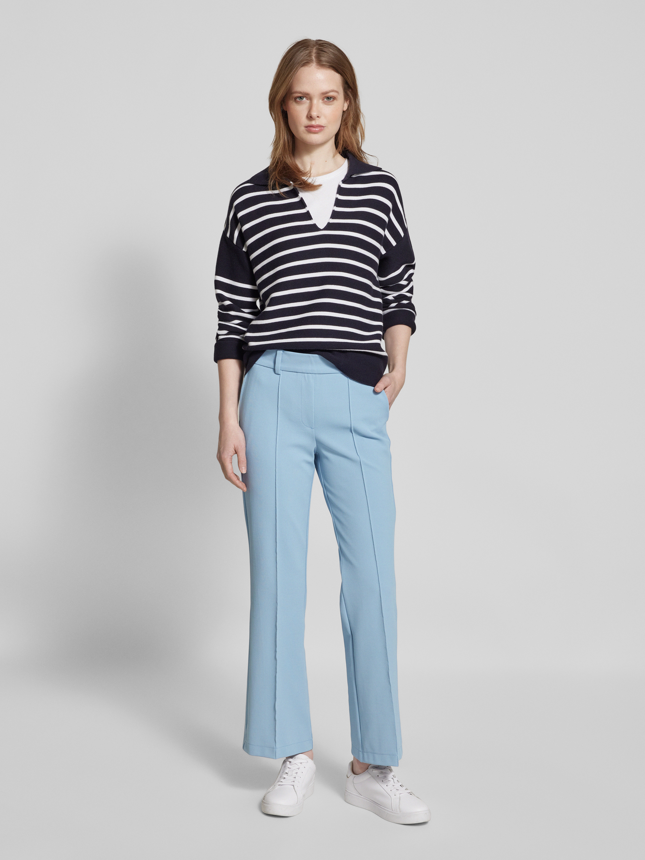 CambioRegular Fit Stoffhose mit Strukturmuster Modell 'FRANCOISE' in hellblau